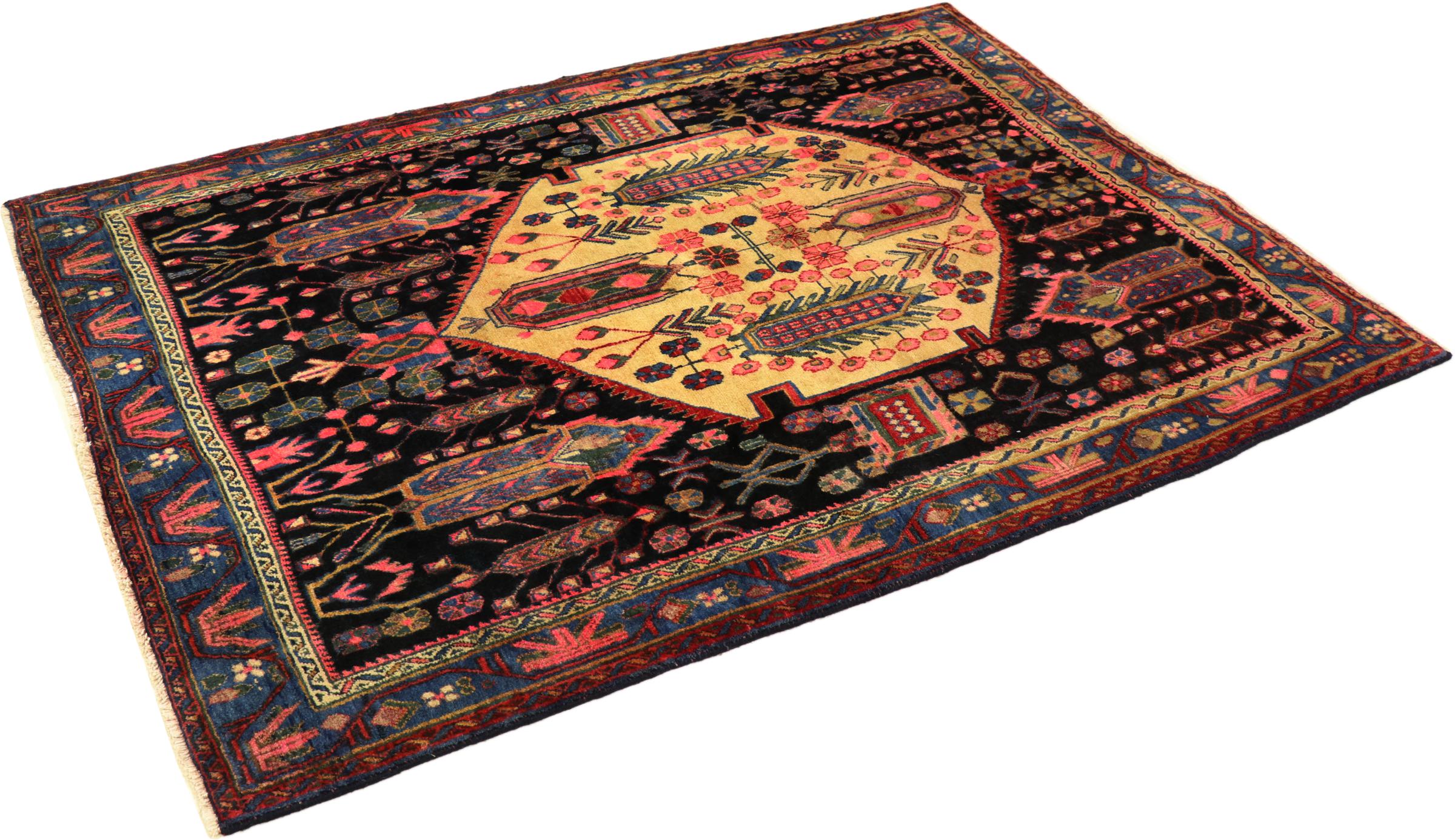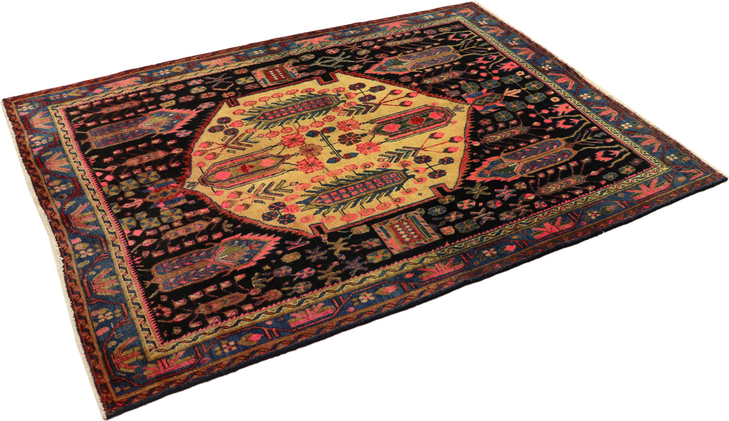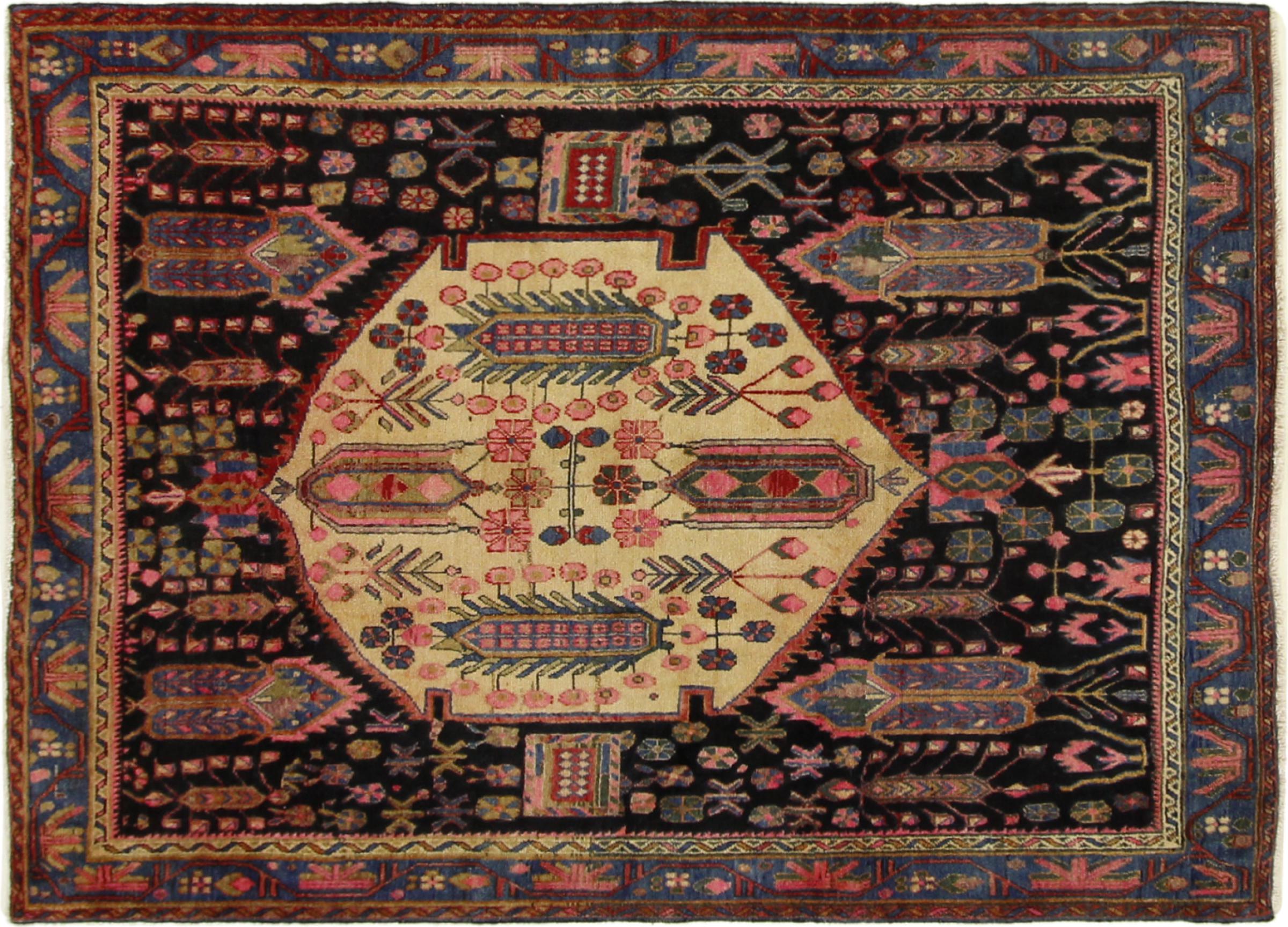 Esta alfombra pertenece a alfombras de pueblos y nómadas de Irán, antiguamente Persia. Este tipo de alfombra se anuda a mano en ciudades y pueblos más pequeños según la antigua tradición. Incluso los nómadas siguen anudando alfombras persas al aire libre. Las alfombras están anudadas sin un patrón y completamente desde la cabeza. Se caracterizan por los ornamentos clásicos, que están dispuestos en patrones rectos y geométricos. Gracias a su origen cultural-tradicional, estas alfombras tienen un carácter único que encarna la antigua Persia.