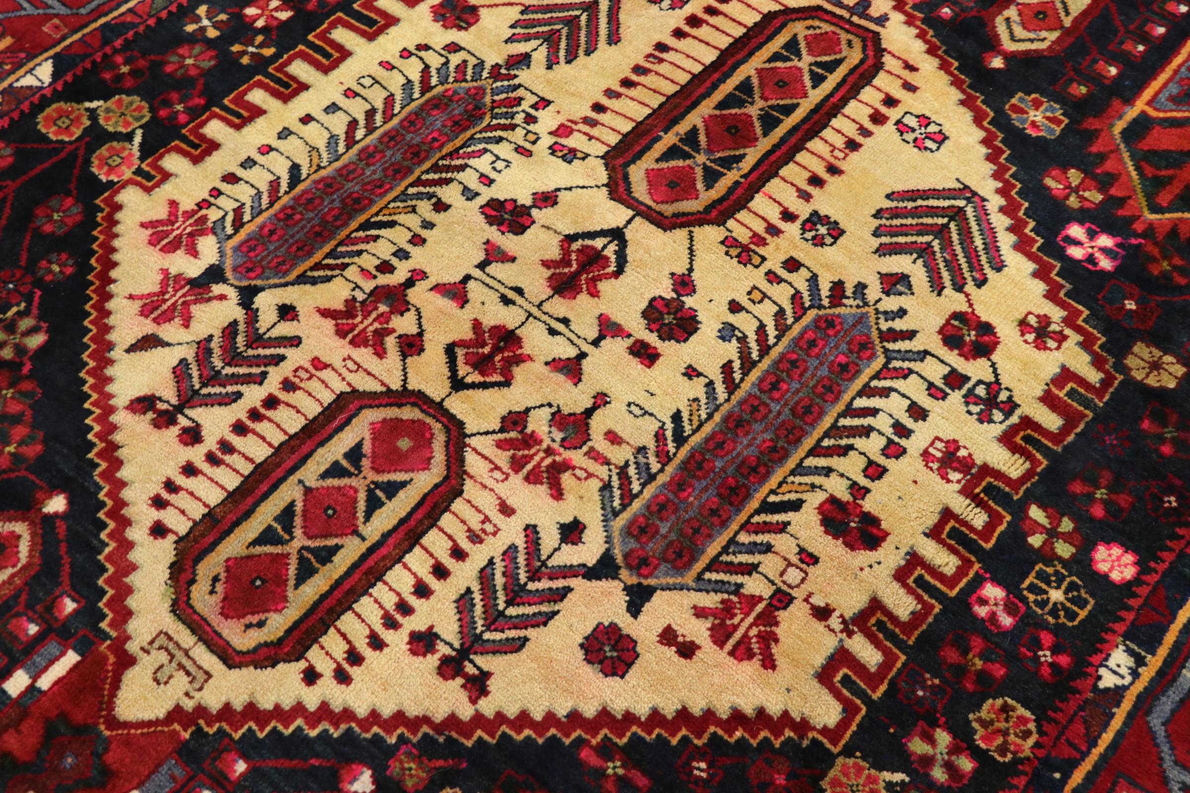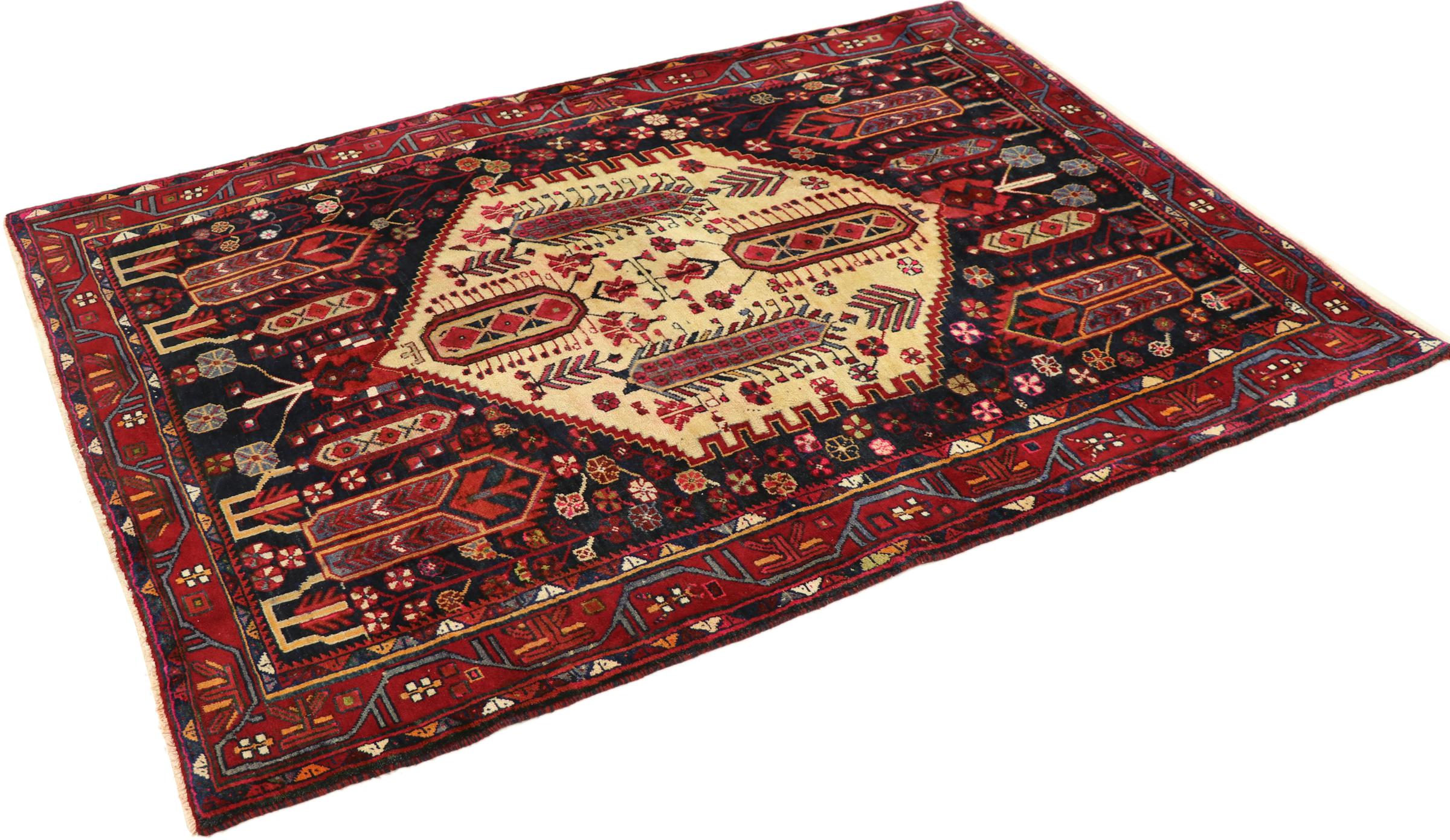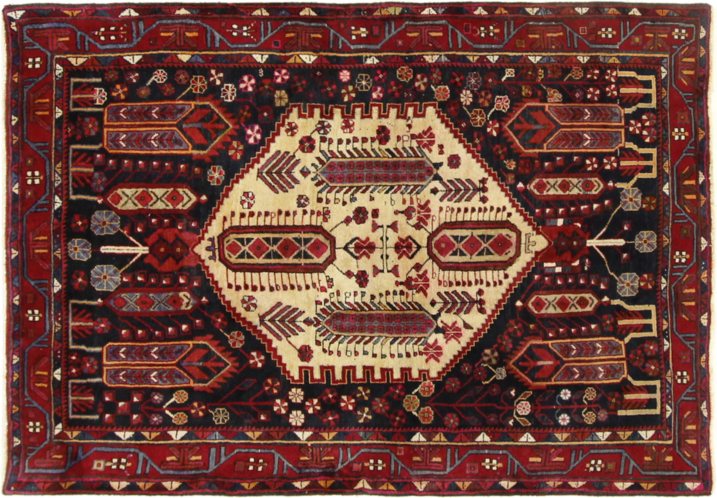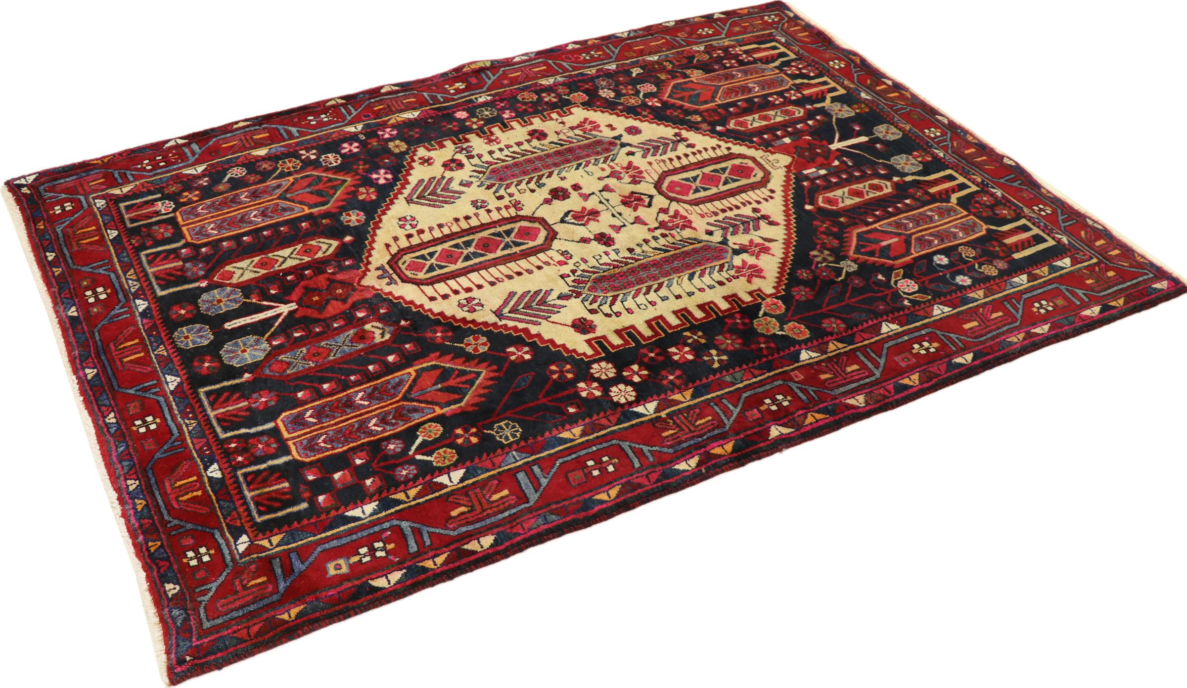 Esta alfombra pertenece a alfombras de pueblos y nómadas de Irán, antiguamente Persia. Este tipo de alfombra se anuda a mano en ciudades y pueblos más pequeños según la antigua tradición. Incluso los nómadas siguen anudando alfombras persas al aire libre. Las alfombras están anudadas sin un patrón y completamente desde la cabeza. Se caracterizan por los ornamentos clásicos, que están dispuestos en patrones rectos y geométricos. Gracias a su origen cultural-tradicional, estas alfombras tienen un carácter único que encarna la antigua Persia.