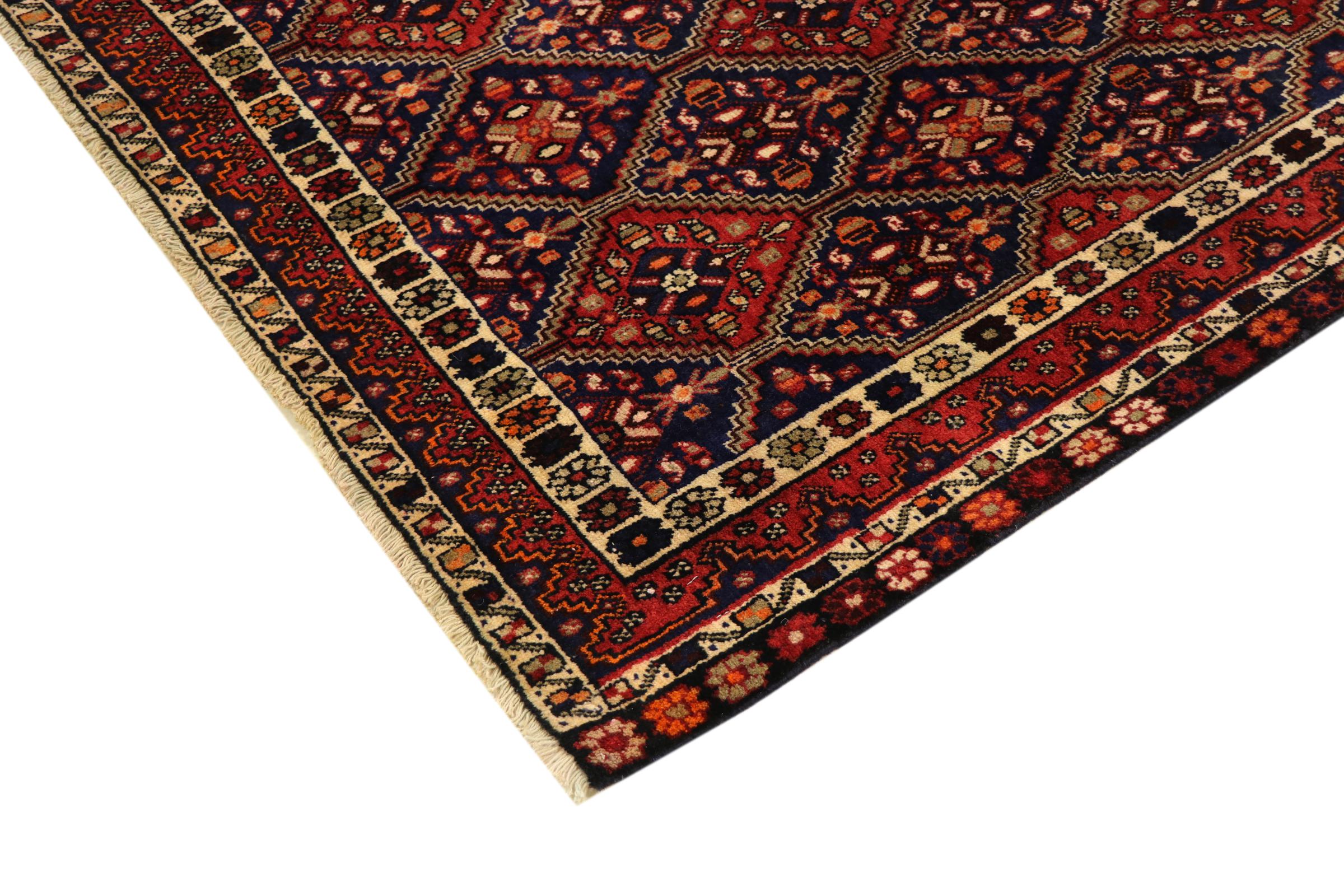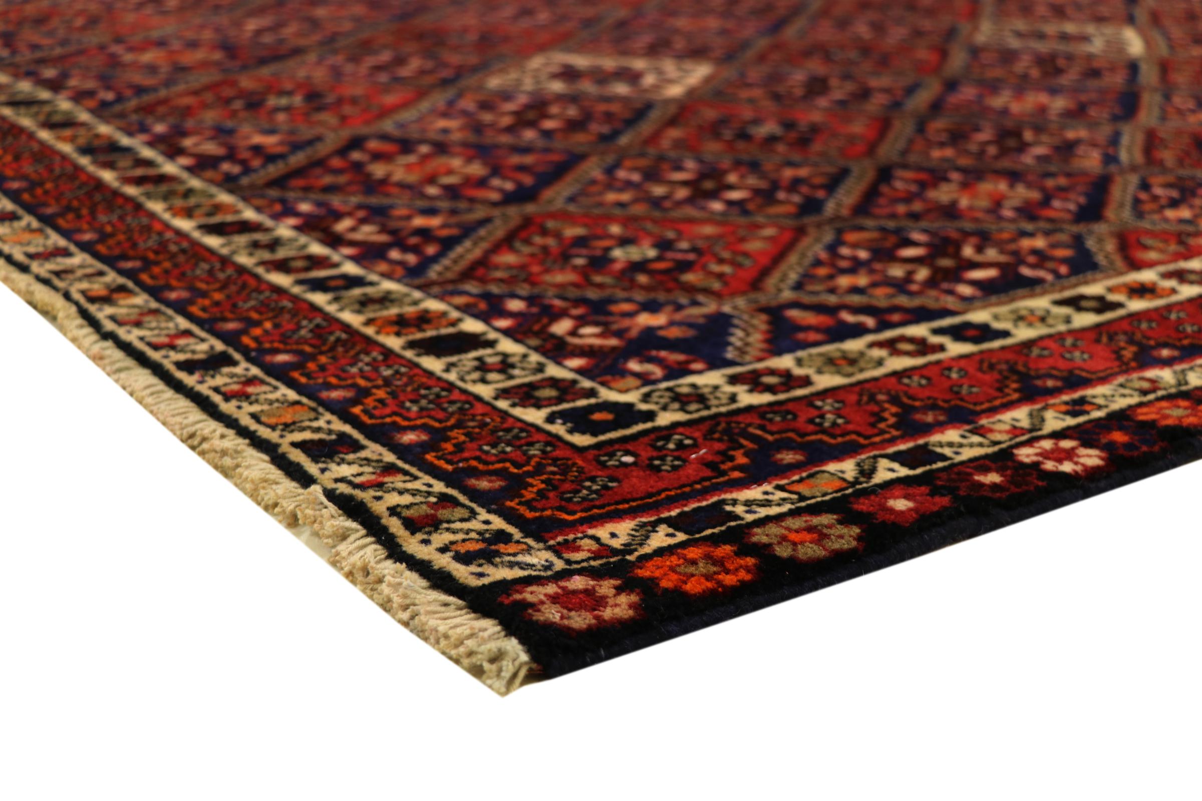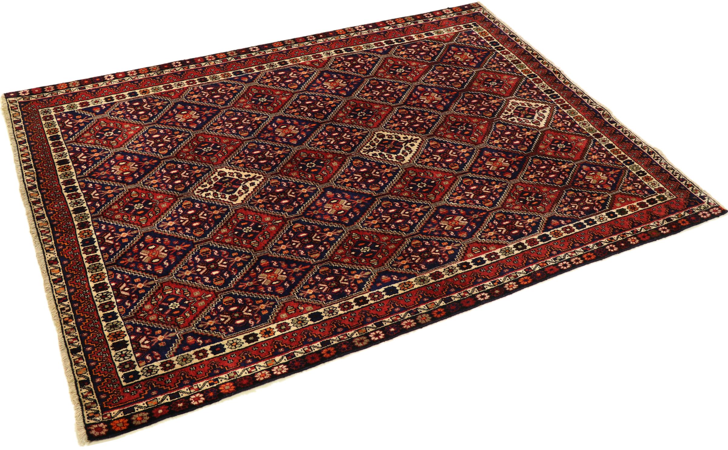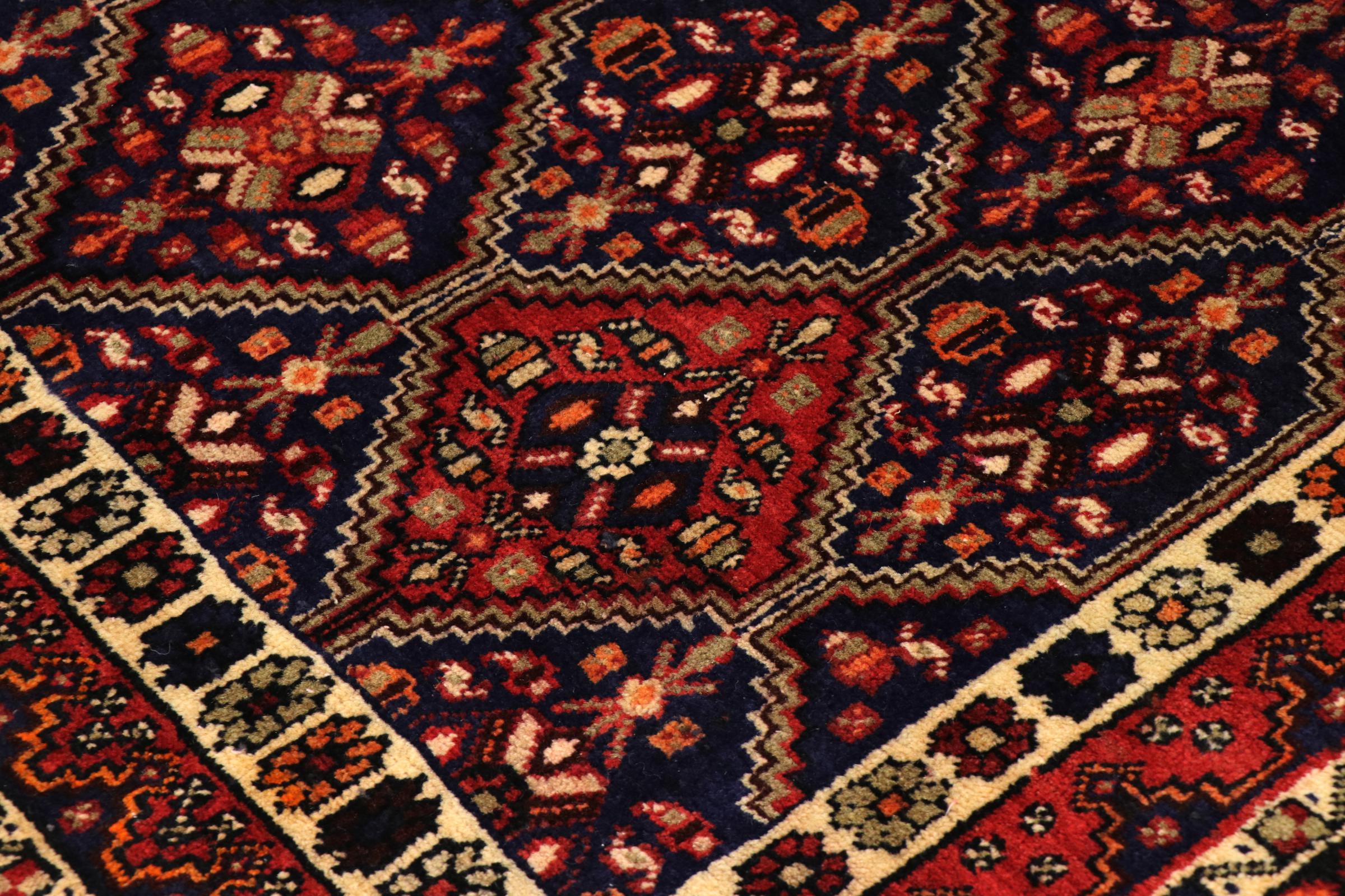 Esta alfombra pertenece a alfombras de pueblos y nómadas de Irán, antiguamente Persia. Este tipo de alfombra se anuda a mano en ciudades y pueblos más pequeños según la antigua tradición. Incluso los nómadas siguen anudando alfombras persas al aire libre. Las alfombras están anudadas sin un patrón y completamente desde la cabeza. Se caracterizan por los ornamentos clásicos, que están dispuestos en patrones rectos y geométricos. Gracias a su origen cultural-tradicional, estas alfombras tienen un carácter único que encarna la antigua Persia.