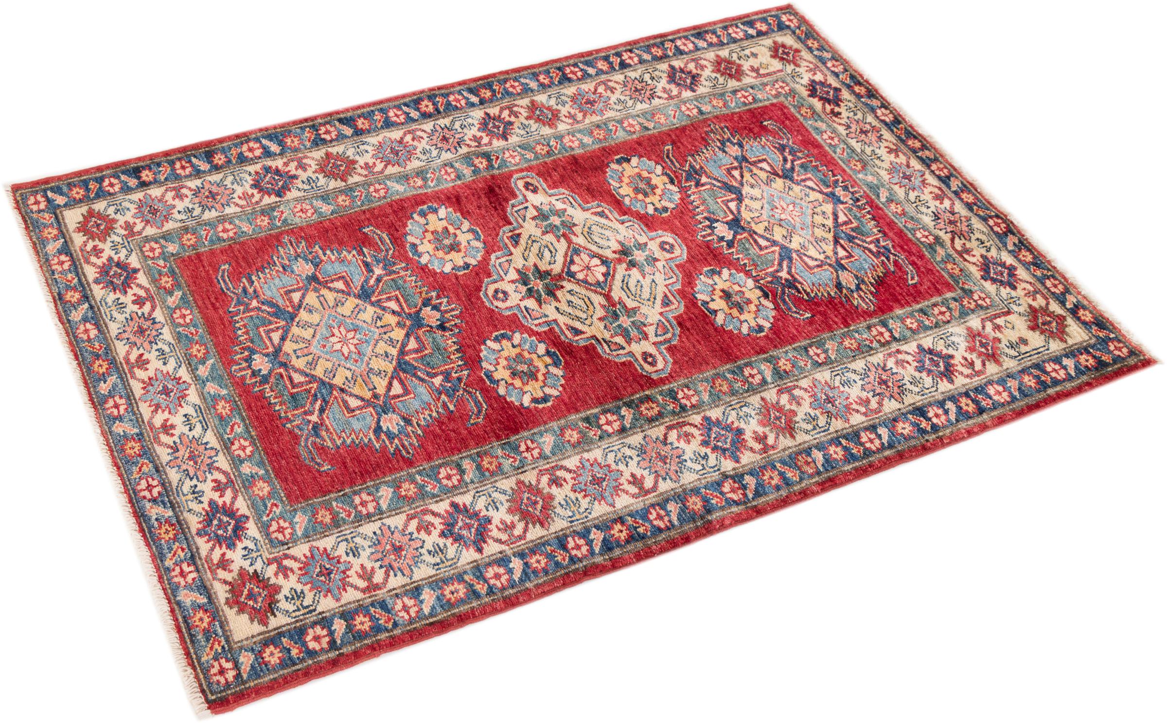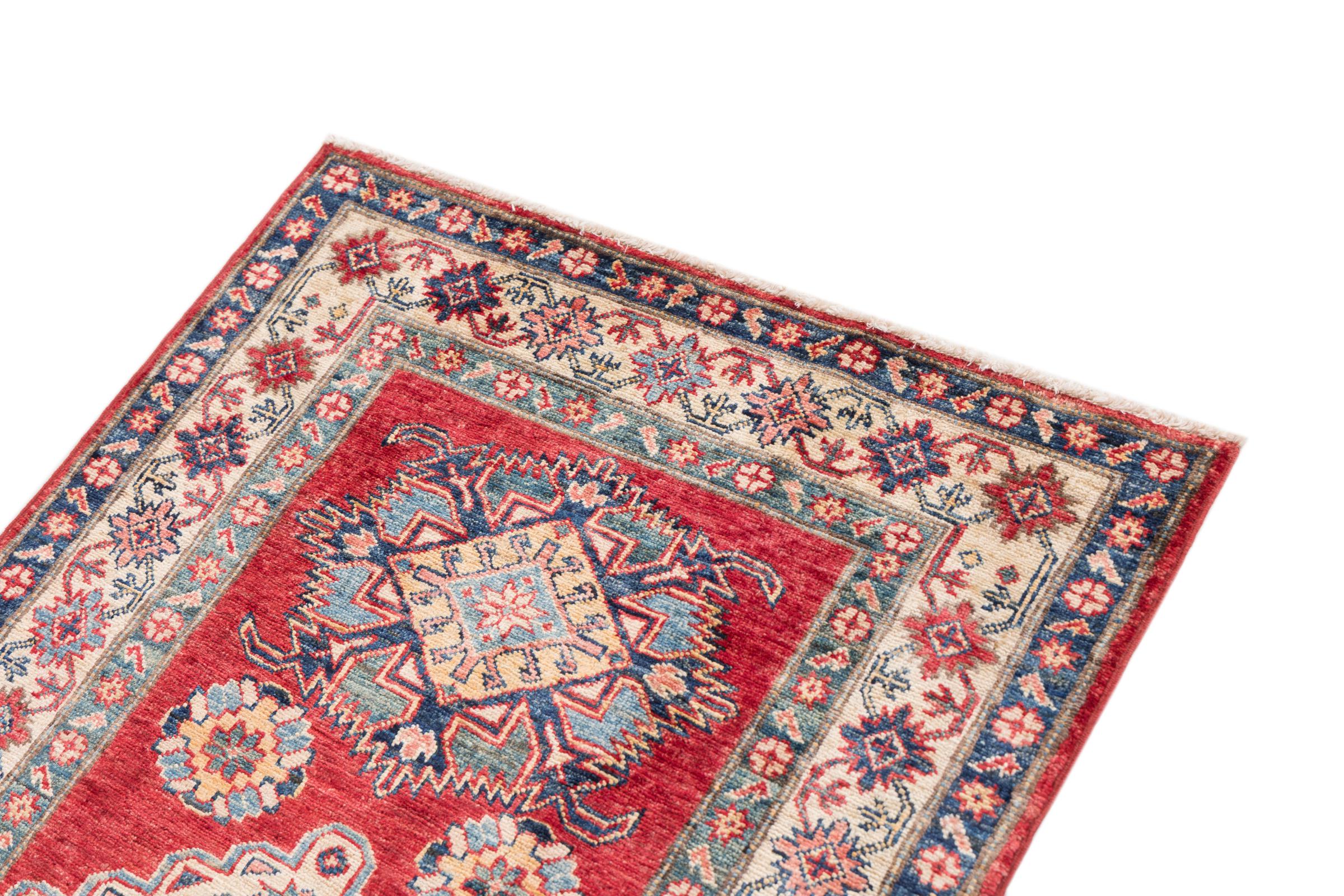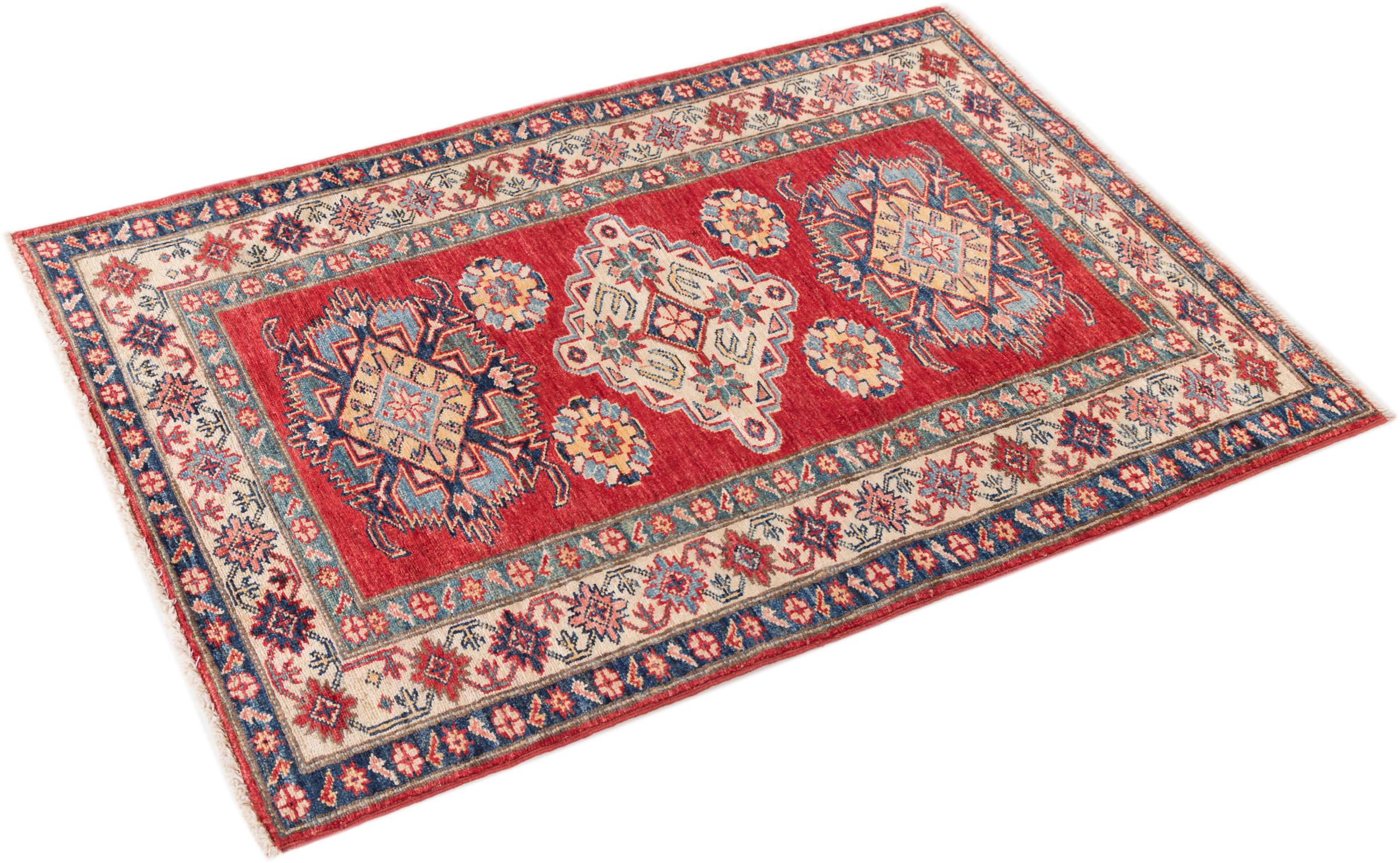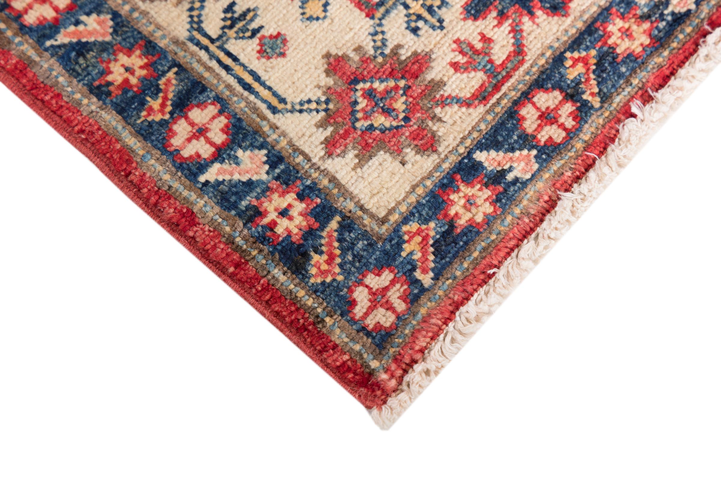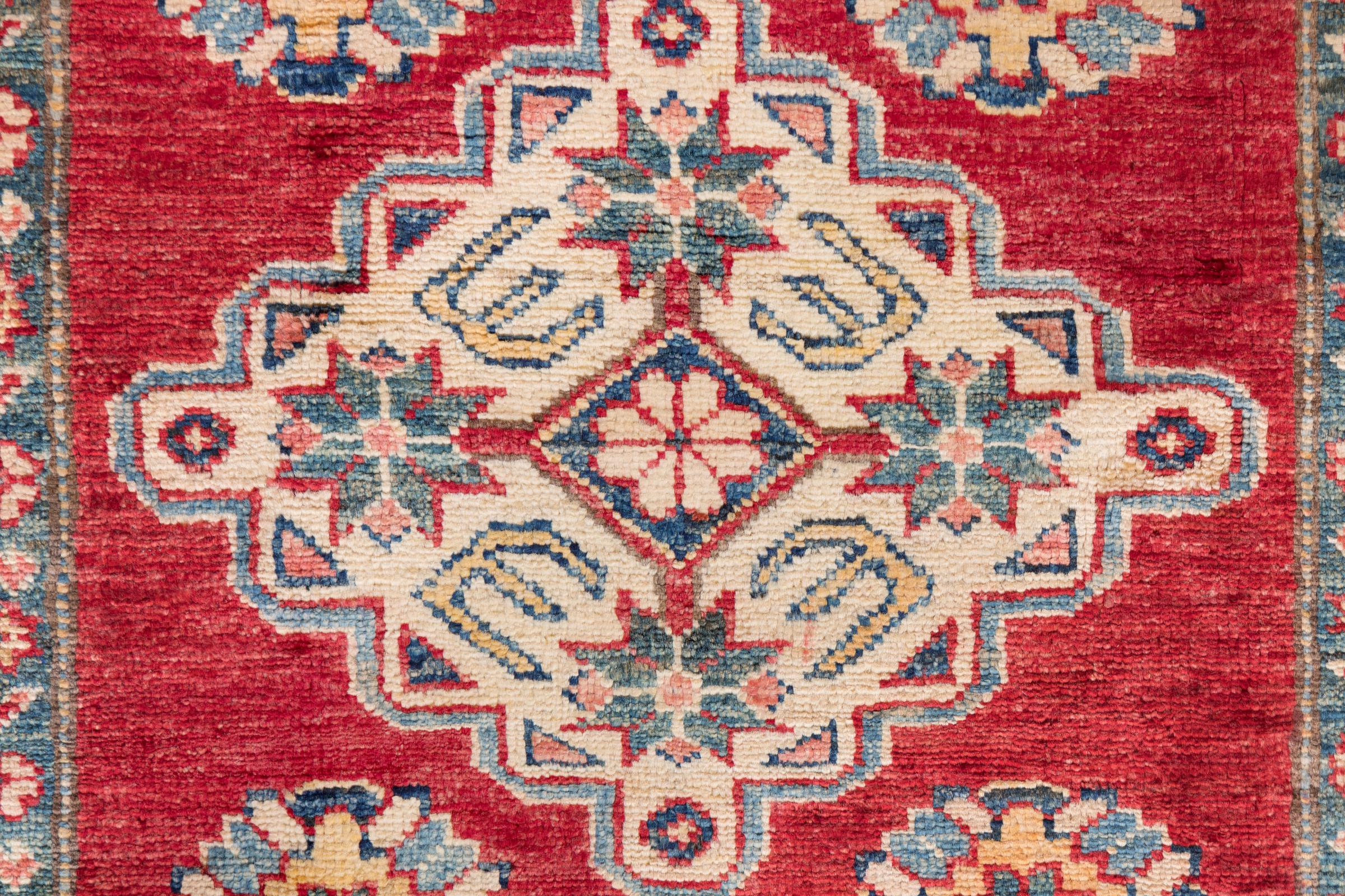 Esta alfombra Kazaka anudada a mano al estilo de las alfombras caucásicas convence por su gran robustez y sus vivos tonos. Así, refleja la cultura del Cáucaso en una bella composición. Una cultura que domina el arte de anudar alfombras desde hace siglos y que lo transmite al mundo exterior con formas encantadoramente sencillas en colores impresionantemente vivos.