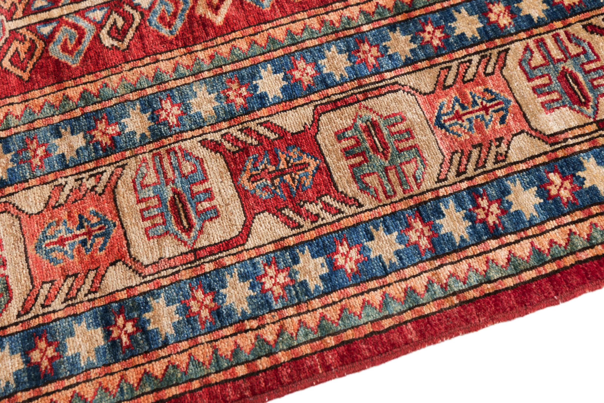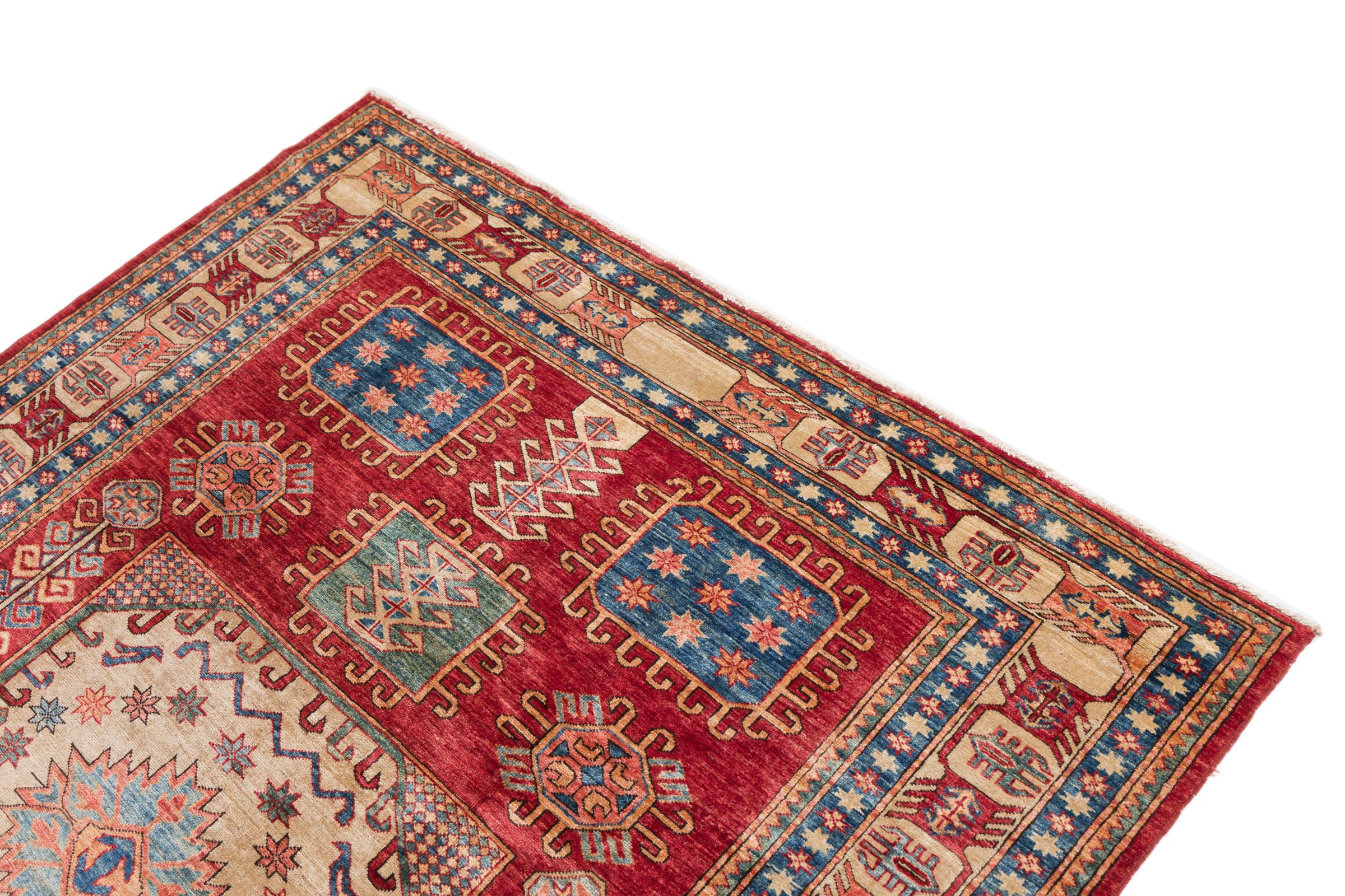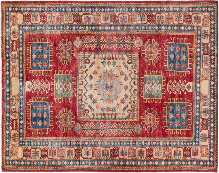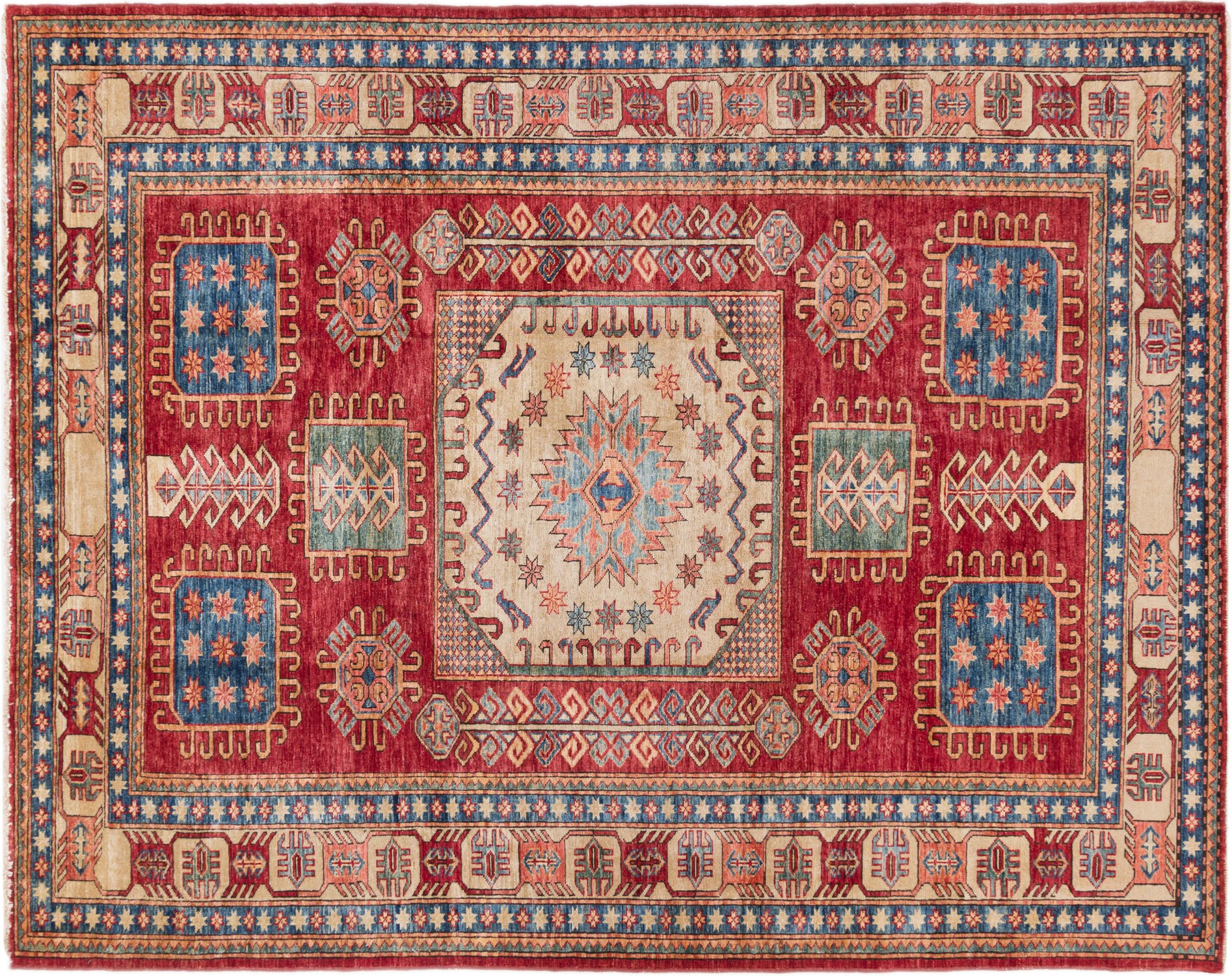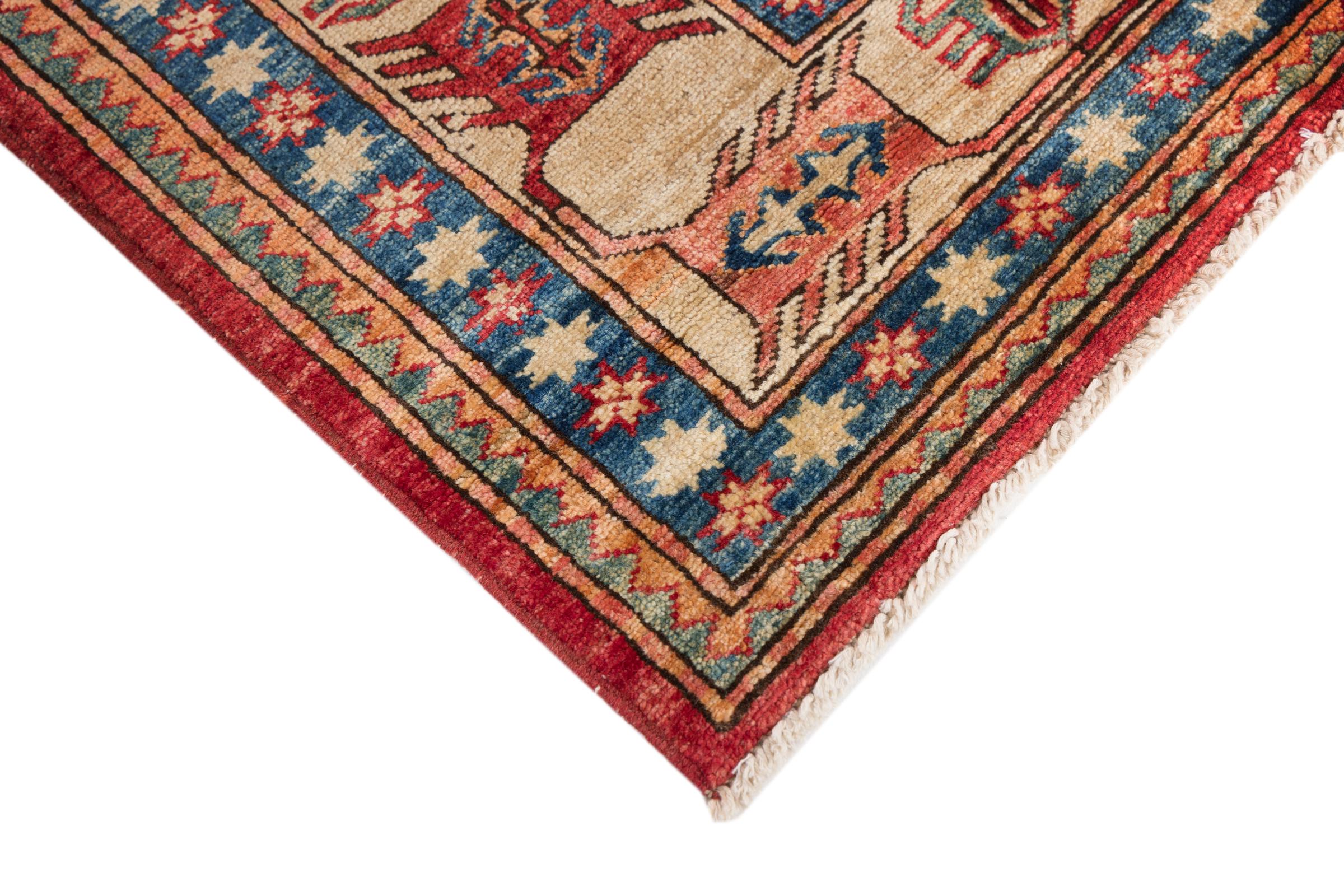 Esta alfombra Kazaka anudada a mano al estilo de las alfombras caucásicas convence por su gran robustez y sus vivos tonos. Así, refleja la cultura del Cáucaso en una bella composición. Una cultura que domina el arte de anudar alfombras desde hace siglos y que lo transmite al mundo exterior con formas encantadoramente sencillas en colores impresionantemente vivos.