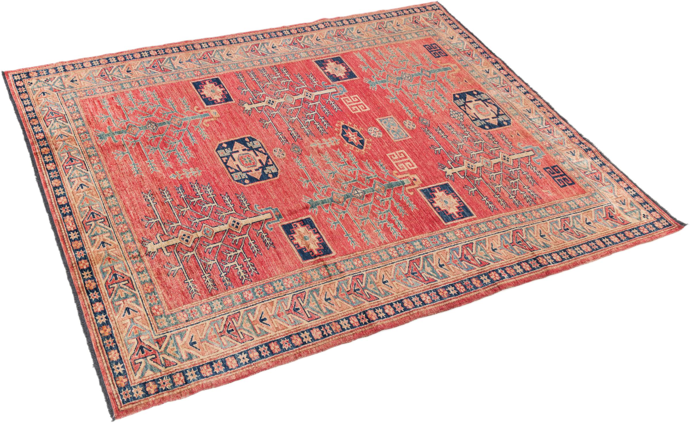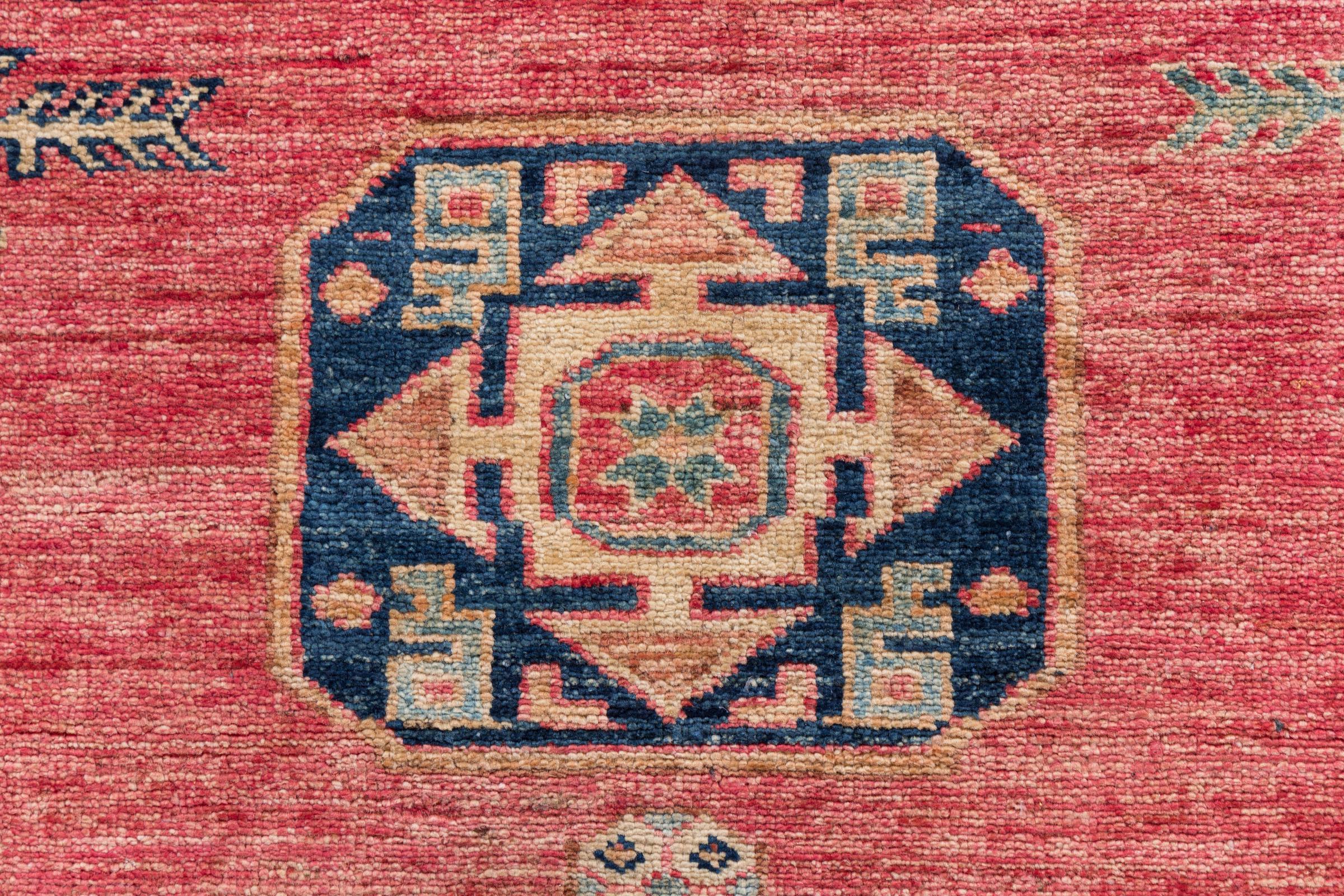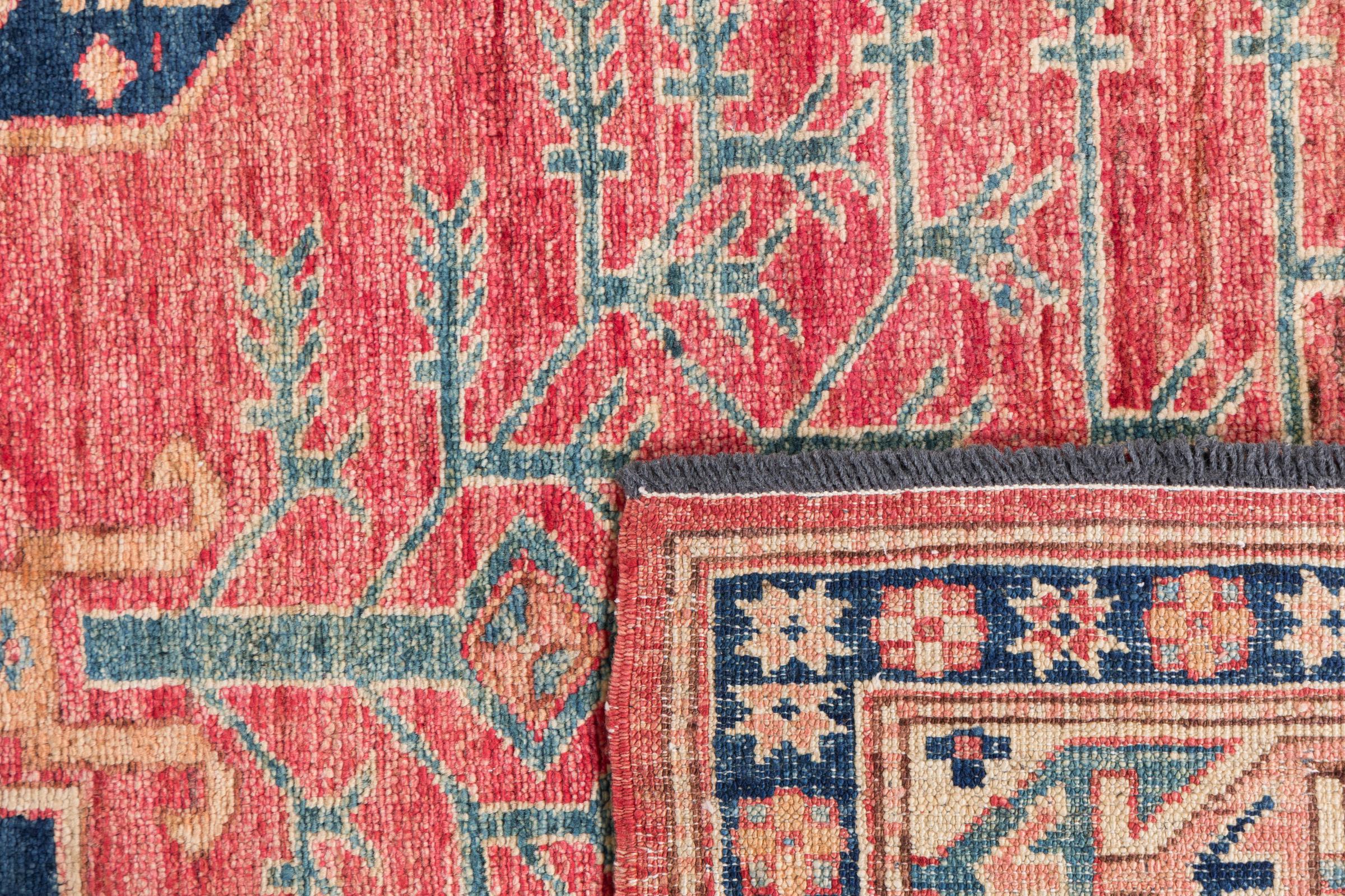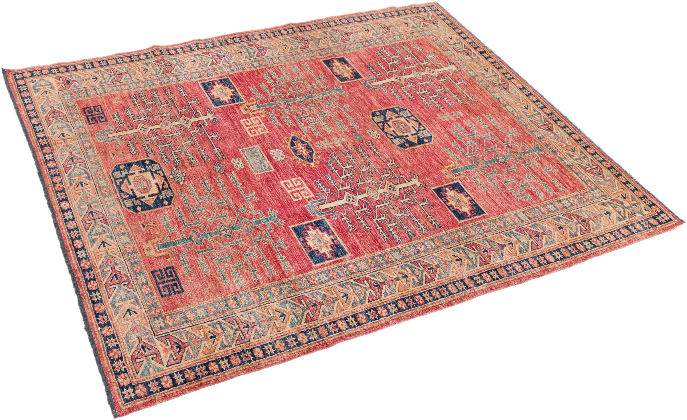 Esta alfombra Kazaka anudada a mano al estilo de las alfombras caucásicas convence por su gran robustez y sus vivos tonos. Así, refleja la cultura del Cáucaso en una bella composición. Una cultura que domina el arte de anudar alfombras desde hace siglos y que lo transmite al mundo exterior con formas encantadoramente sencillas en colores impresionantemente vivos.