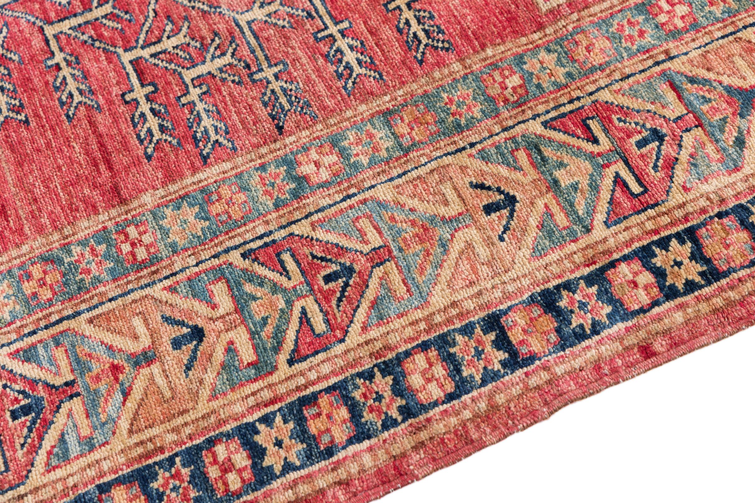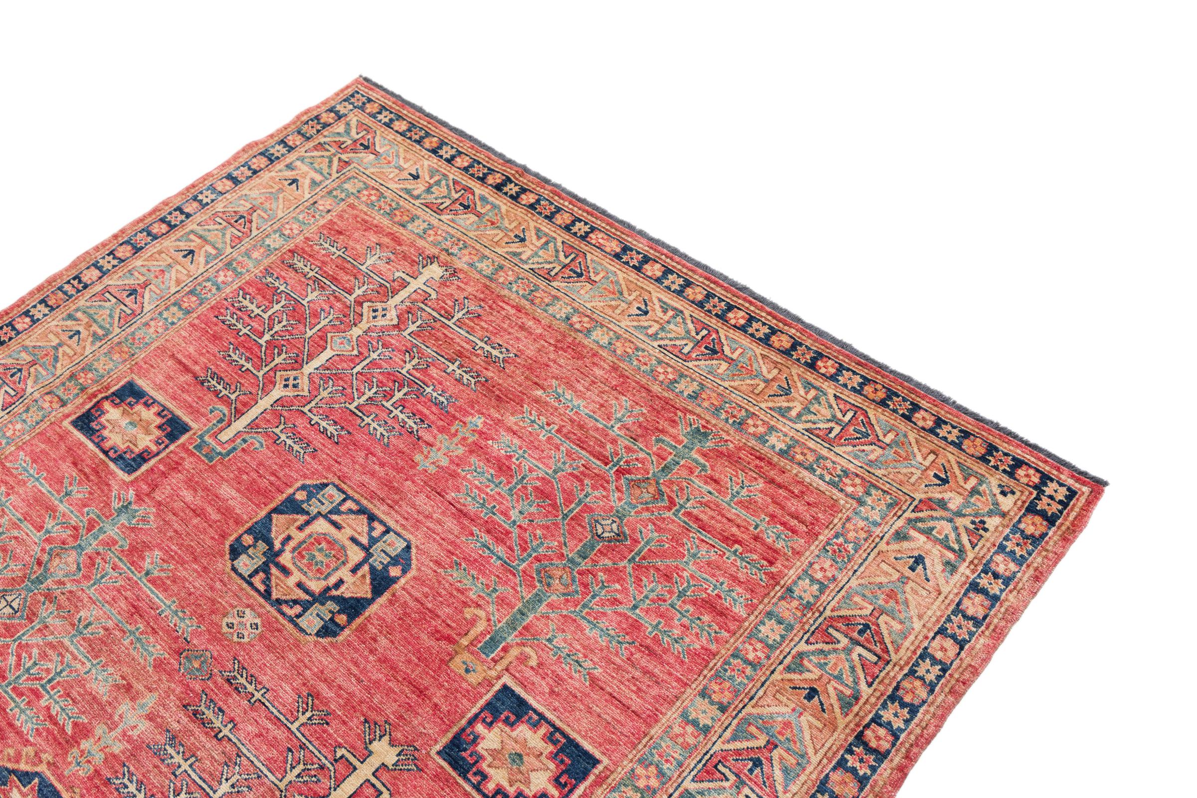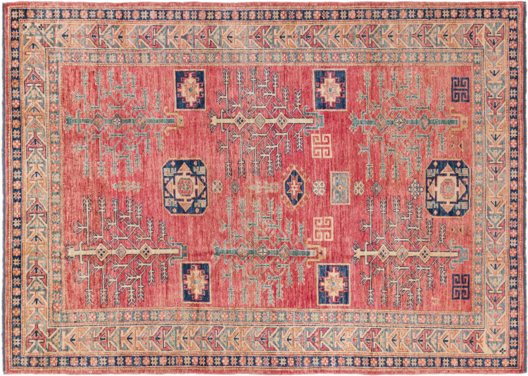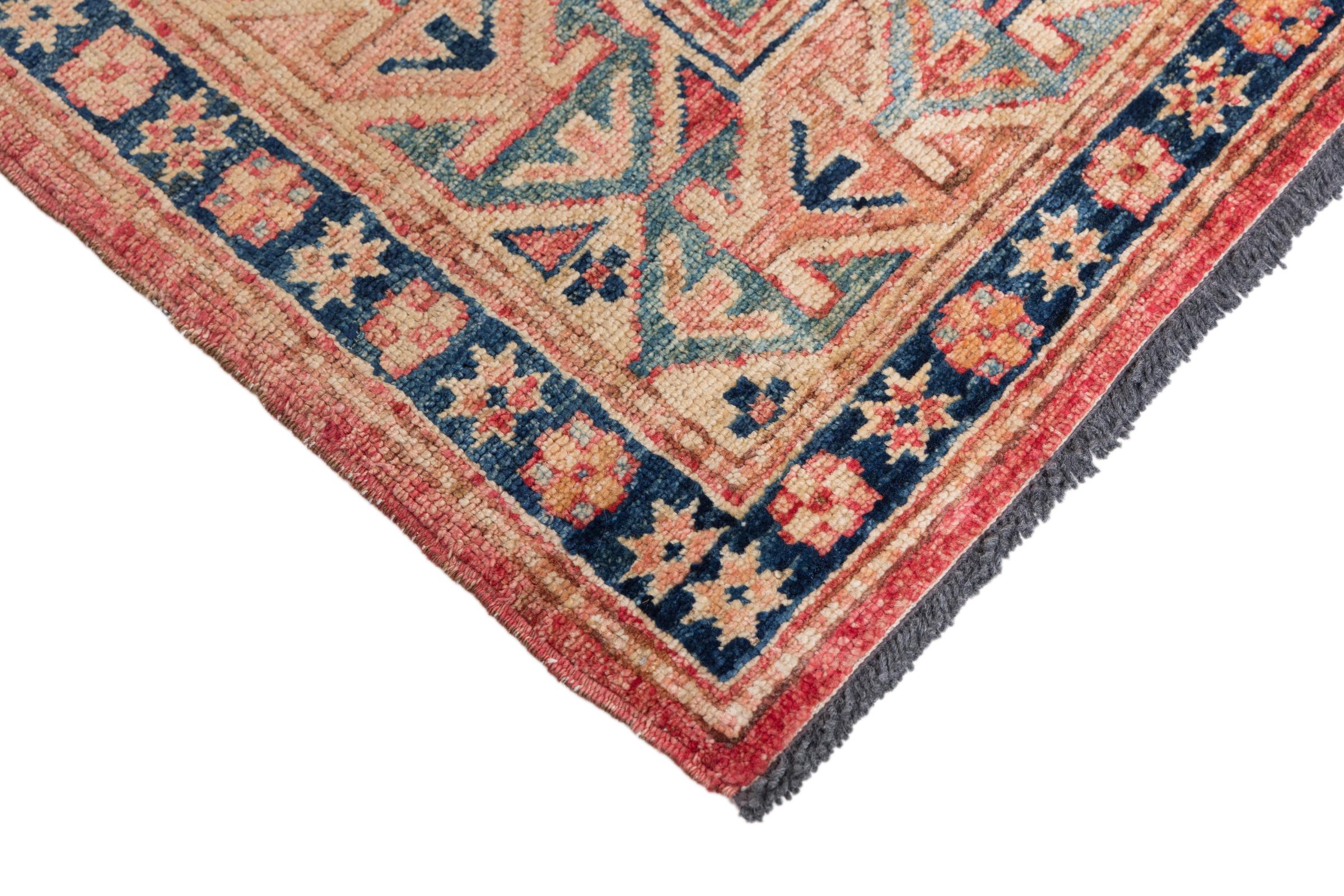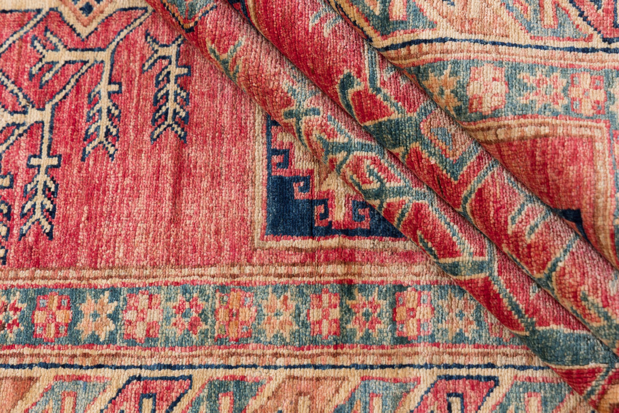 Esta alfombra Kazaka anudada a mano al estilo de las alfombras caucásicas convence por su gran robustez y sus vivos tonos. Así, refleja la cultura del Cáucaso en una bella composición. Una cultura que domina el arte de anudar alfombras desde hace siglos y que lo transmite al mundo exterior con formas encantadoramente sencillas en colores impresionantemente vivos.