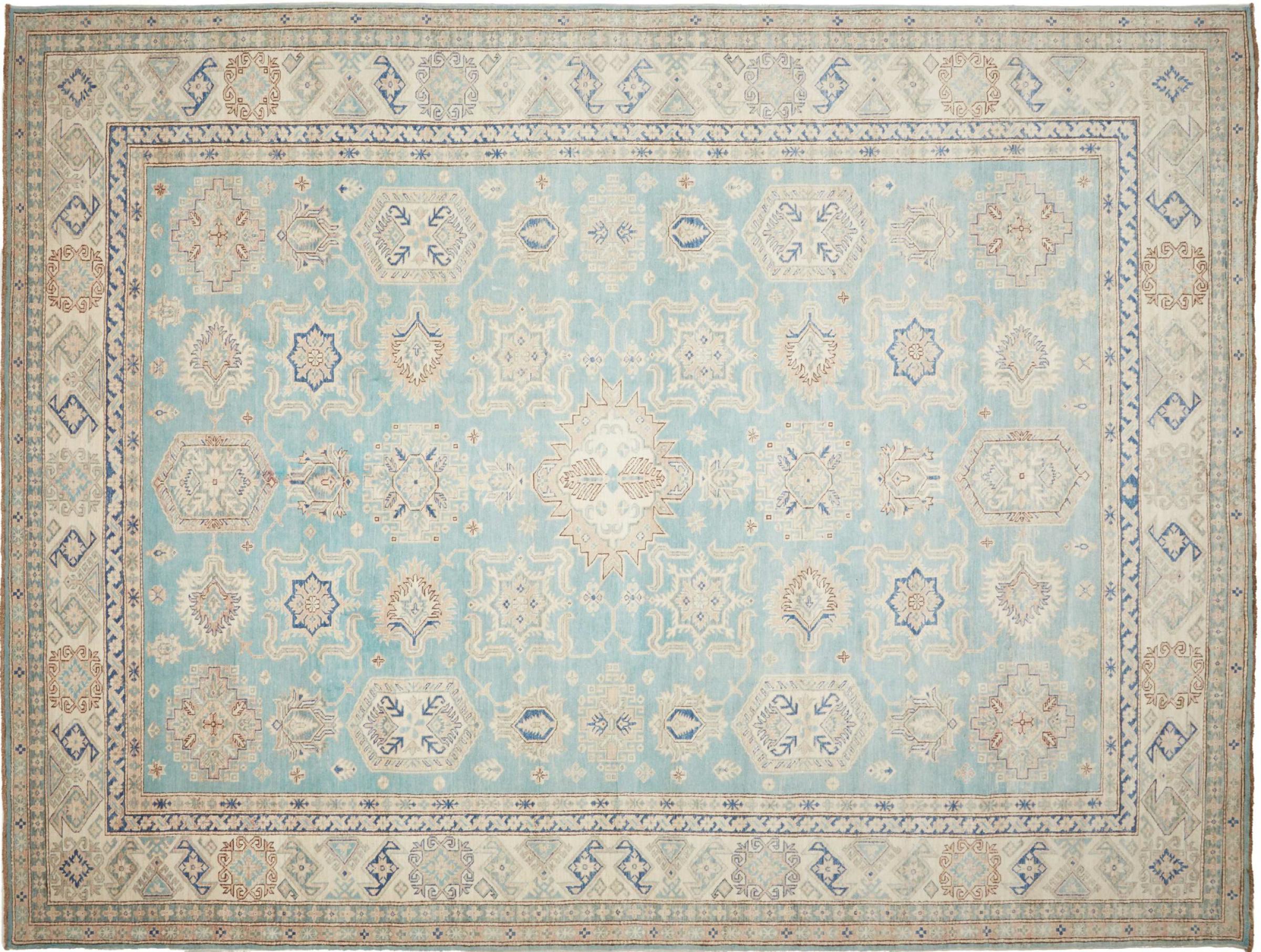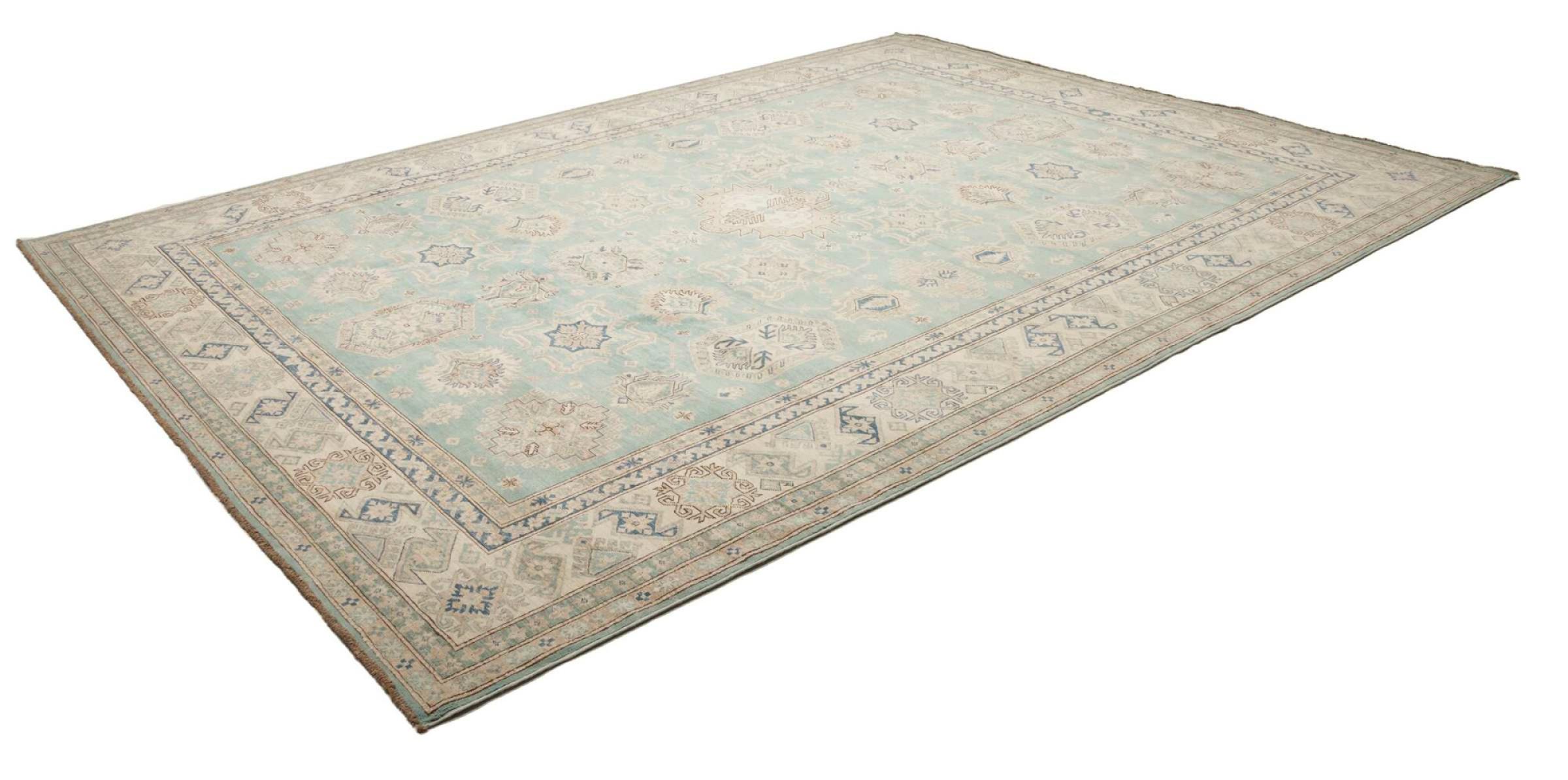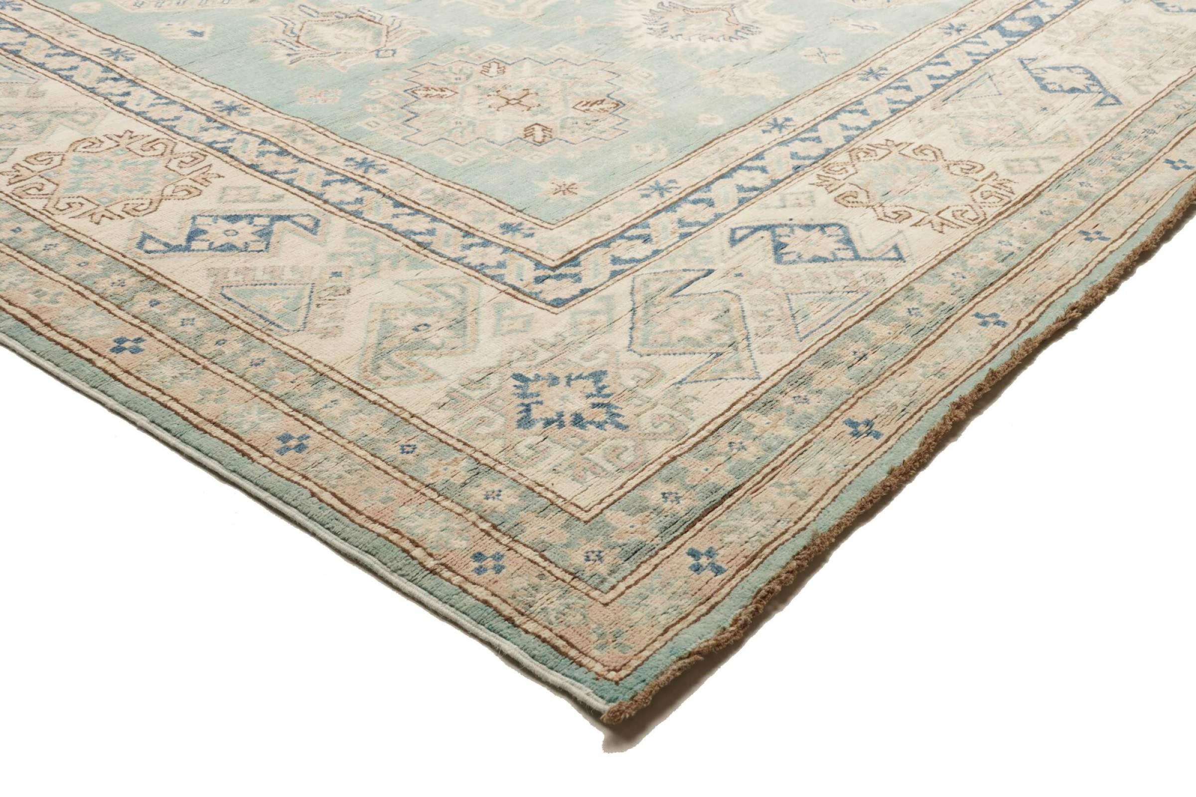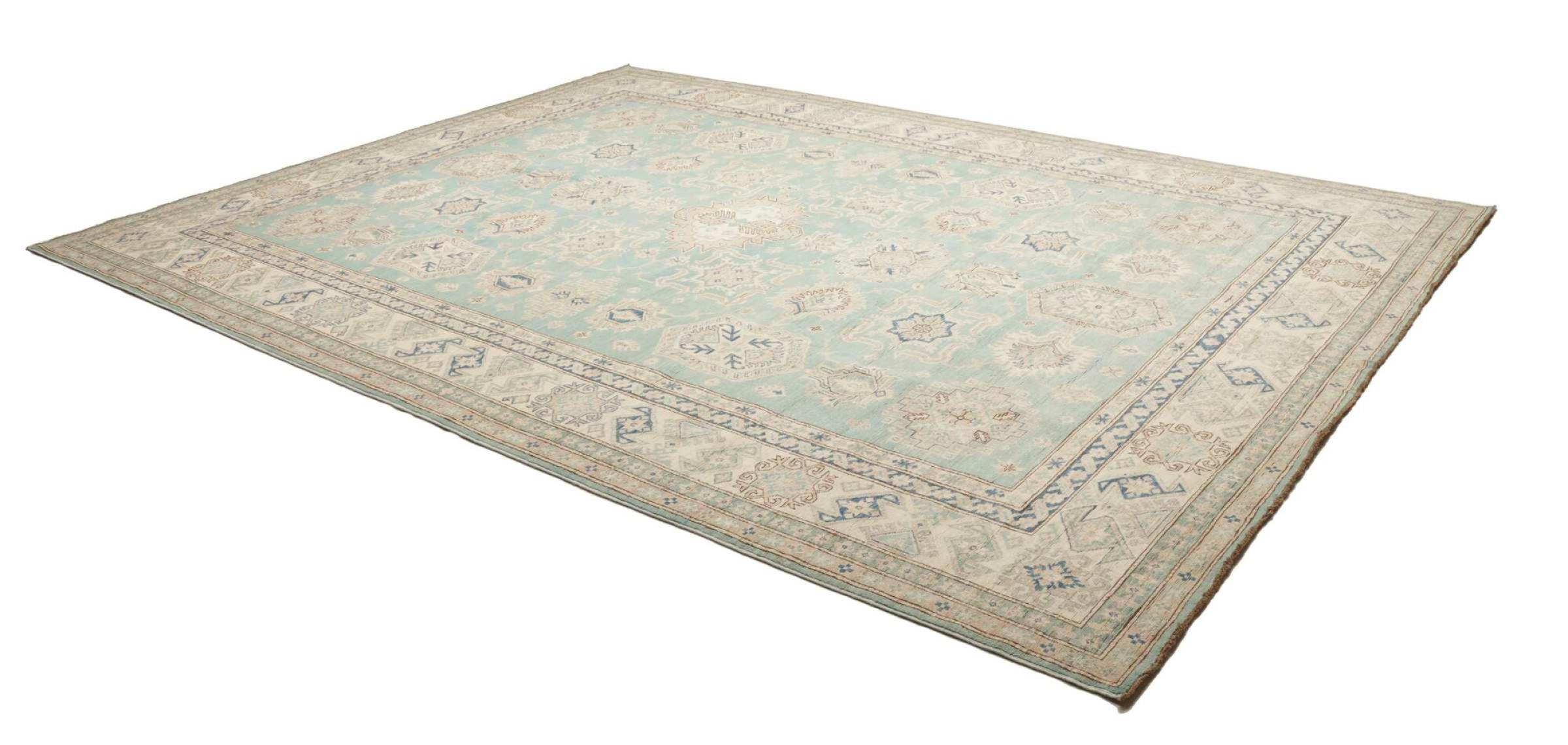 Esta alfombra Kazaka anudada a mano al estilo de las alfombras caucásicas convence por su gran robustez y sus vivos tonos. Así, refleja la cultura del Cáucaso en una bella composición. Una cultura que domina el arte de anudar alfombras desde hace siglos y que lo transmite al mundo exterior con formas encantadoramente sencillas en colores impresionantemente vivos.