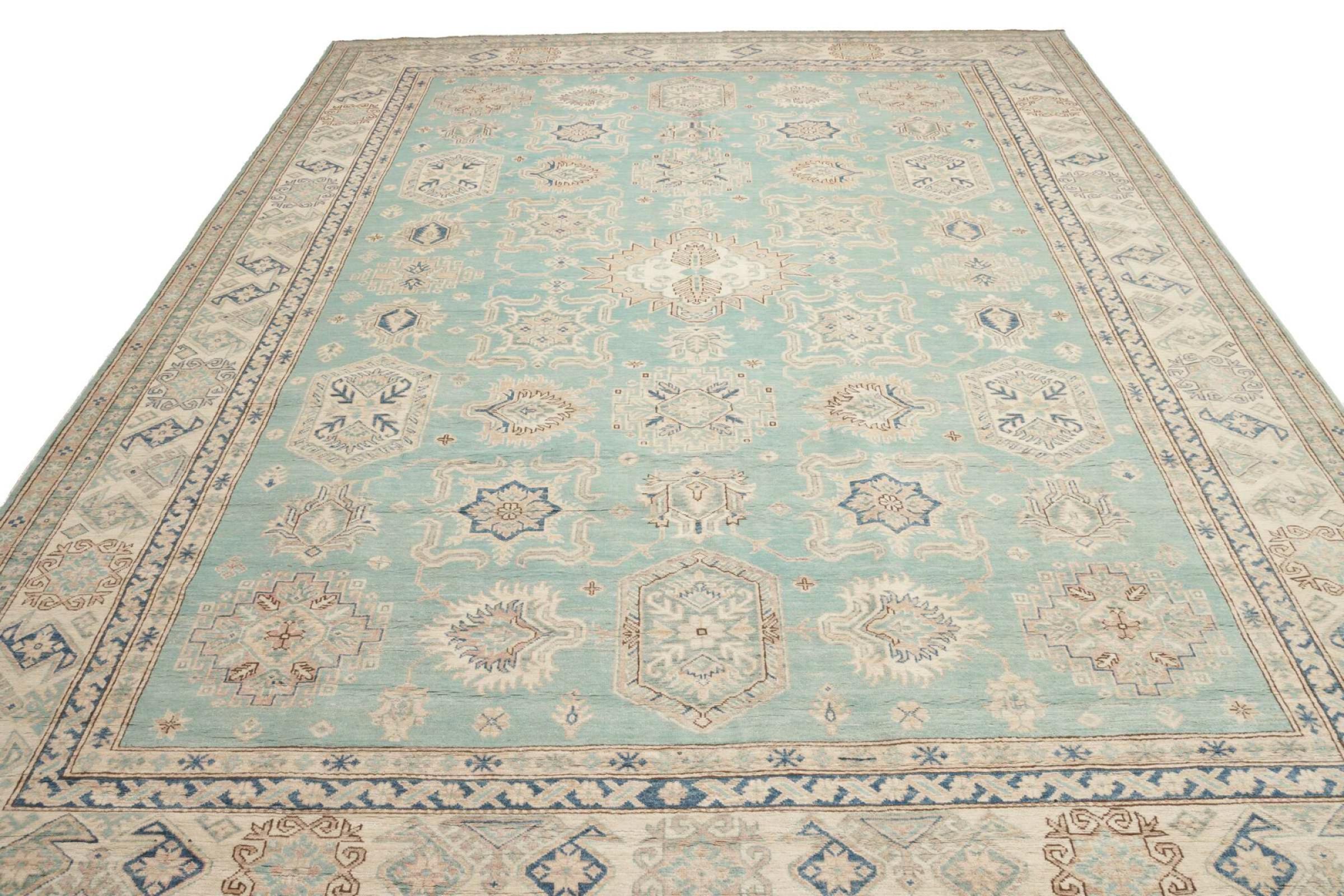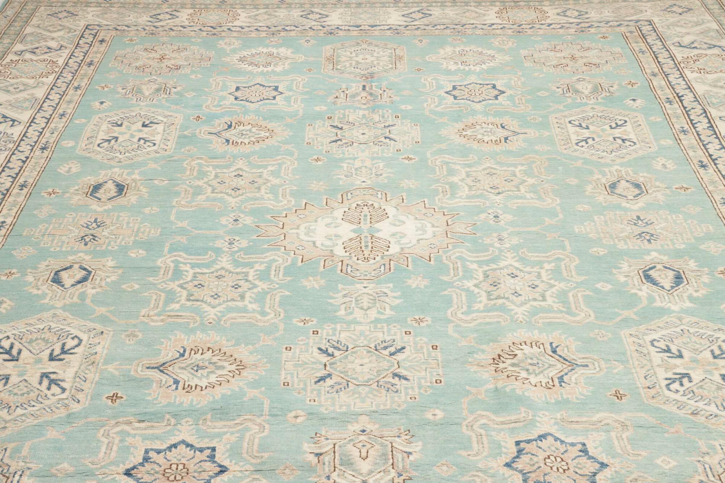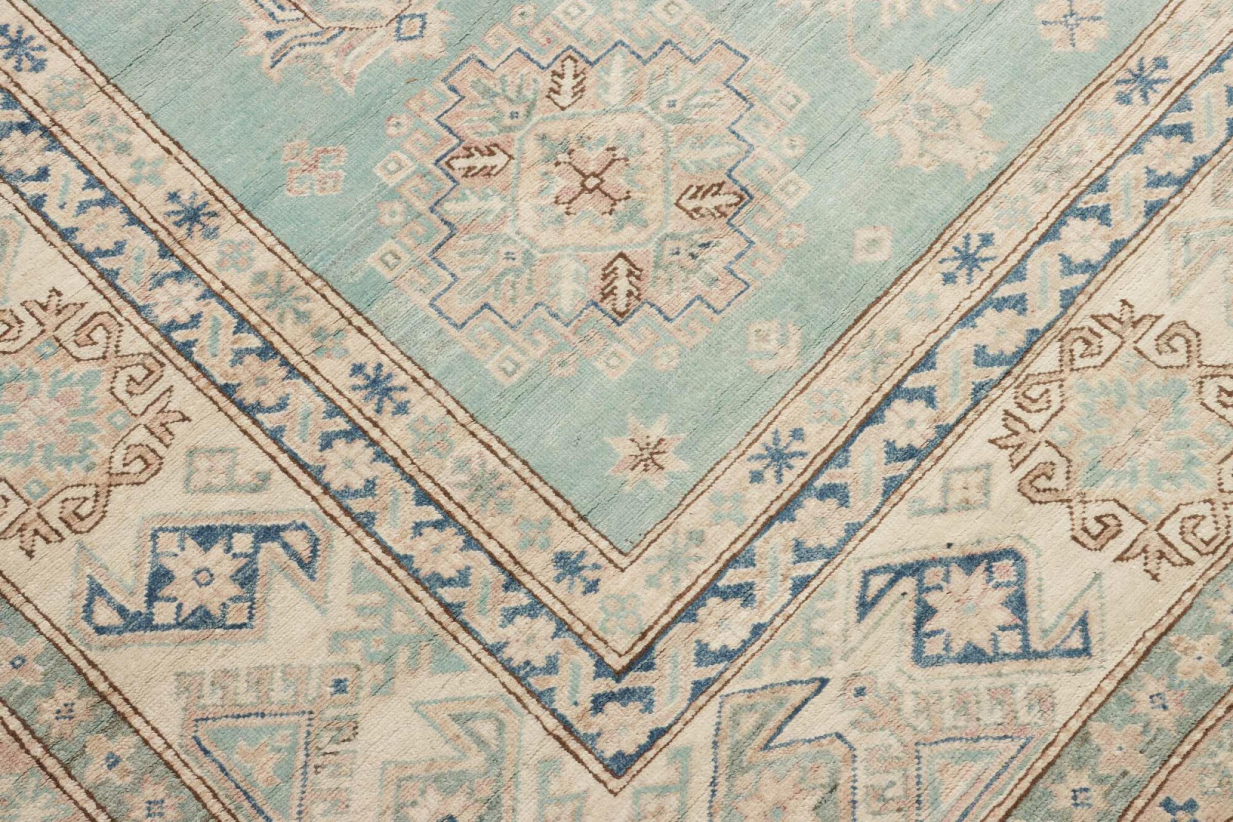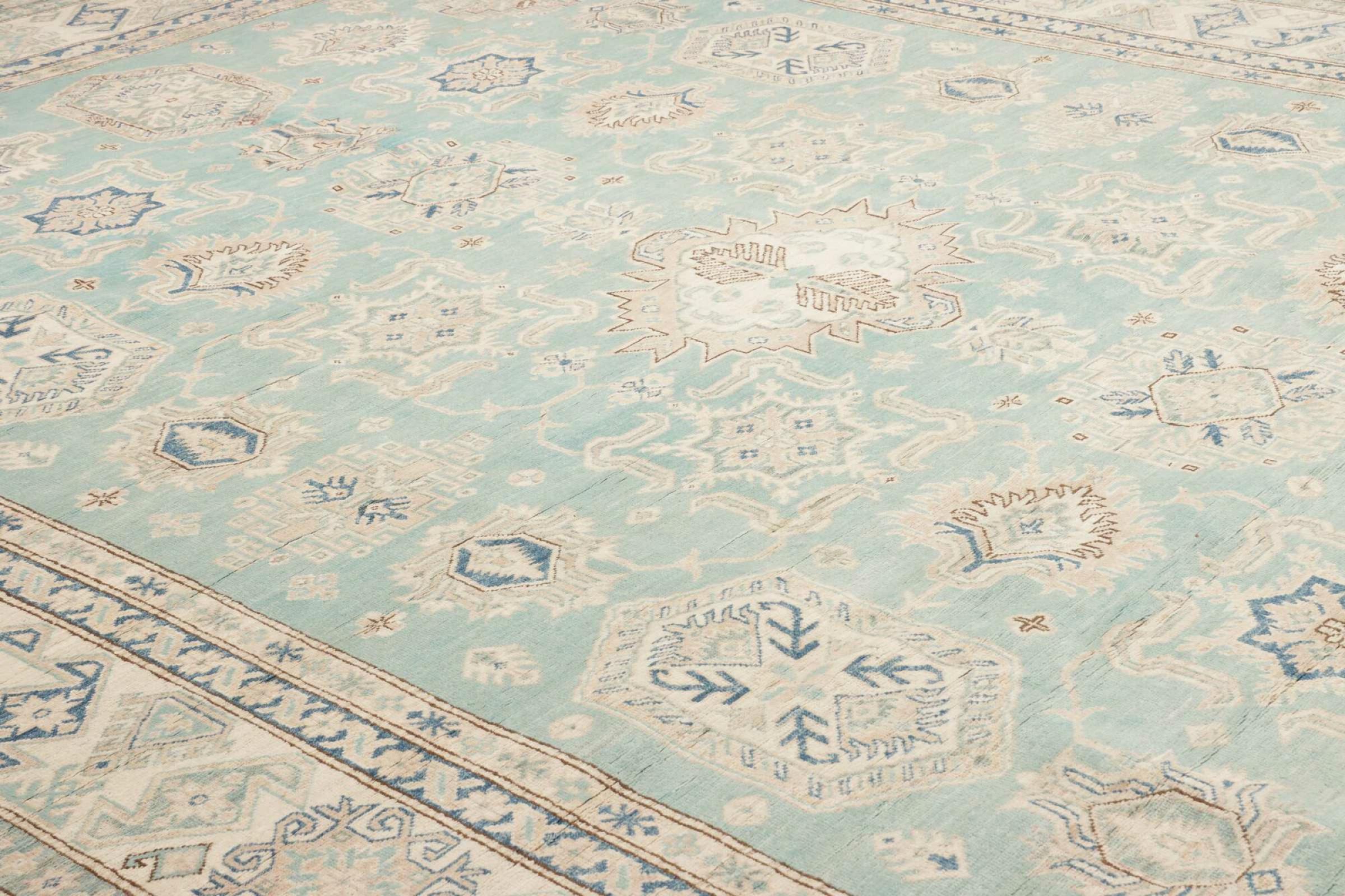 Esta alfombra Kazaka anudada a mano al estilo de las alfombras caucásicas convence por su gran robustez y sus vivos tonos. Así, refleja la cultura del Cáucaso en una bella composición. Una cultura que domina el arte de anudar alfombras desde hace siglos y que lo transmite al mundo exterior con formas encantadoramente sencillas en colores impresionantemente vivos.