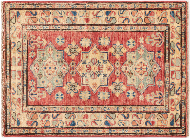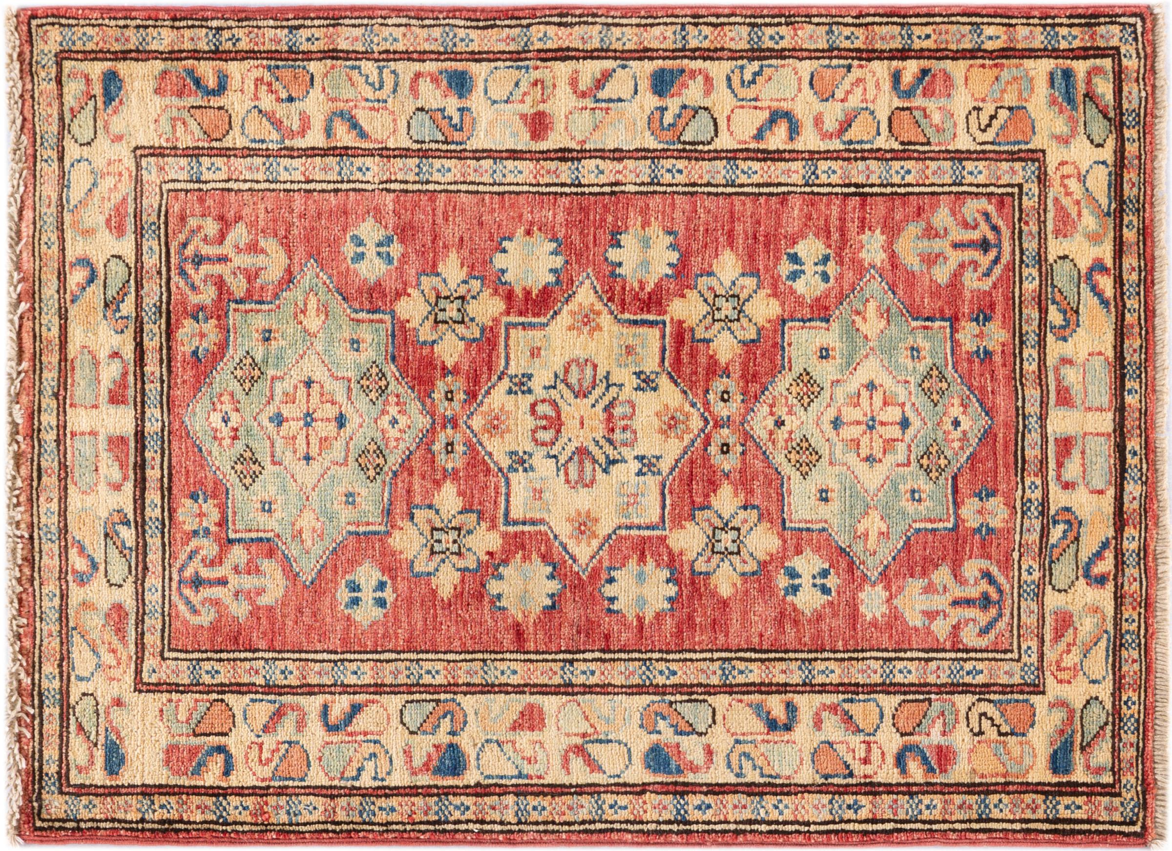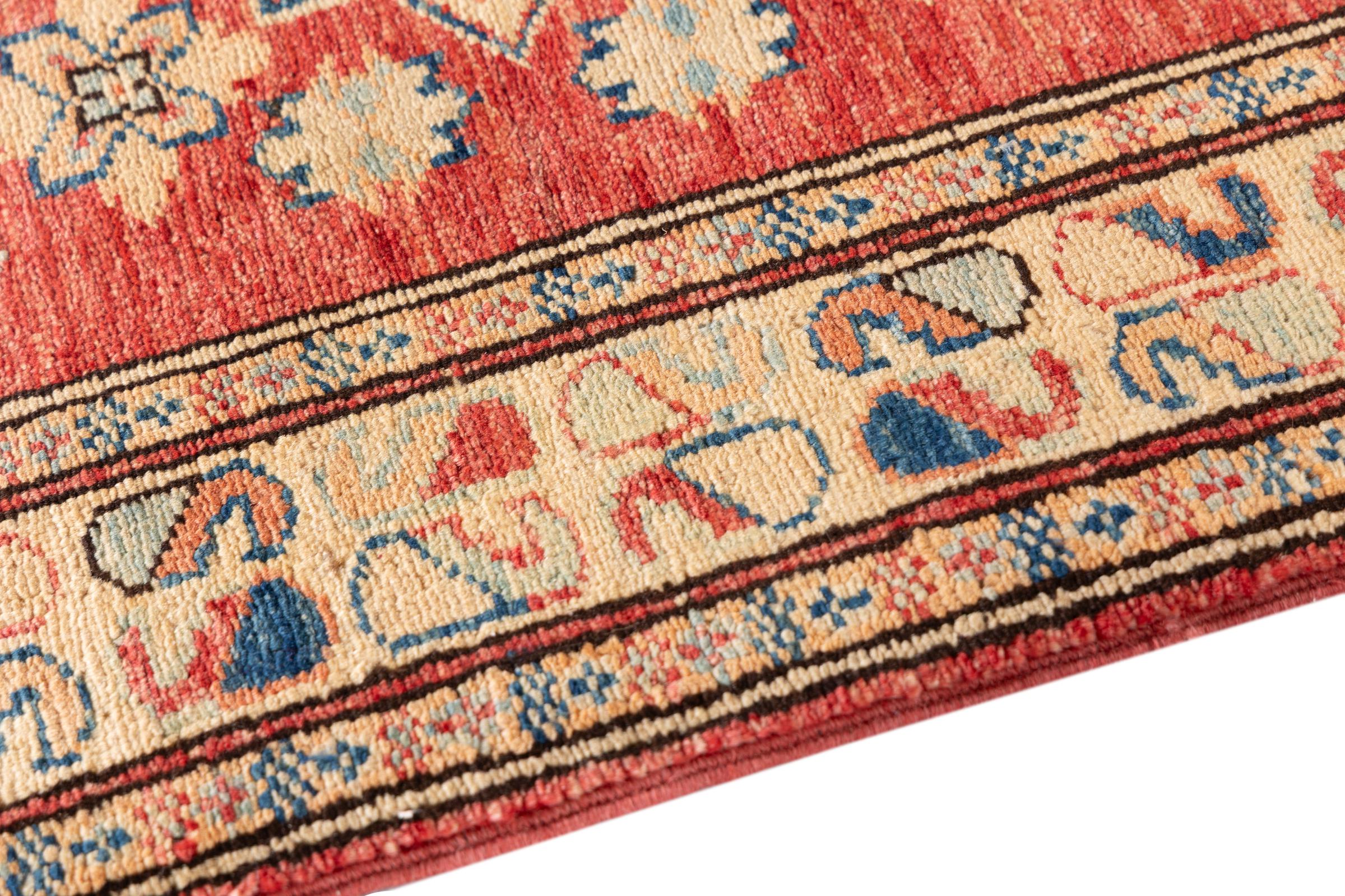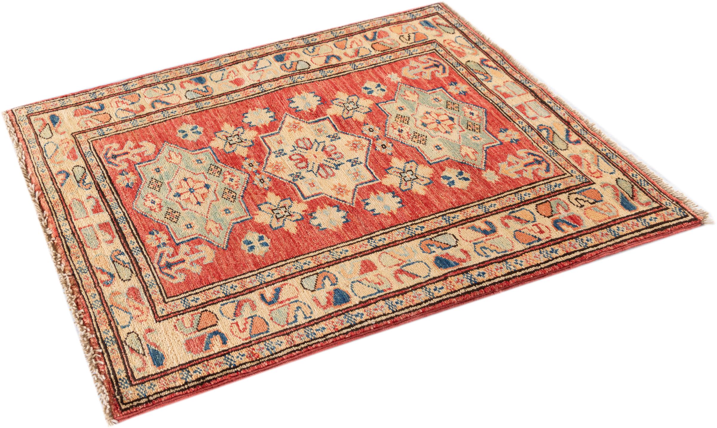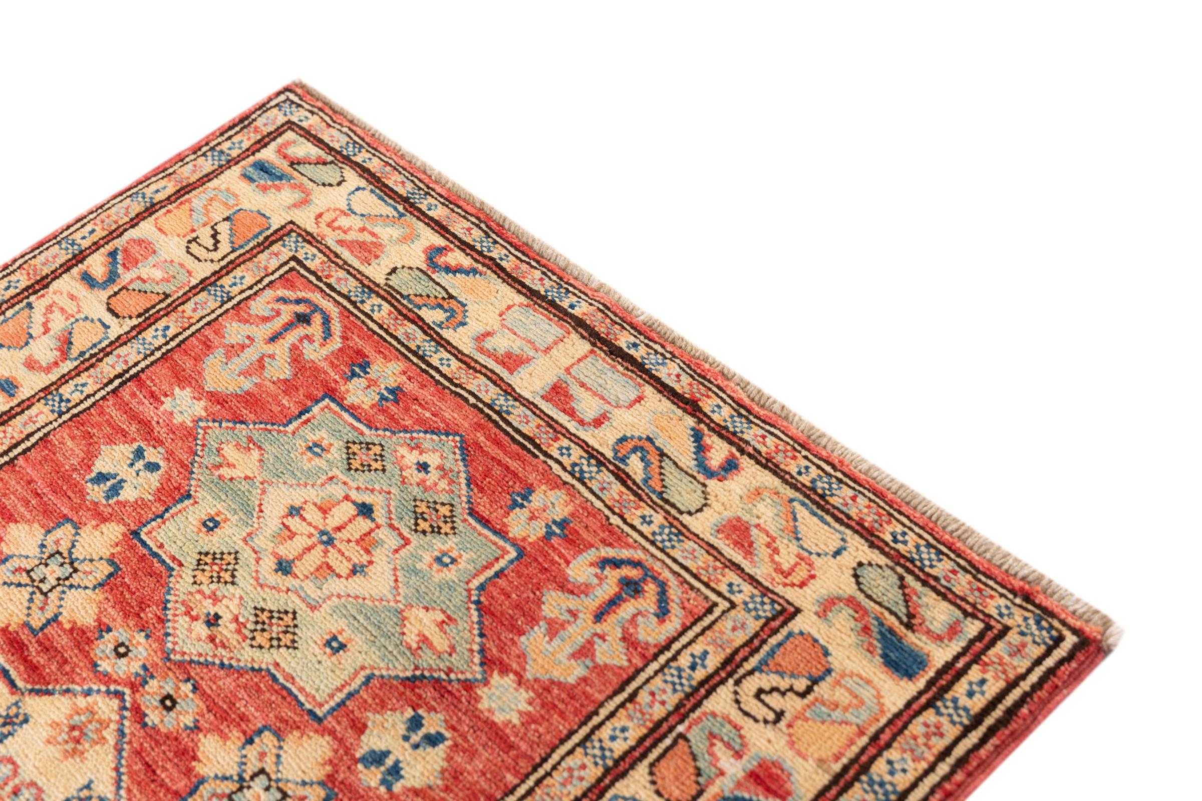 Esta alfombra Kazaka anudada a mano al estilo de las alfombras caucásicas convence por su gran robustez y sus vivos tonos. Así, refleja la cultura del Cáucaso en una bella composición. Una cultura que domina el arte de anudar alfombras desde hace siglos y que lo transmite al mundo exterior con formas encantadoramente sencillas en colores impresionantemente vivos.