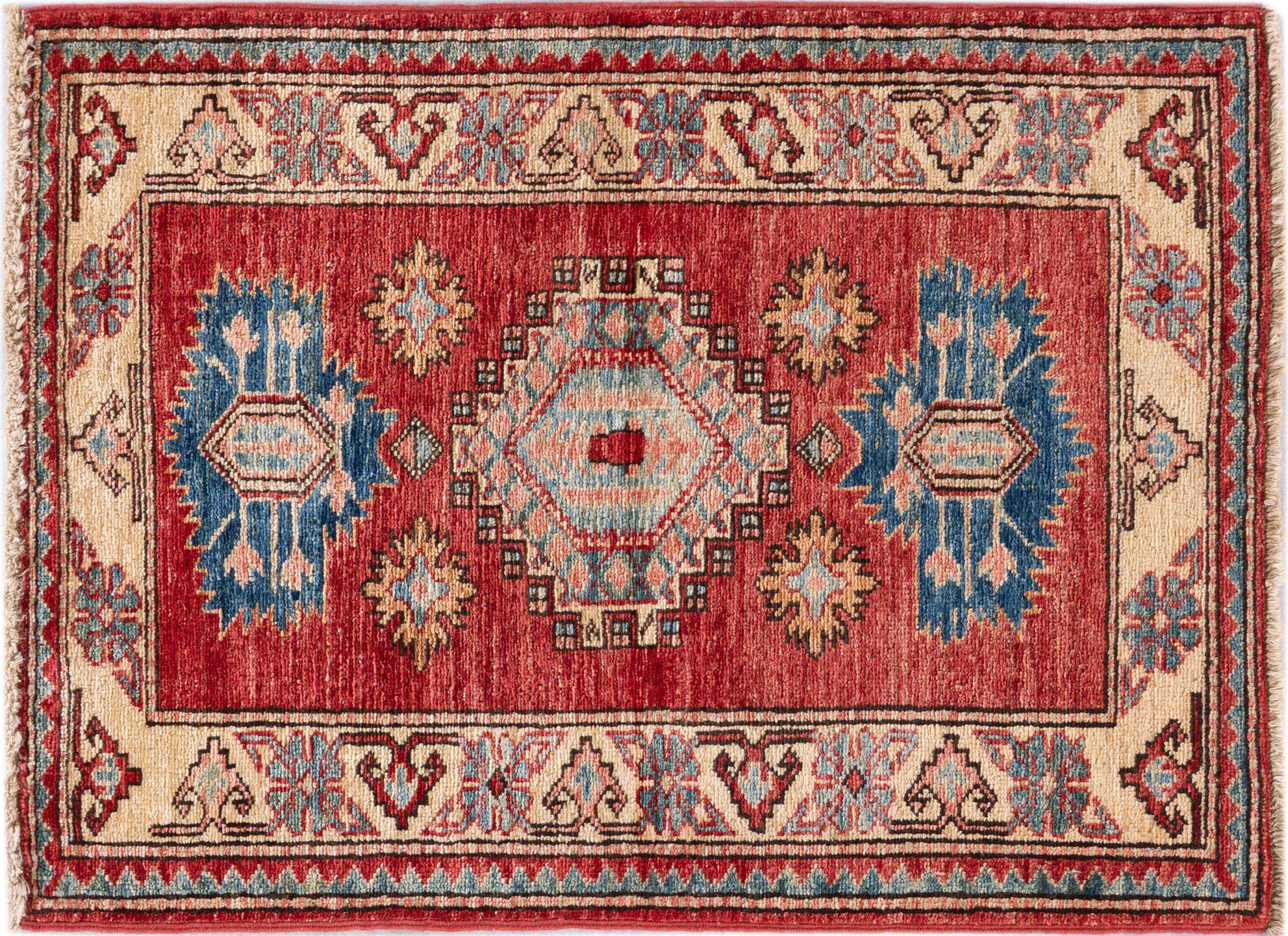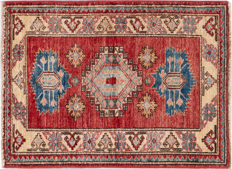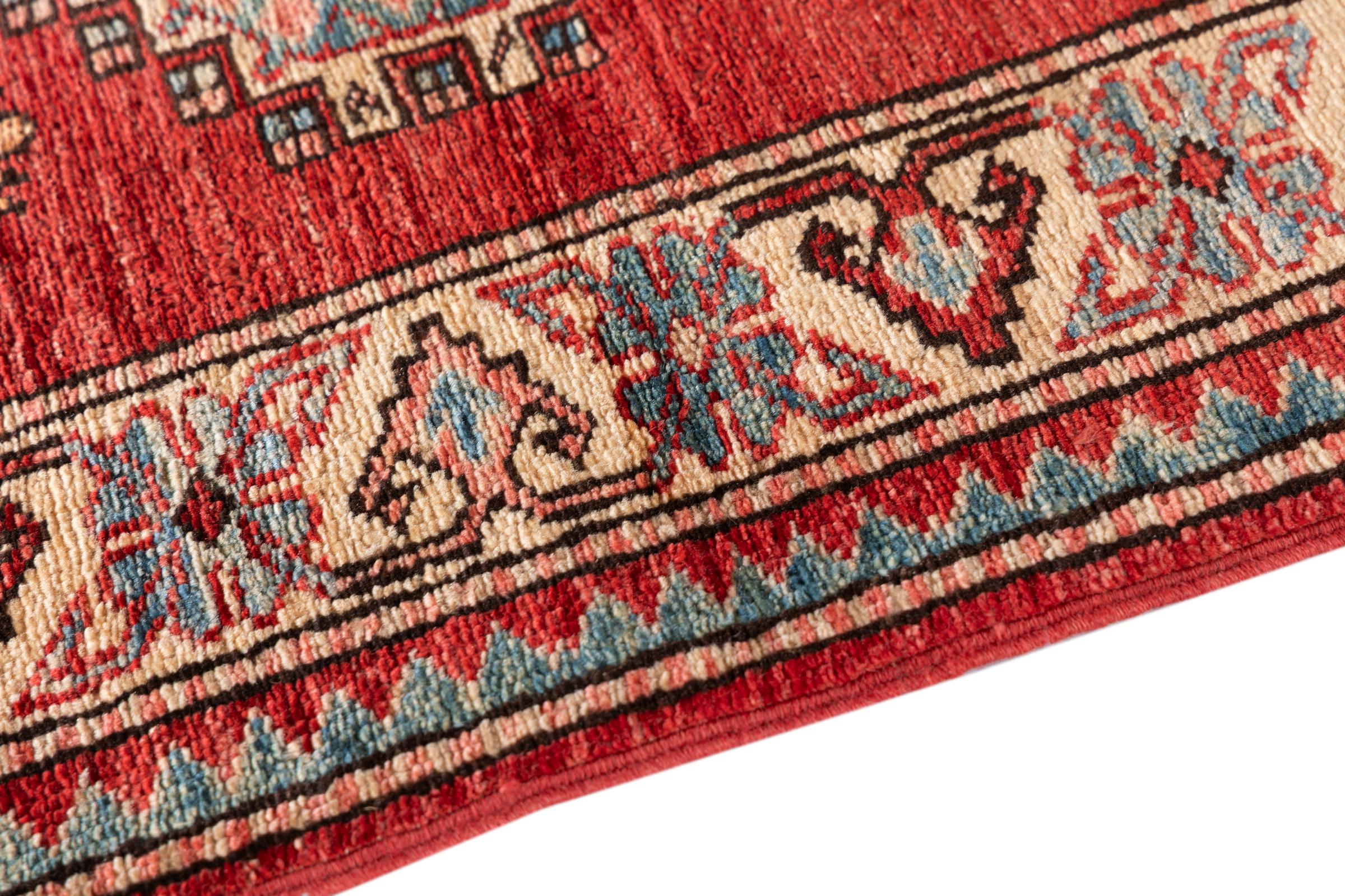 Esta alfombra Kazaka anudada a mano al estilo de las alfombras caucásicas convence por su gran robustez y sus vivos tonos. Así, refleja la cultura del Cáucaso en una bella composición. Una cultura que domina el arte de anudar alfombras desde hace siglos y que lo transmite al mundo exterior con formas encantadoramente sencillas en colores impresionantemente vivos.