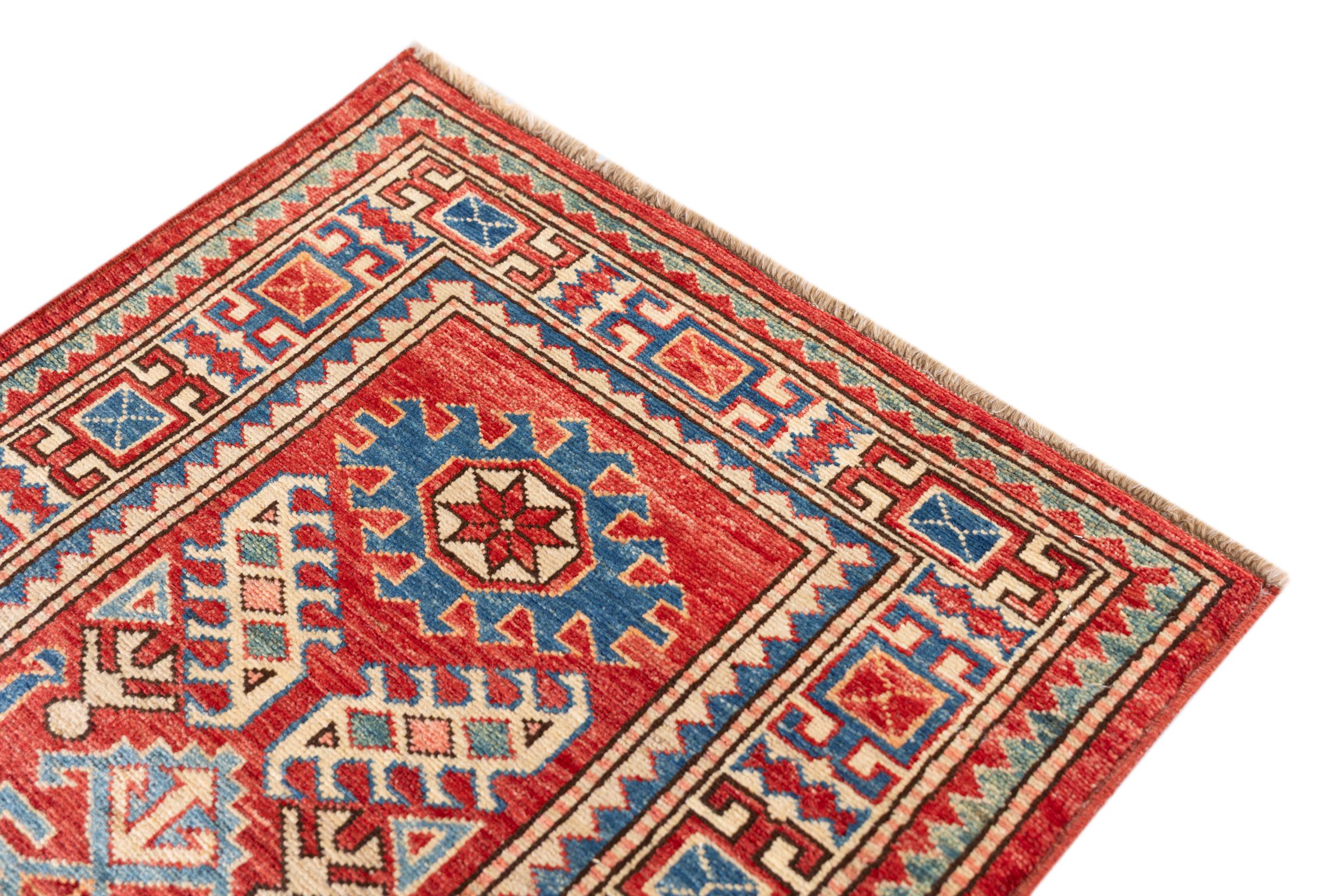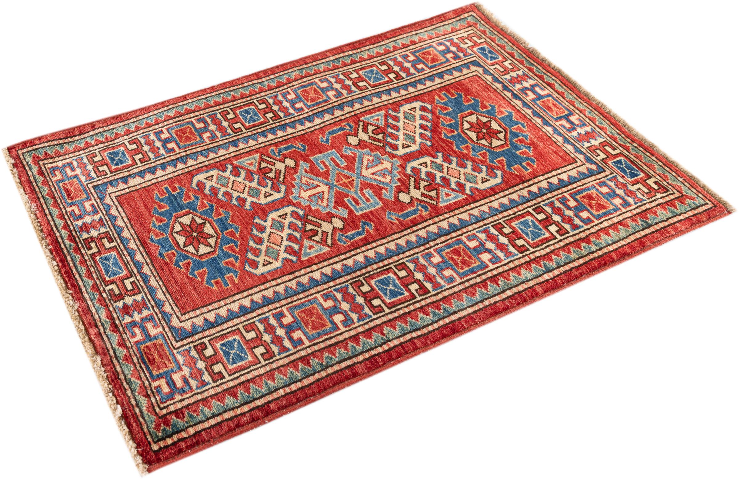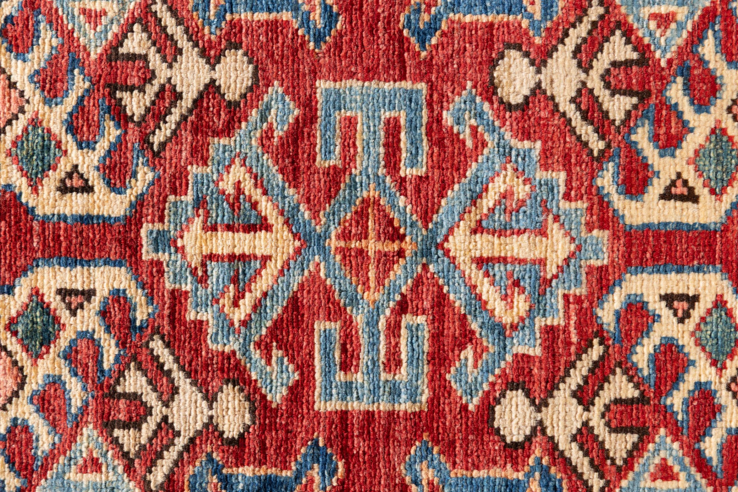 Esta alfombra Kazaka anudada a mano al estilo de las alfombras caucásicas convence por su gran robustez y sus vivos tonos. Así, refleja la cultura del Cáucaso en una bella composición. Una cultura que domina el arte de anudar alfombras desde hace siglos y que lo transmite al mundo exterior con formas encantadoramente sencillas en colores impresionantemente vivos.