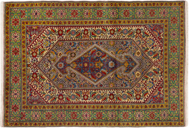Esta Tabriz se anudó a mano en un pequeño pueblo de los alrededores de la ciudad de Tabriz. Posee la extraordinaria calidad que se conoce de las buenas alfombras persas Tabriz. Al mismo tiempo, tiene un carácter único de origen.