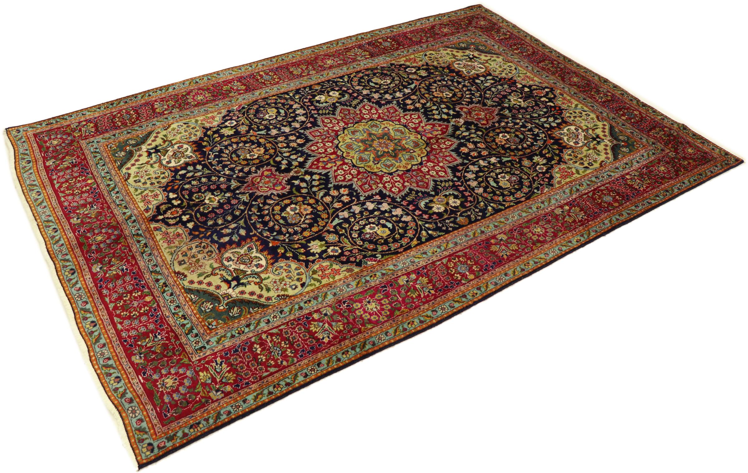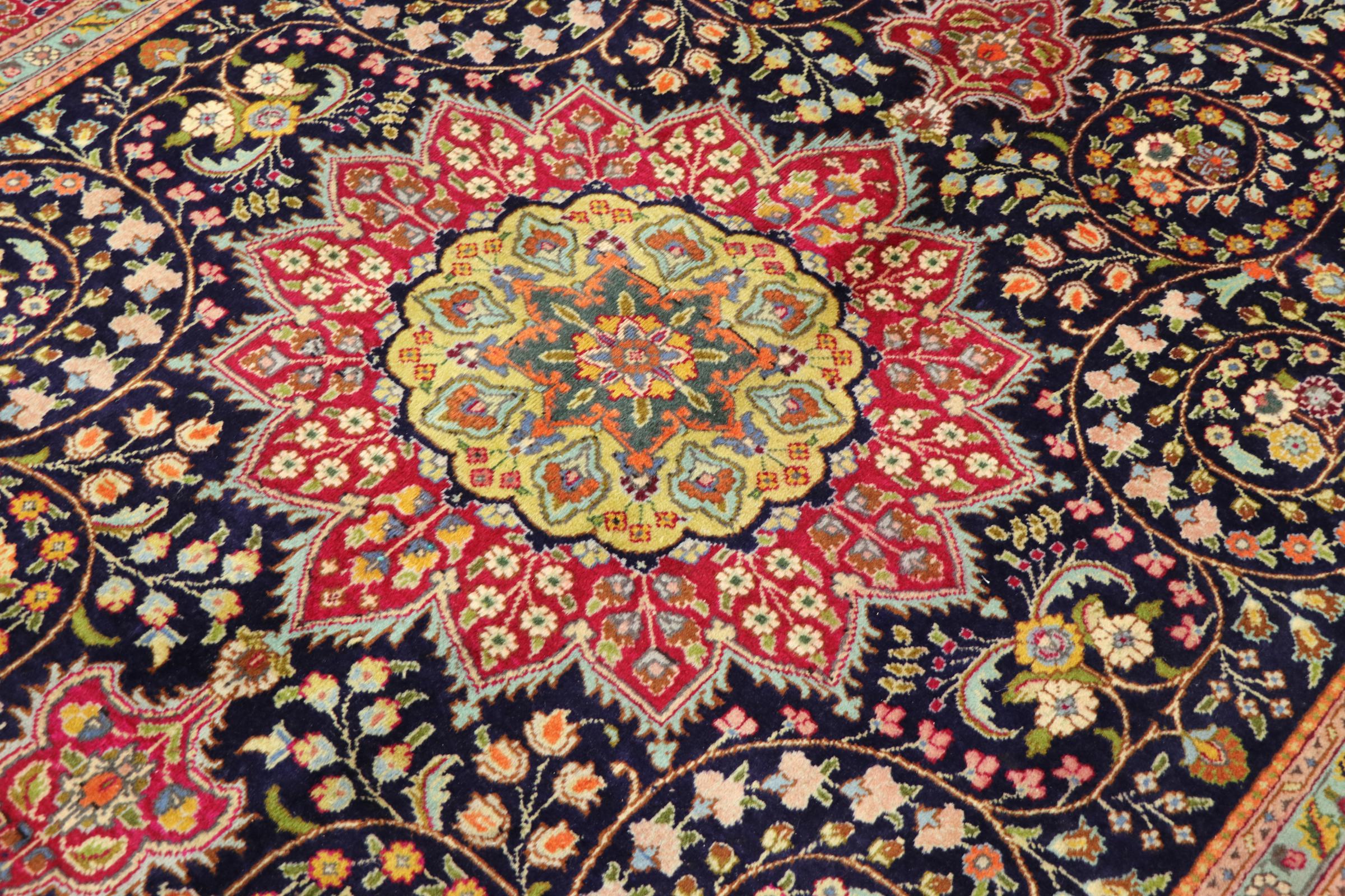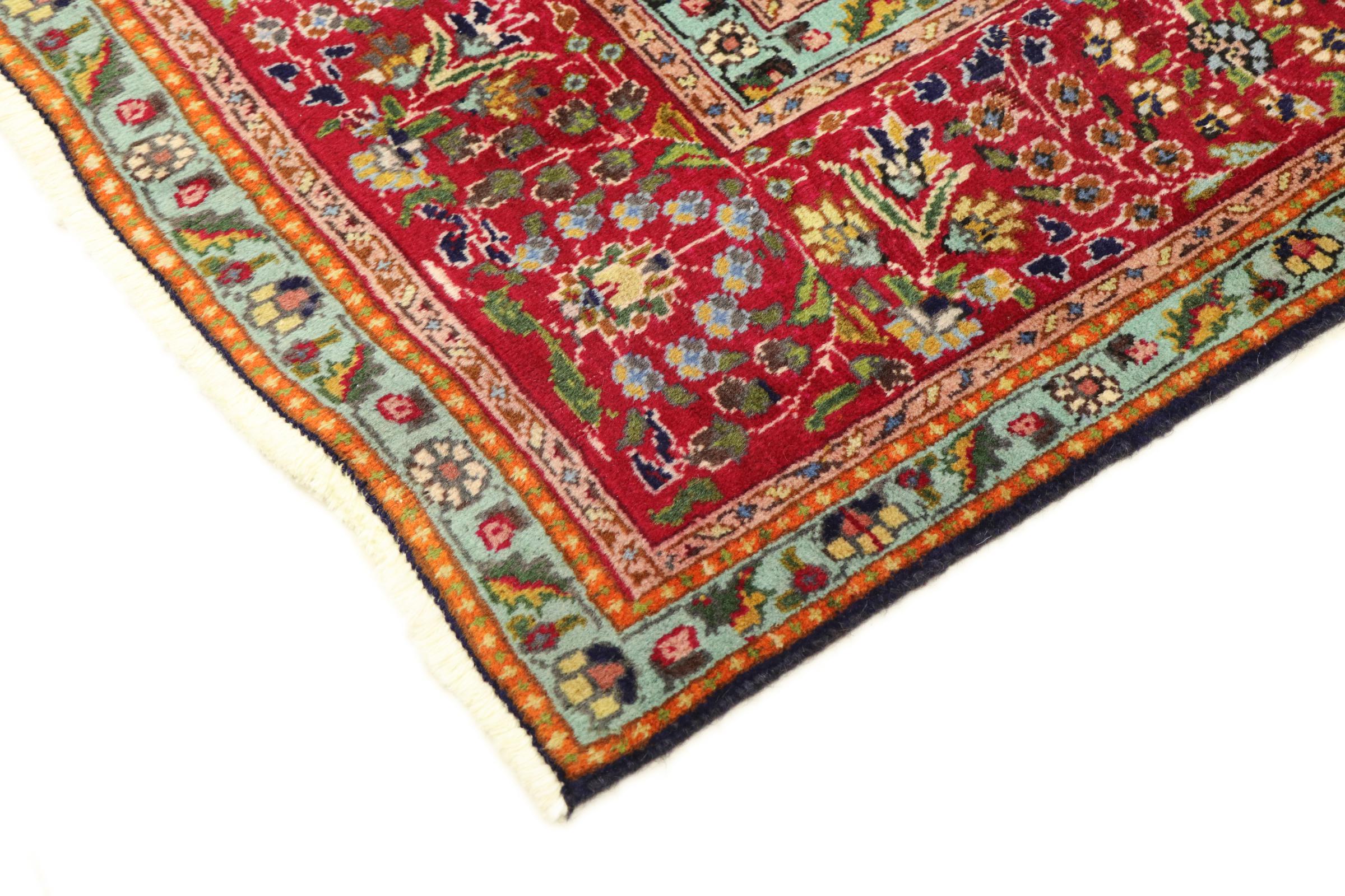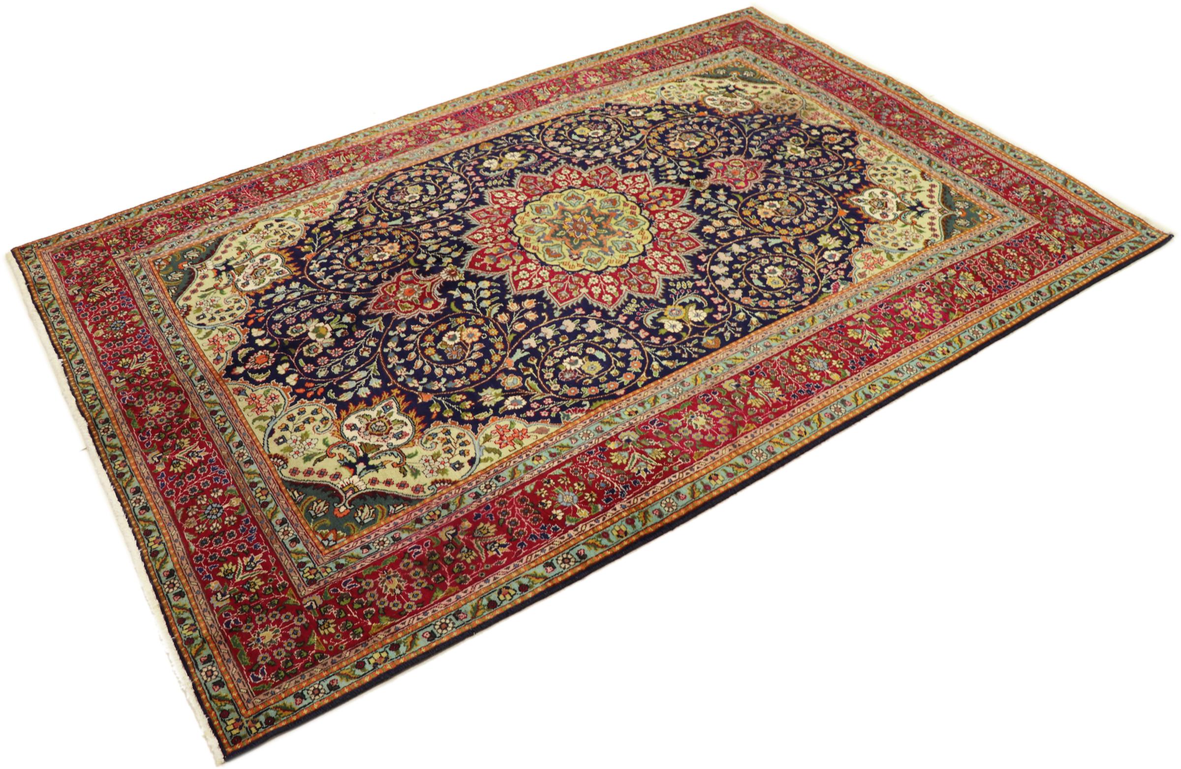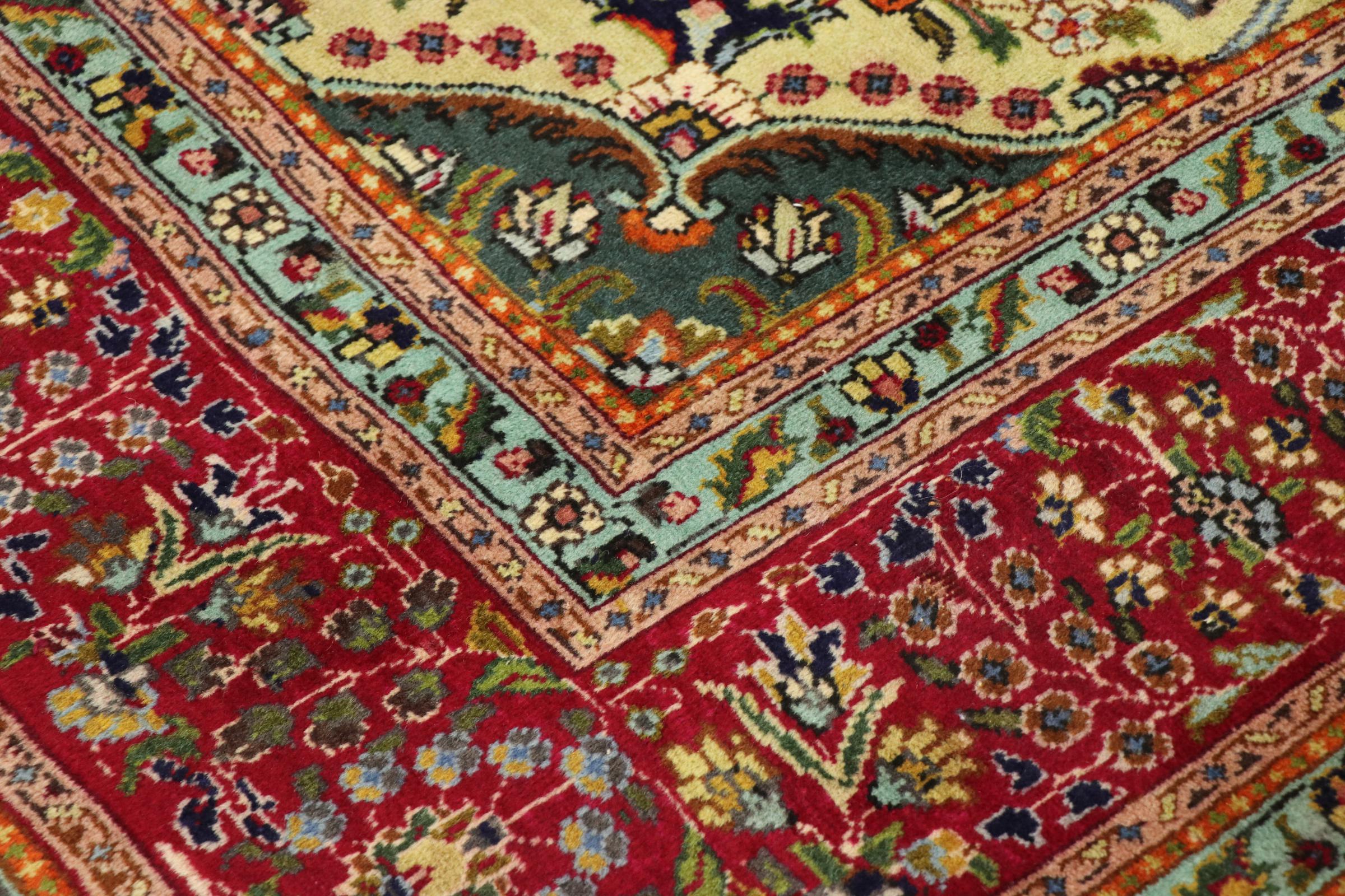 Esta Tabriz se anudó a mano en un pequeño pueblo de los alrededores de la ciudad de Tabriz. Posee la extraordinaria calidad que se conoce de las buenas alfombras persas Tabriz. Al mismo tiempo, tiene un carácter único de origen.