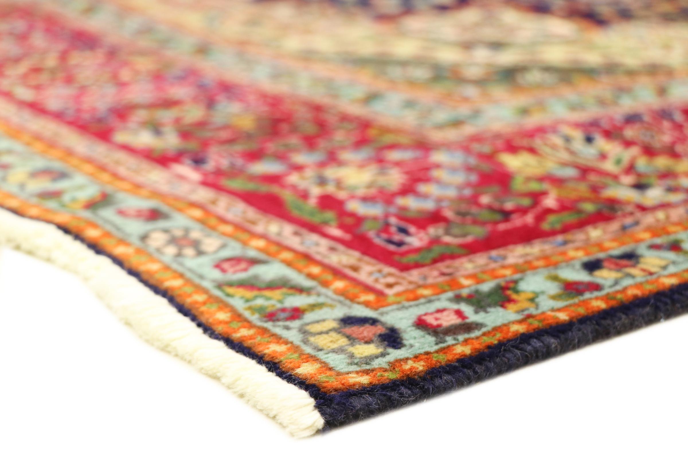 Esta alfombra está hecha de lana de oveja hilada a mano de la más alta calidad. Especialmente en Irán (antigua Persia), la lana de Afganistán y Pakistán sigue siendo hilada a mano antes de que comience el anudado de la alfombra. La lana ha demostrado ser un material natural y extremadamente resistente a lo largo de los siglos. Entre otras cosas, tiene propiedades repelentes de la suciedad y aislantes del calor. Al mismo tiempo, la lana es incomparablemente suave y tiene un brillo natural.