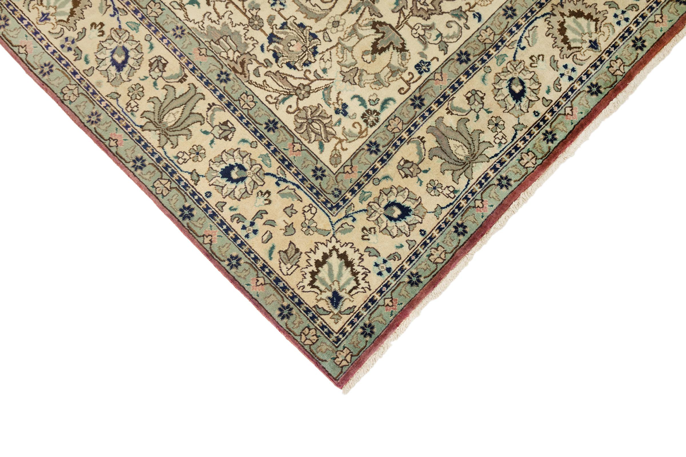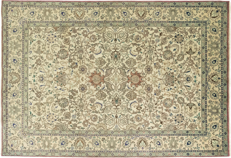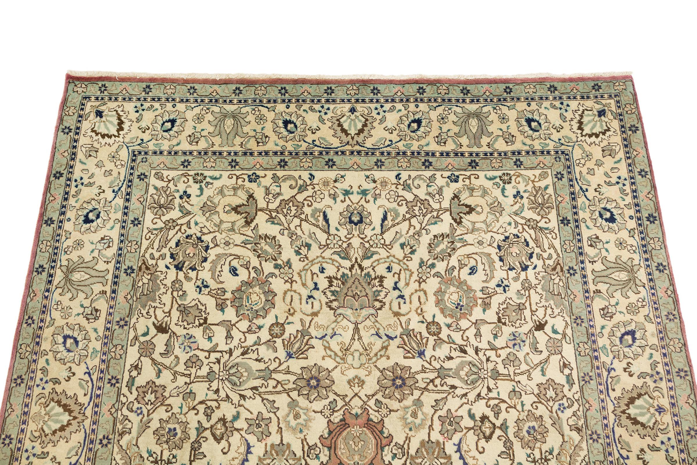 Esta Tabriz se anudó a mano en un pequeño pueblo de los alrededores de la ciudad de Tabriz. Posee la extraordinaria calidad que se conoce de las buenas alfombras persas Tabriz. Al mismo tiempo, tiene un carácter único de origen.