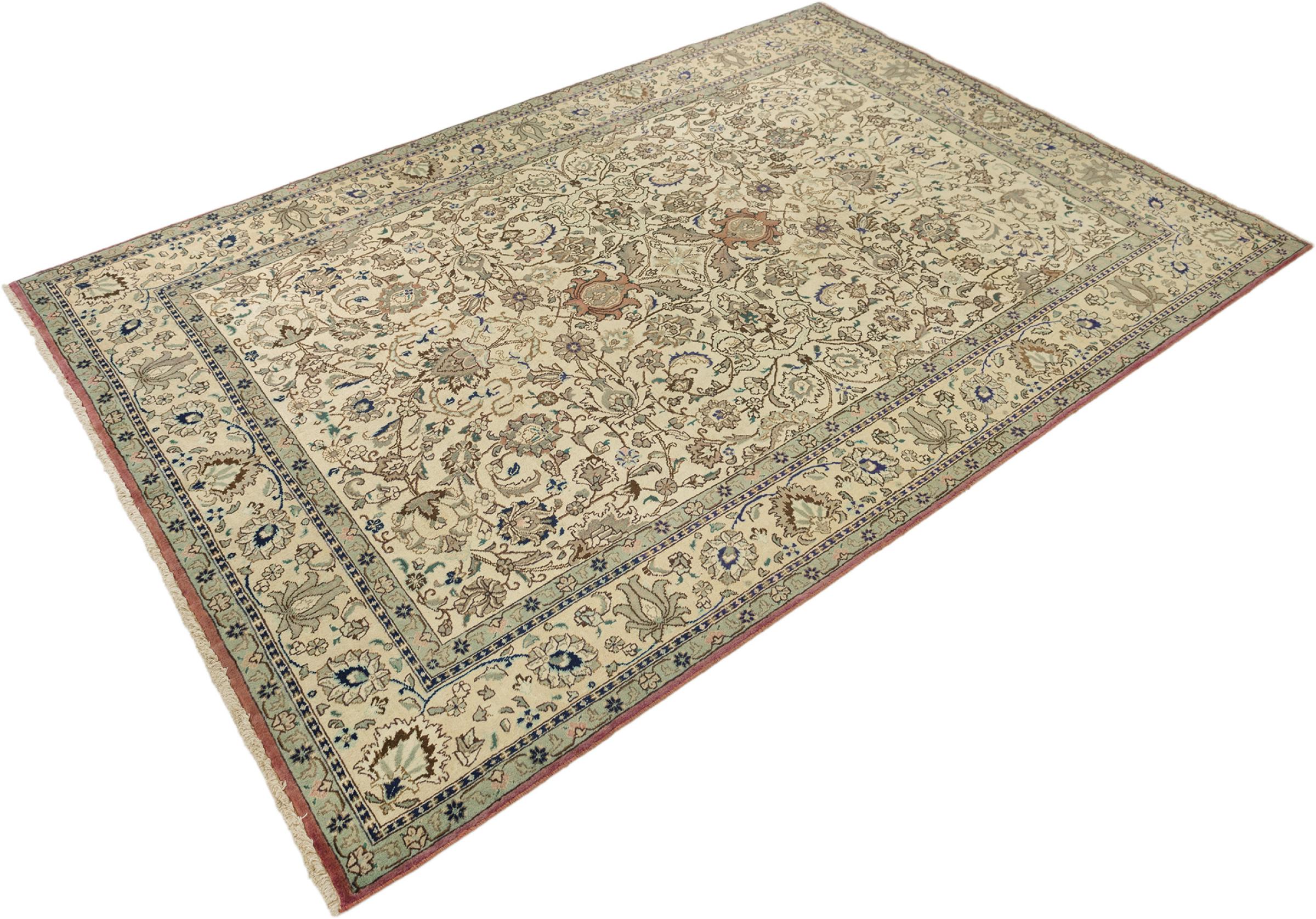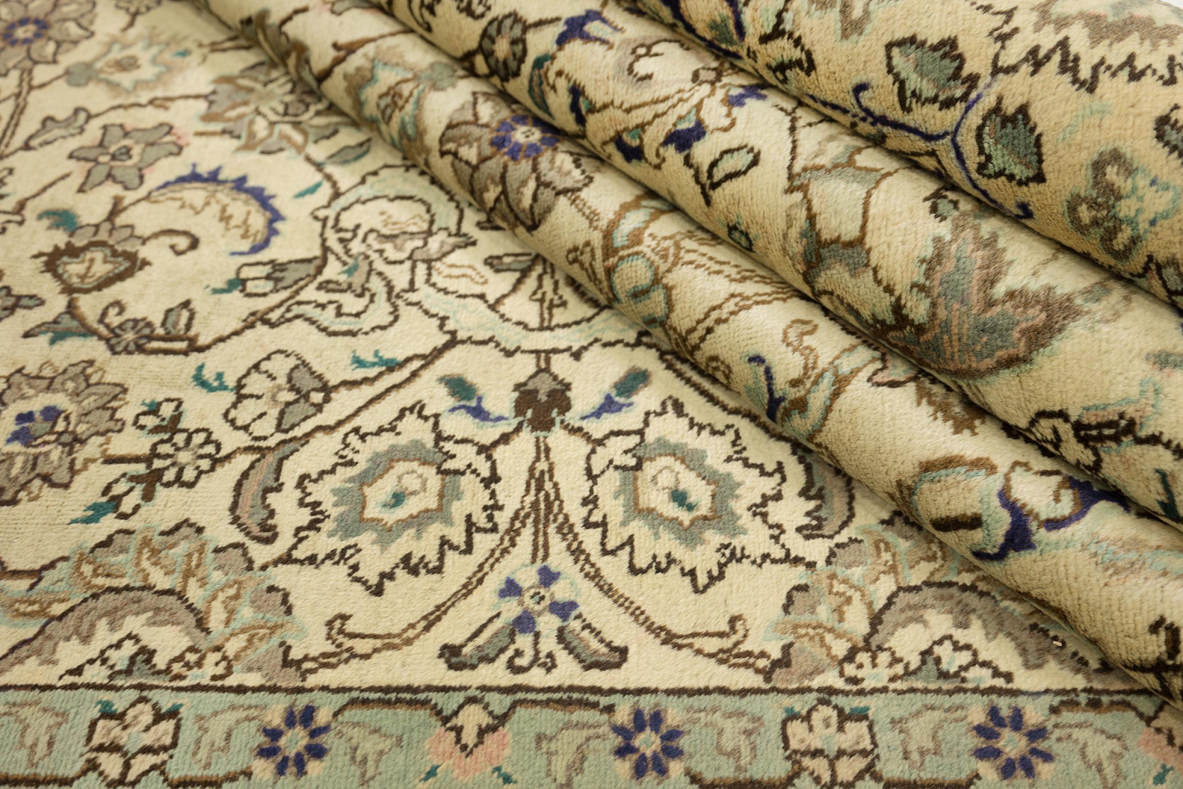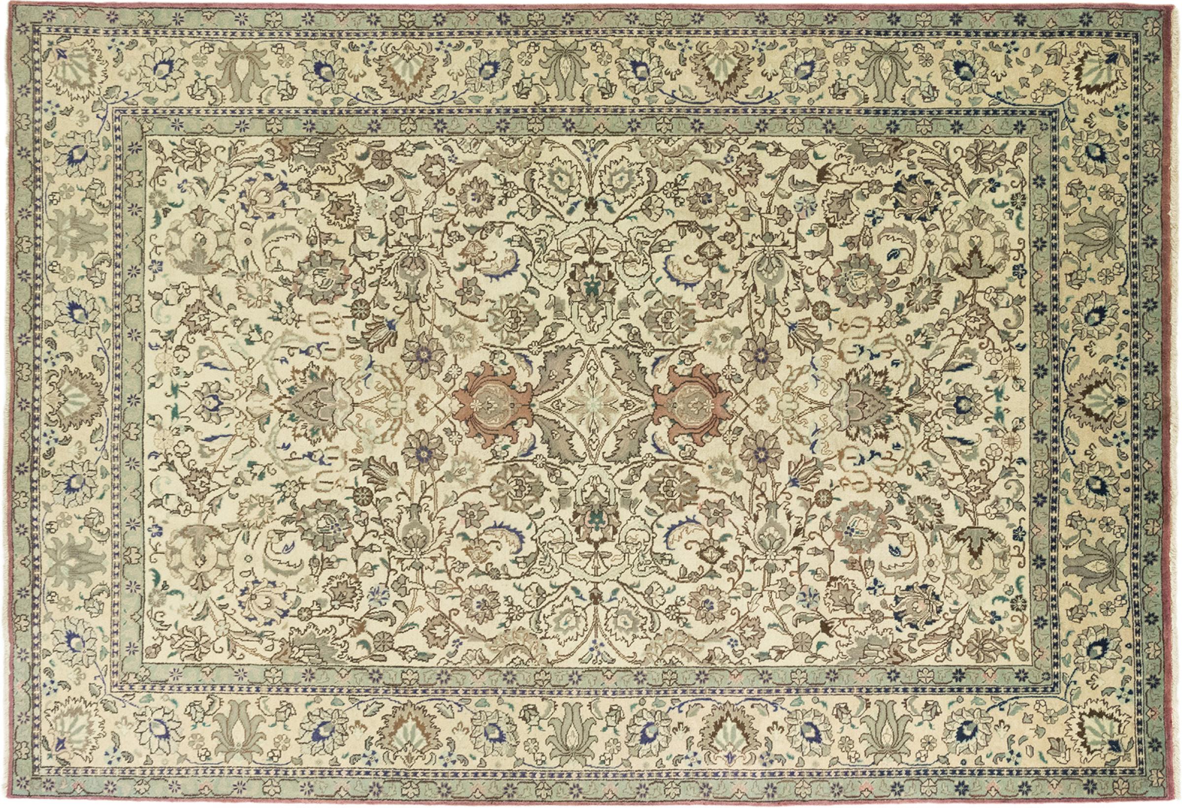 Esta Tabriz se anudó a mano en un pequeño pueblo de los alrededores de la ciudad de Tabriz. Posee la extraordinaria calidad que se conoce de las buenas alfombras persas Tabriz. Al mismo tiempo, tiene un carácter único de origen.
