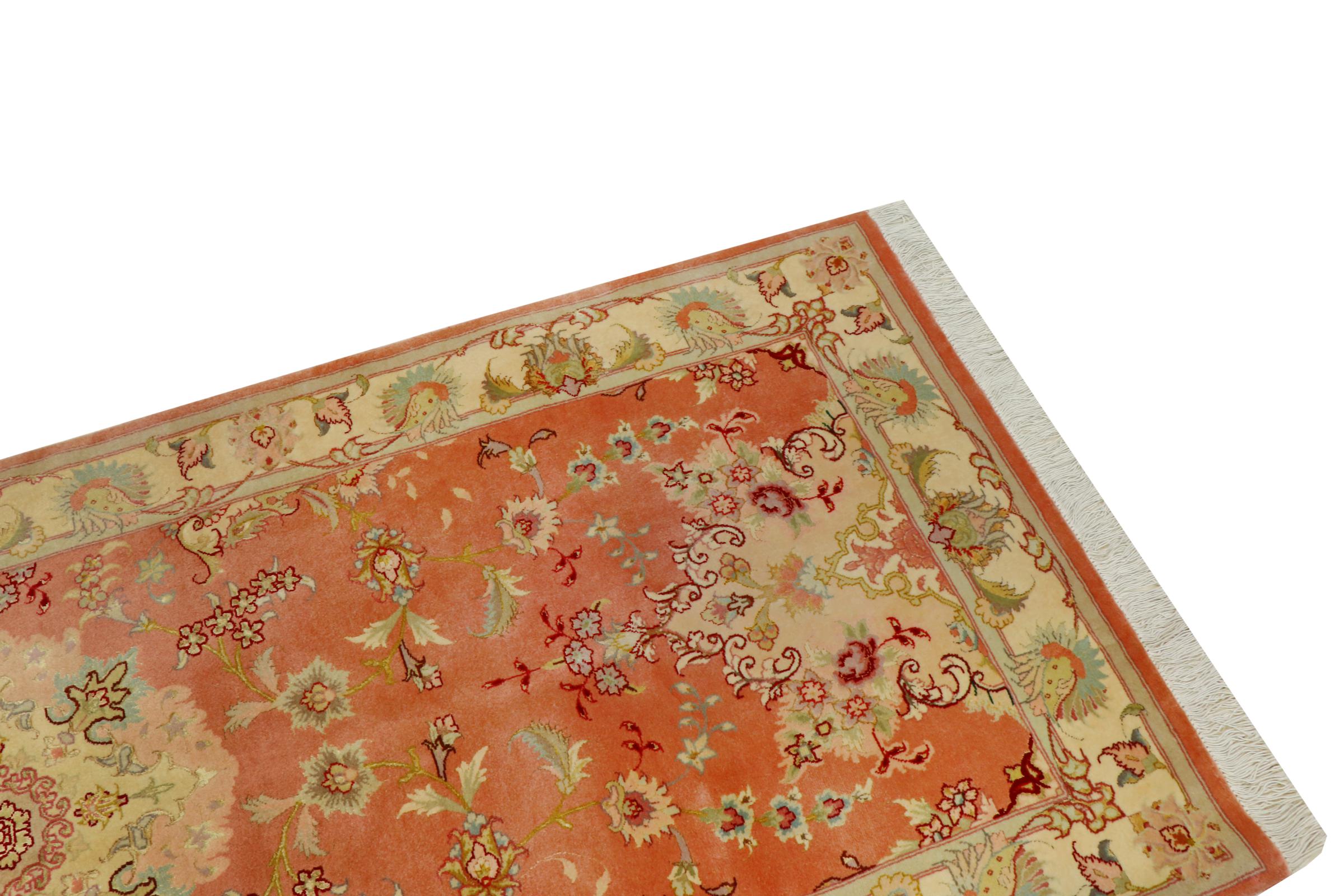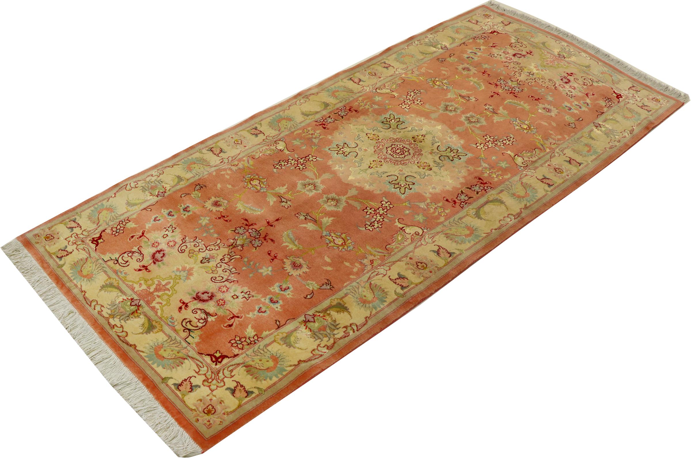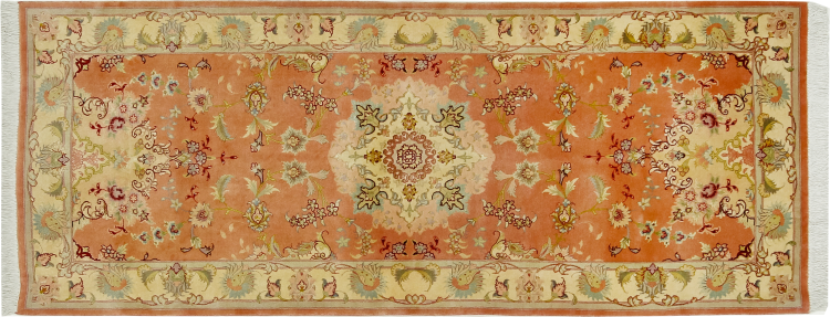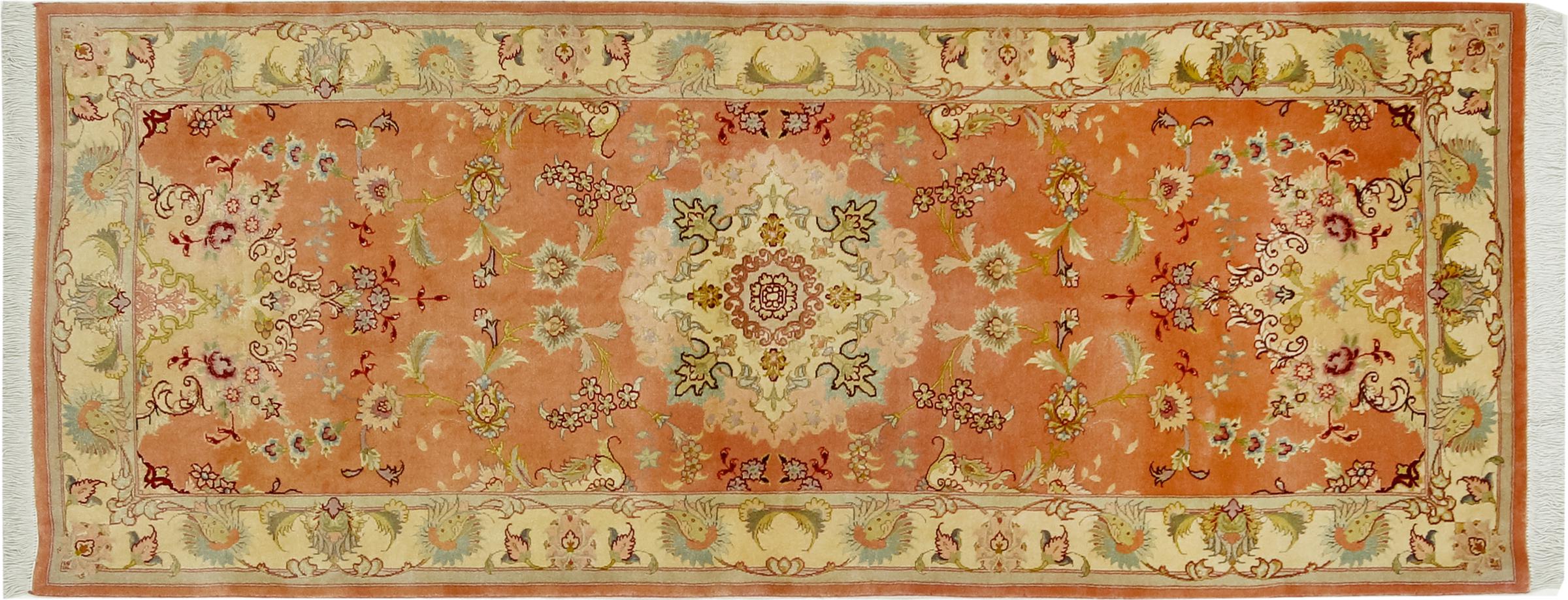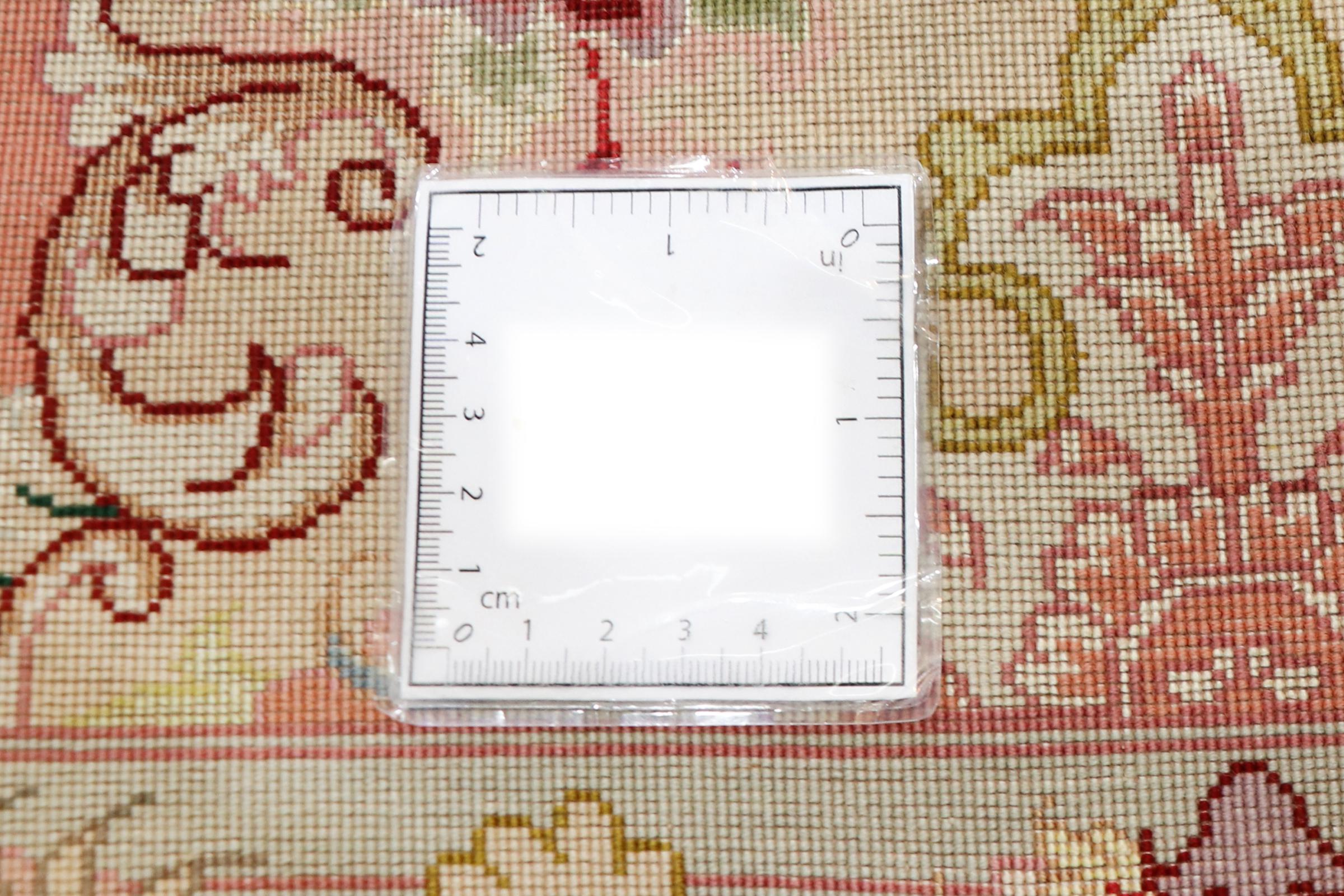 Este Tabriz se anudó a mano en el noroeste de Irán, en la ciudad artesanal y epónima de Tabriz. Sólo se utilizaron lana de alta calidad y seda natural. Con sus motivos y elementos decorativos, refleja Oriente en su forma más bella. Deje que una obra de arte se abra camino en su hogar: Una verdadera atracción para usted y sus invitados. El número Raj indica el número de nudos en una longitud de 7 cm. Por ejemplo, una Tabriz 50Raj tiene más de 500.000 nudos por m2, una 70Raj incluso más de 1.000.000 de nudos por m2.
