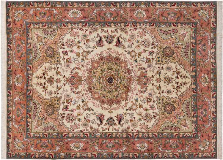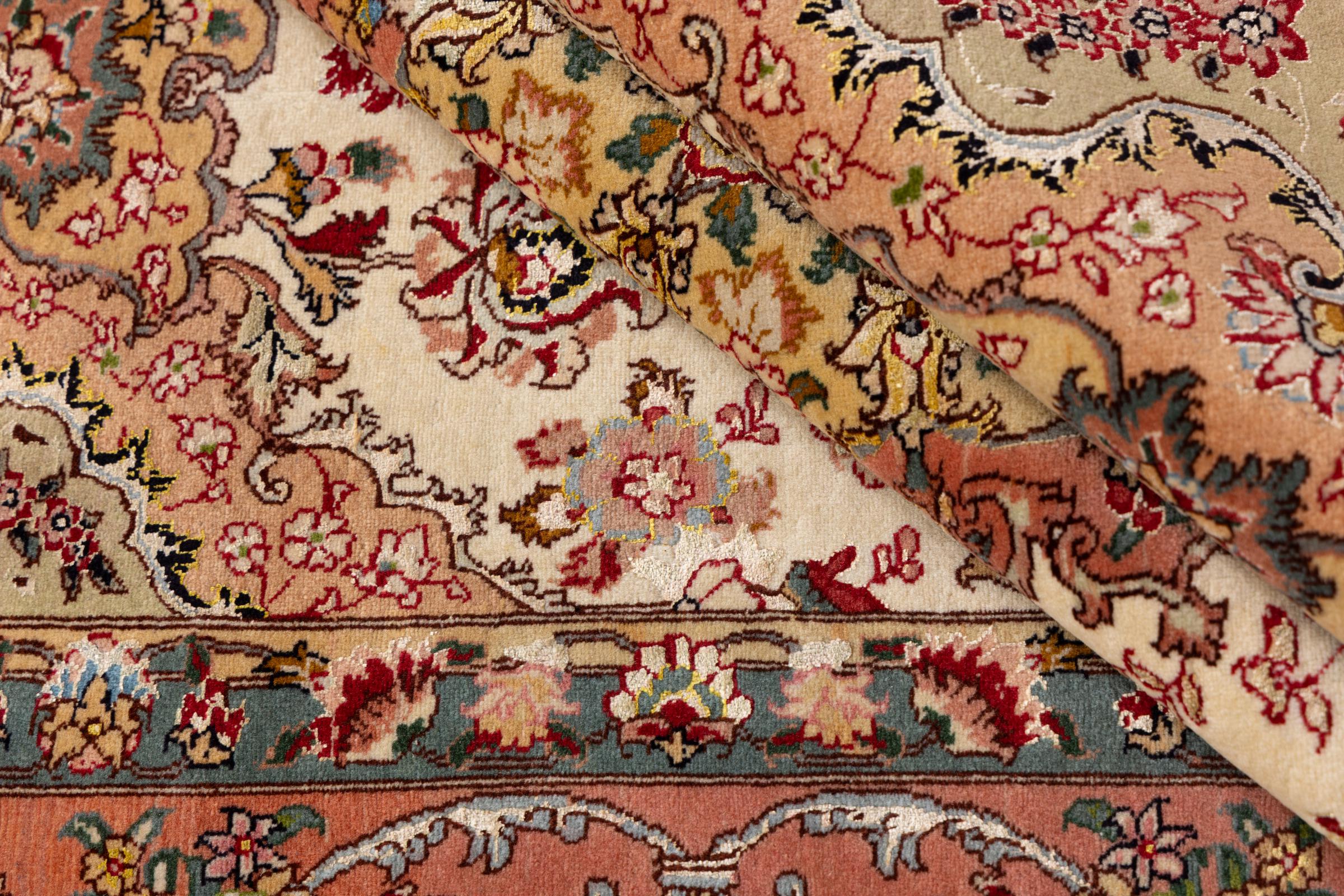 Alfombra número: 298833004768 Tamaño: 204x154 cm Espesor: alrededor de 7 mm Nudos: 440 000 - 490 000 / m² Elaboración: Anudado a mano Crespón: Lana con seda Urdimbre: Algodón Origen: Persia / Iran Edad: Nuevo Peso: alrededor de 9 kg También conocido como Tabriz, Tabris, Täbris, Tebriz, Tebris, 40Raj, 50Raj Cantidad en stock: Única - Solo 1 en stock