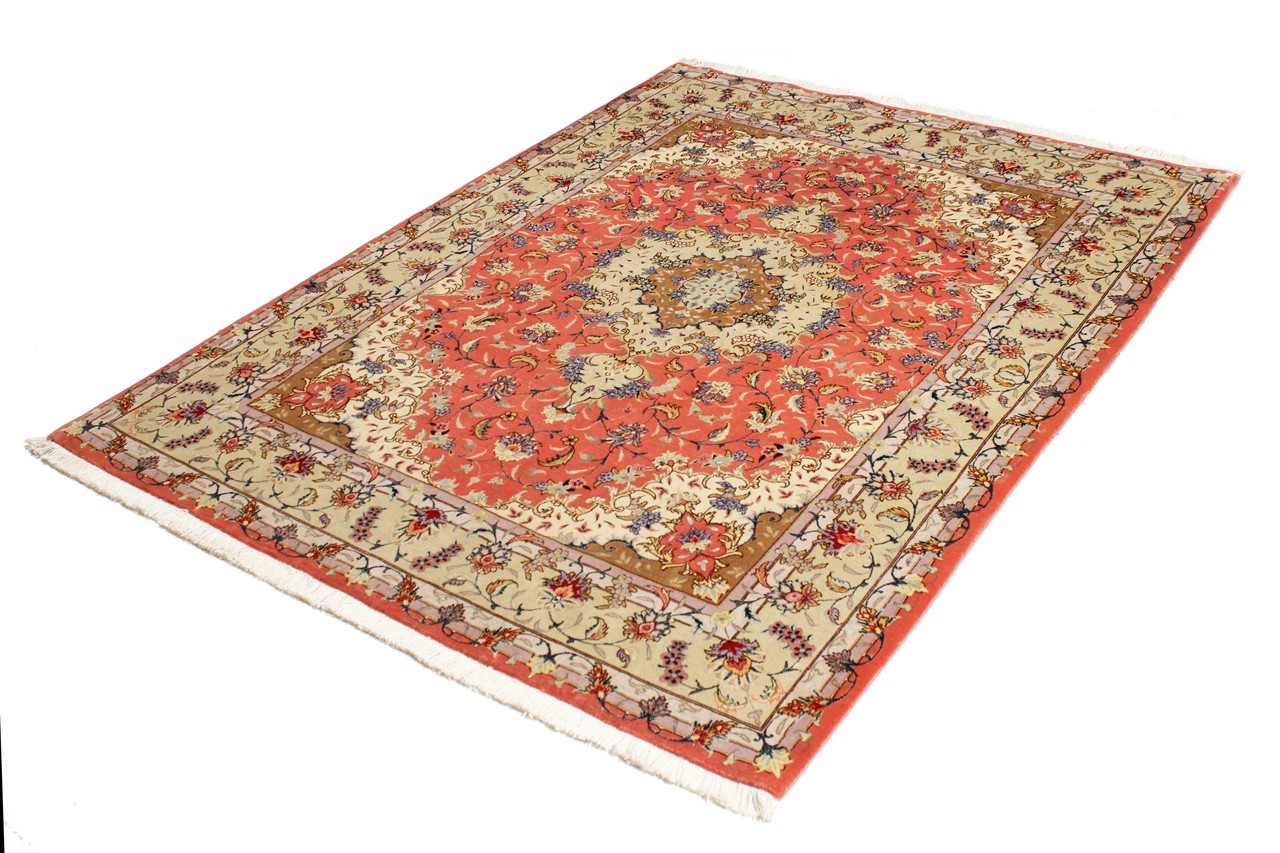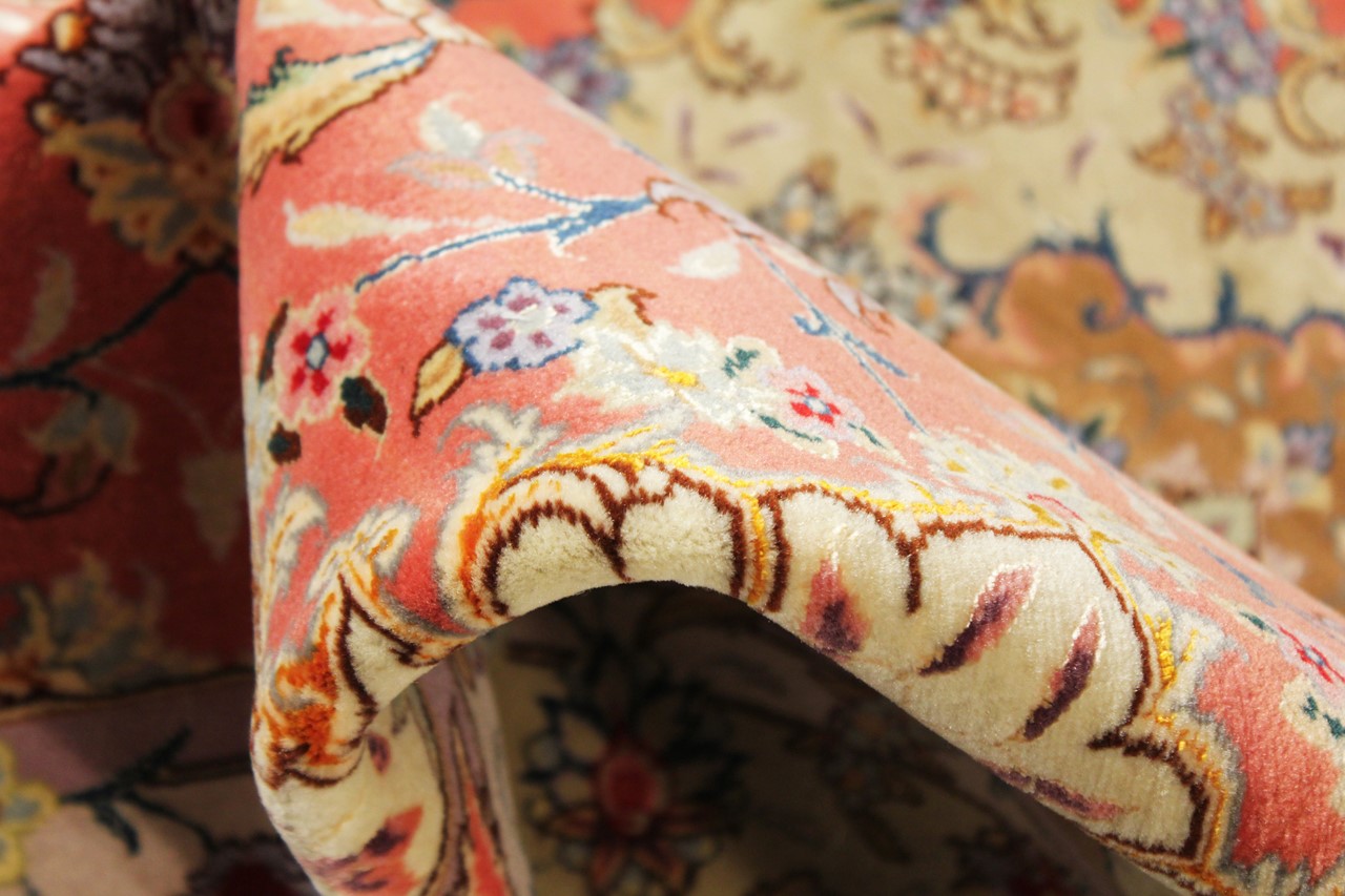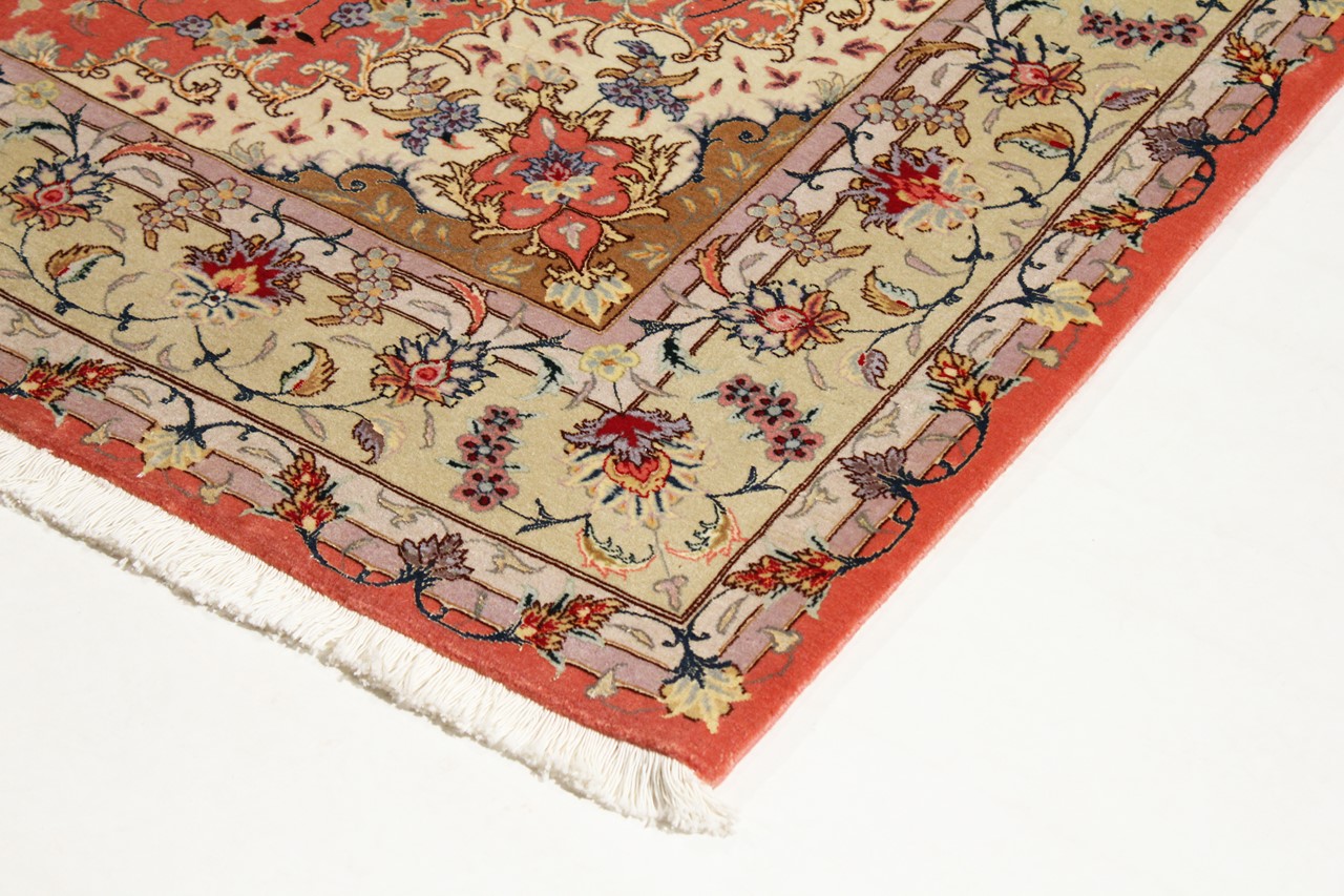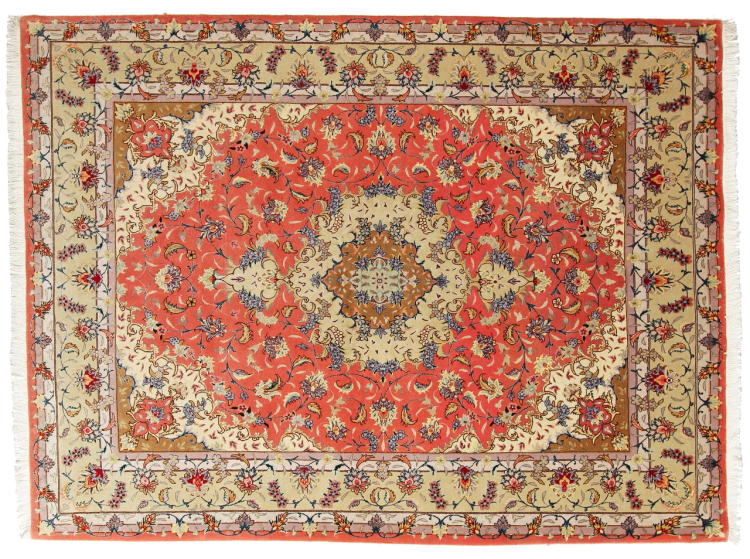 Alfombra número: 67150027290 Tamaño: 207x154 cm Espesor: alrededor de 7 mm Nudos: 450 000 - 500 000 / m² Elaboración: Anudado a mano Crespón: Lana con seda Urdimbre: Algodón Origen: Persia / Iran Edad: Nuevo Peso: alrededor de 10 kg También conocido como Tabriz, Tabris, Täbris, Tebriz, Tebris, 40Raj, 50Raj Cantidad en stock: Única - Solo 1 en stock