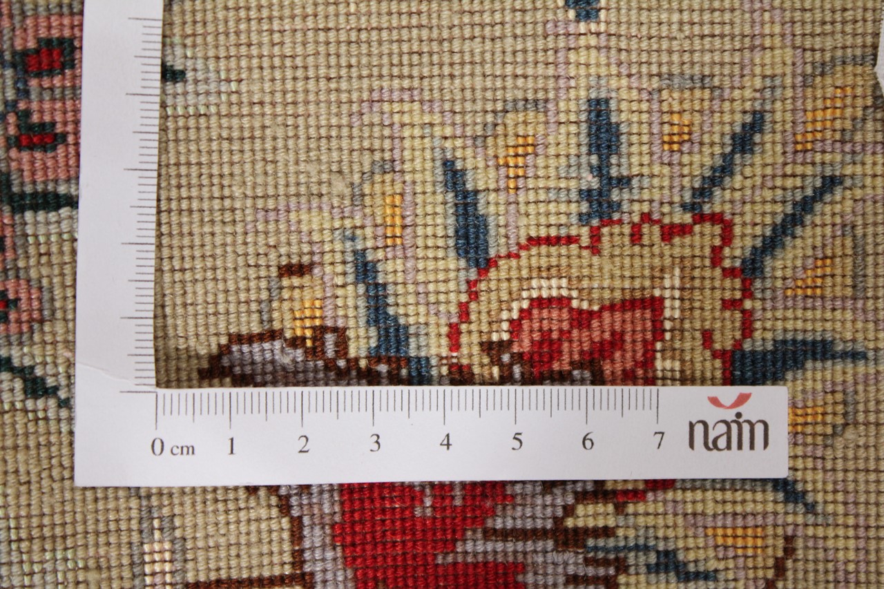 Este Tabriz se anudó a mano en el noroeste de Irán, en la ciudad artesanal y epónima de Tabriz. Sólo se utilizaron lana de alta calidad y seda natural. Con sus motivos y elementos decorativos, refleja Oriente en su forma más bella. Deje que una obra de arte se abra camino en su hogar: Una verdadera atracción para usted y sus invitados. El número Raj indica el número de nudos en una longitud de 7 cm. Una Tabriz 50Raj, por ejemplo, tiene aproximadamente 500.000 nudos por m2, una 70Raj incluso aprox. 1.000.000 de nudos por m2.
