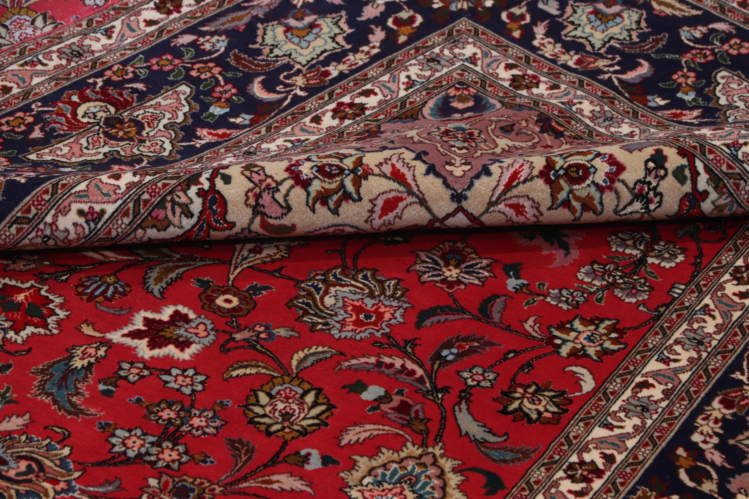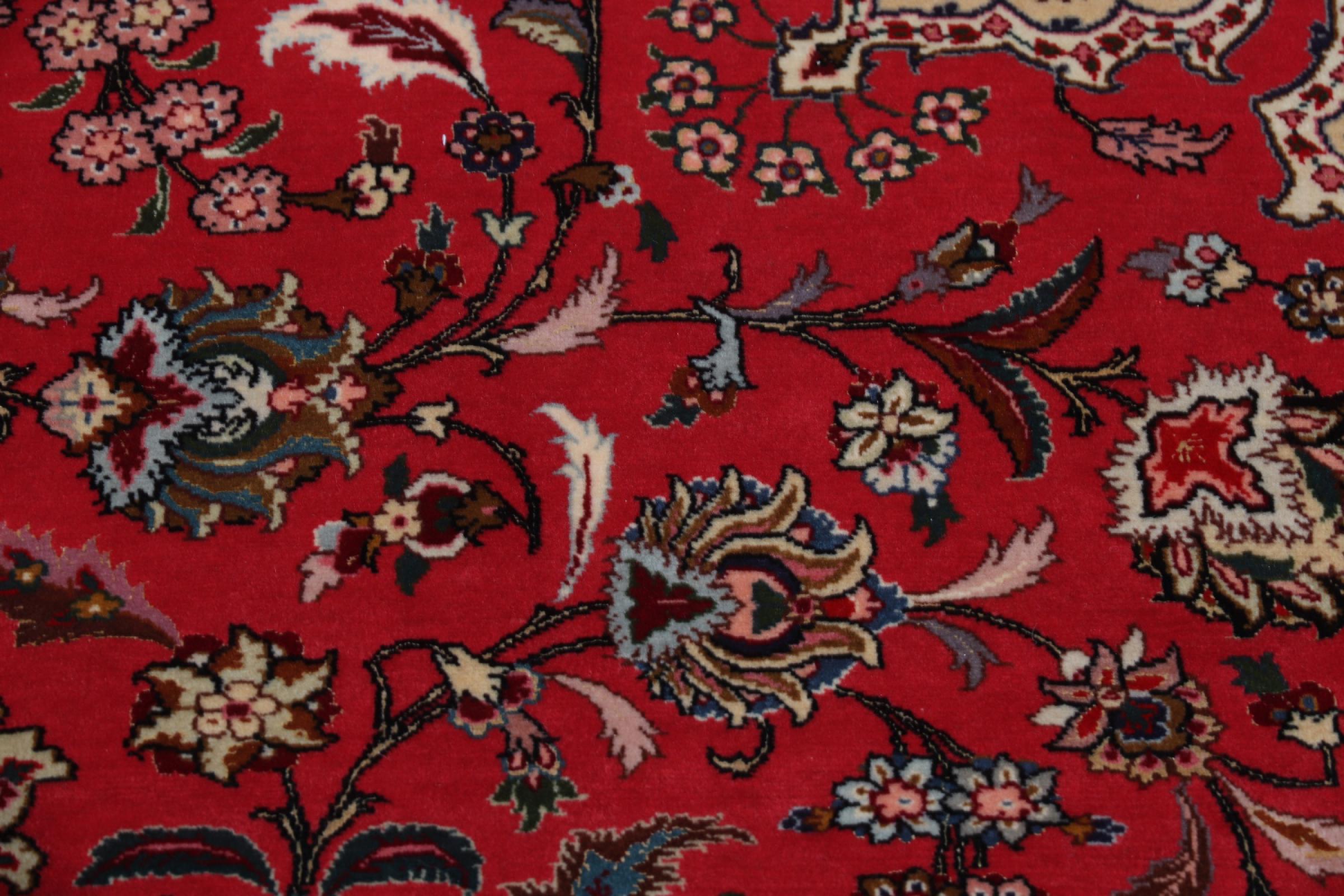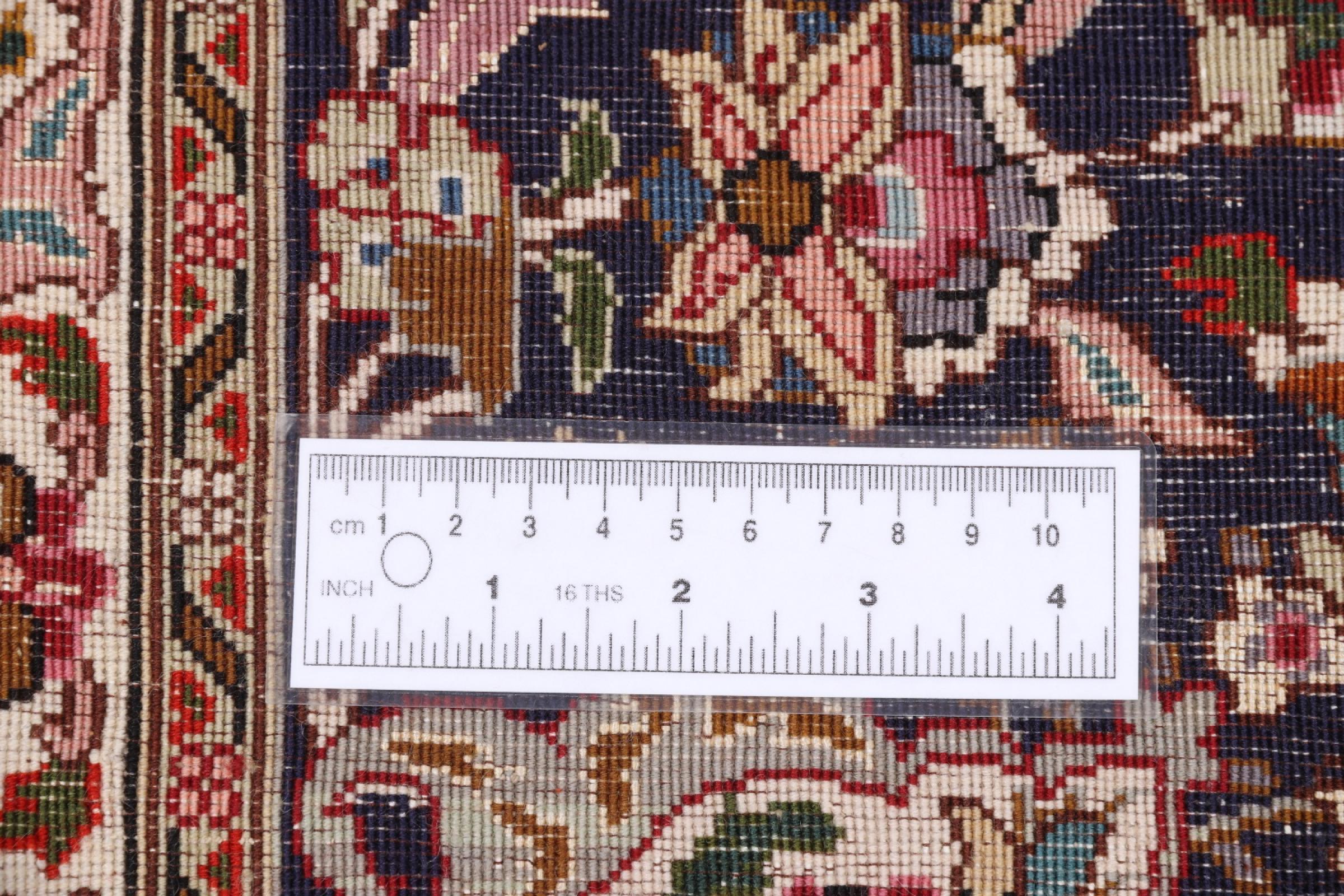 Este Tabriz se anudó a mano en el noroeste de Irán, en la ciudad artesanal y epónima de Tabriz. Sólo se utilizaron lana de alta calidad y seda natural. Con sus motivos y elementos decorativos, refleja Oriente en su forma más bella. Deje que una obra de arte se abra camino en su hogar: Una verdadera atracción para usted y sus invitados. El número Raj indica el número de nudos en una longitud de 7 cm. Una Tabriz 50Raj, por ejemplo, tiene aproximadamente 500.000 nudos por m2, una 70Raj incluso aprox. 1.000.000 de nudos por m2.