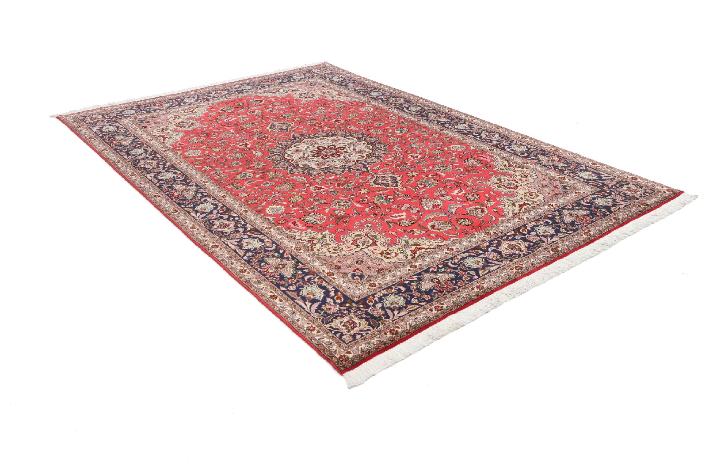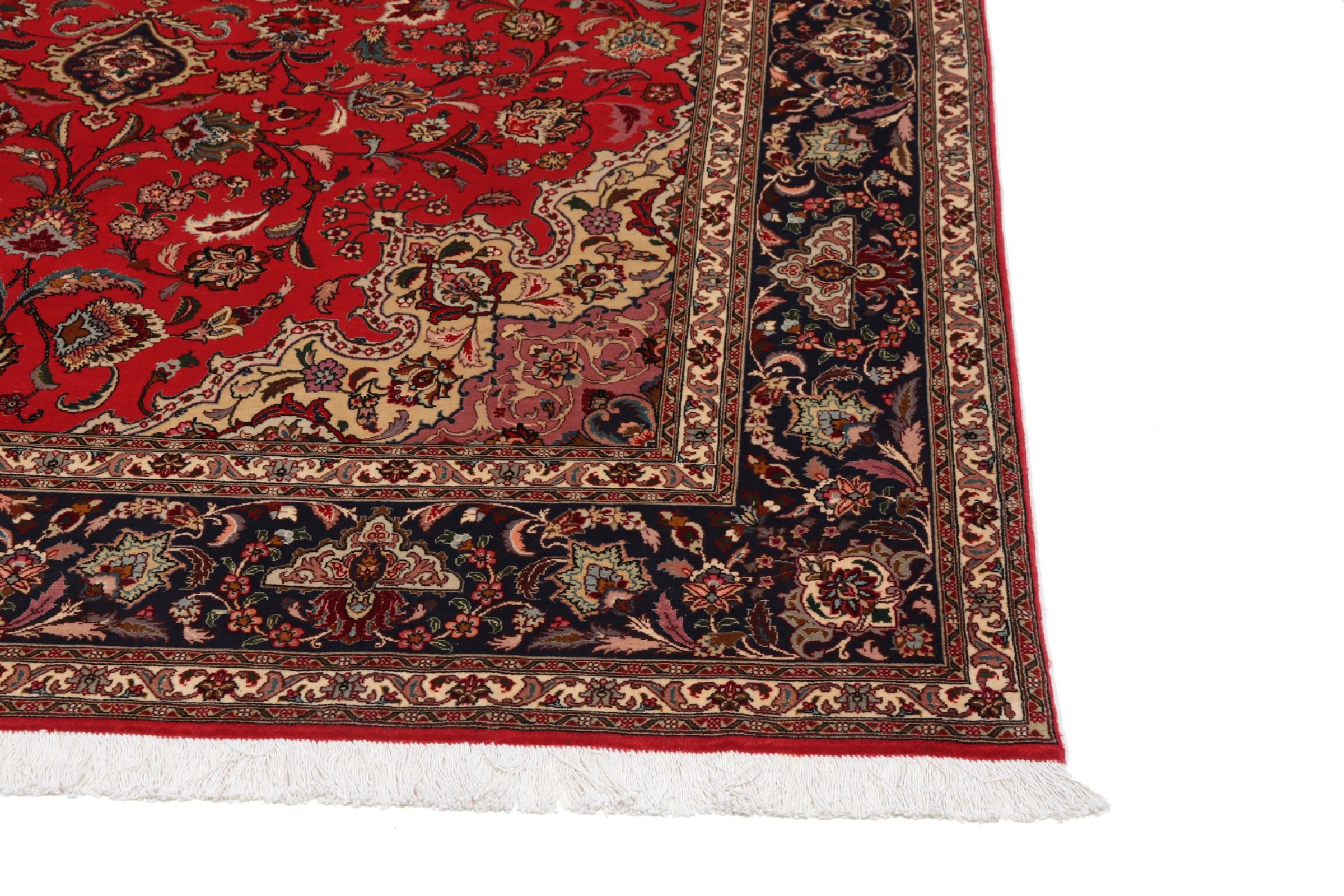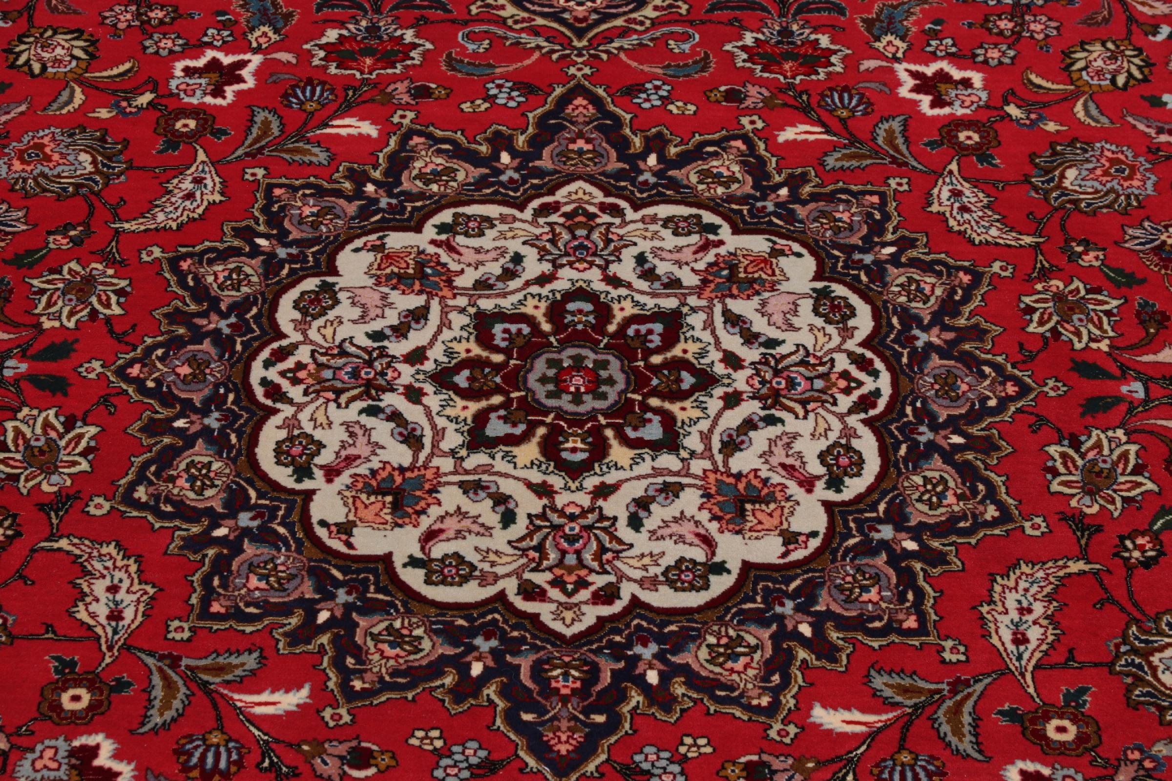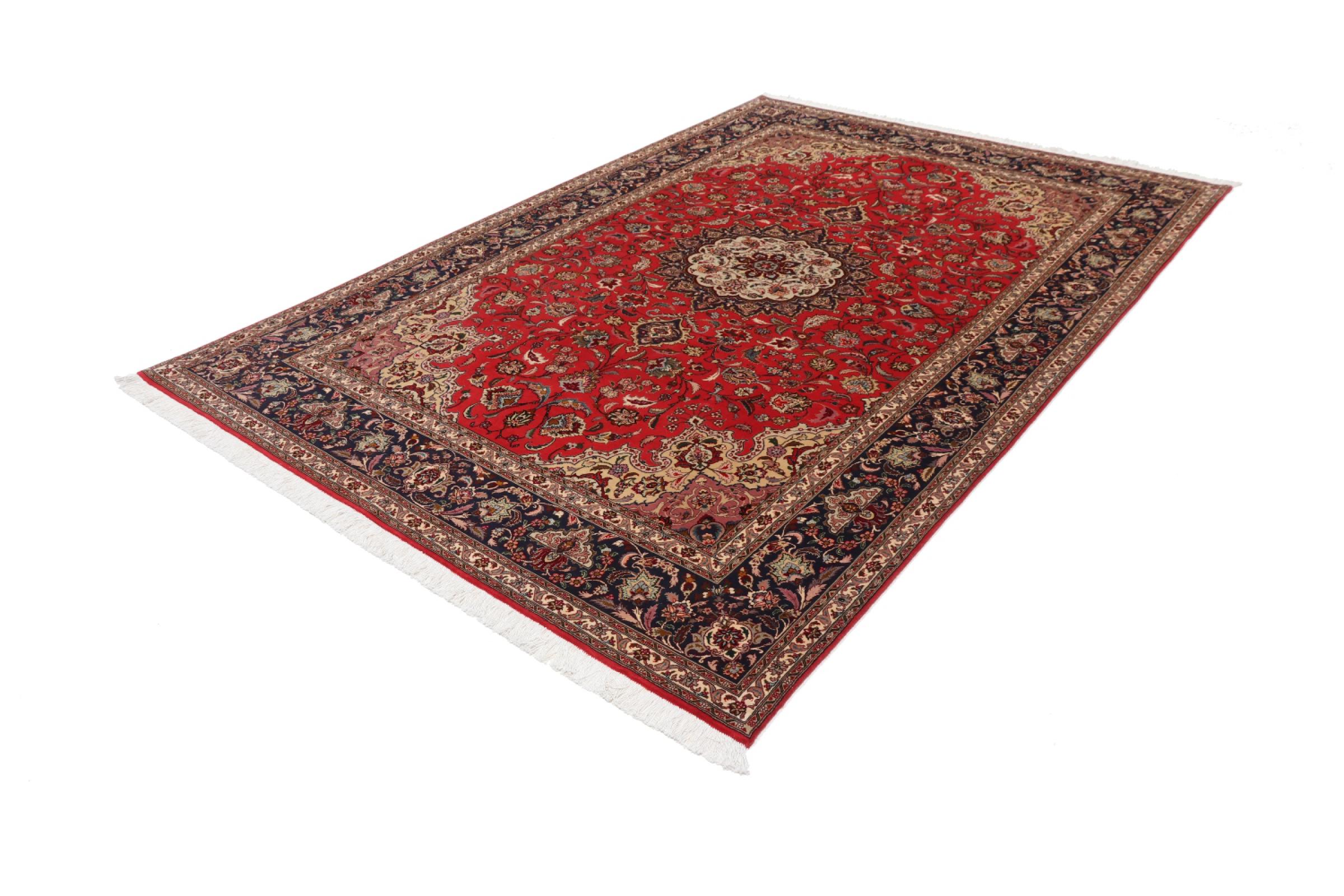 Este Tabriz se anudó a mano en el noroeste de Irán, en la ciudad artesanal y epónima de Tabriz. Sólo se utilizaron lana de alta calidad y seda natural. Con sus motivos y elementos decorativos, refleja Oriente en su forma más bella. Deje que una obra de arte se abra camino en su hogar: Una verdadera atracción para usted y sus invitados. El número Raj indica el número de nudos en una longitud de 7 cm. Una Tabriz 50Raj, por ejemplo, tiene aproximadamente 500.000 nudos por m2, una 70Raj incluso aprox. 1.000.000 de nudos por m2.