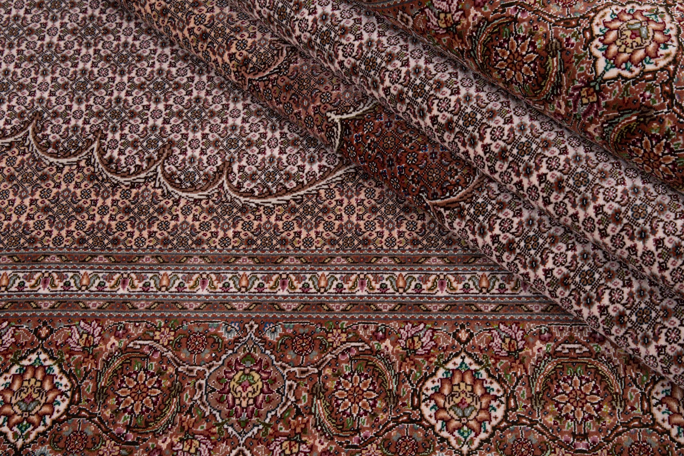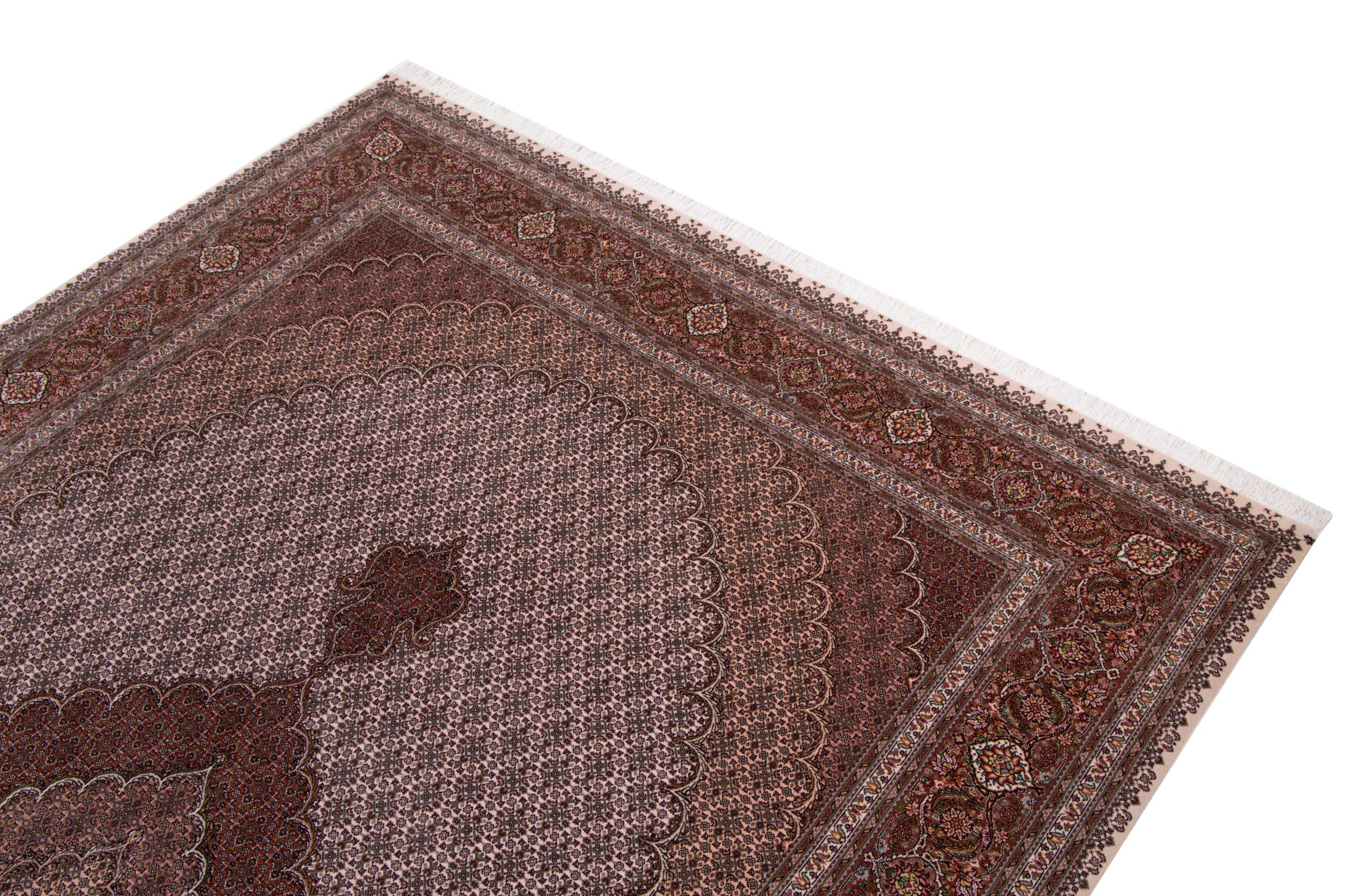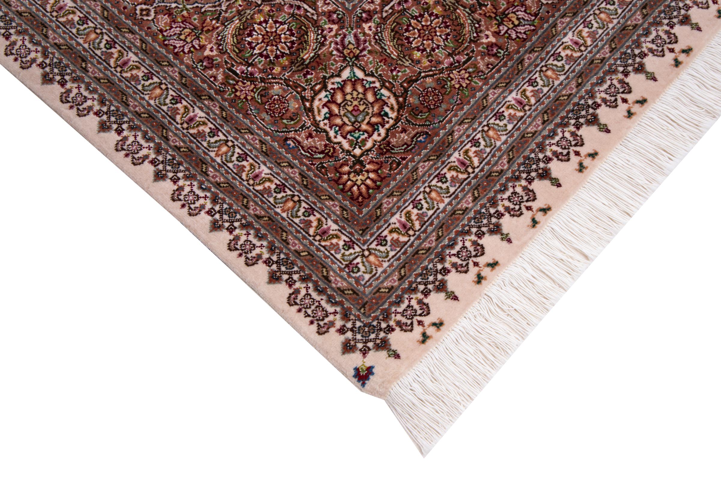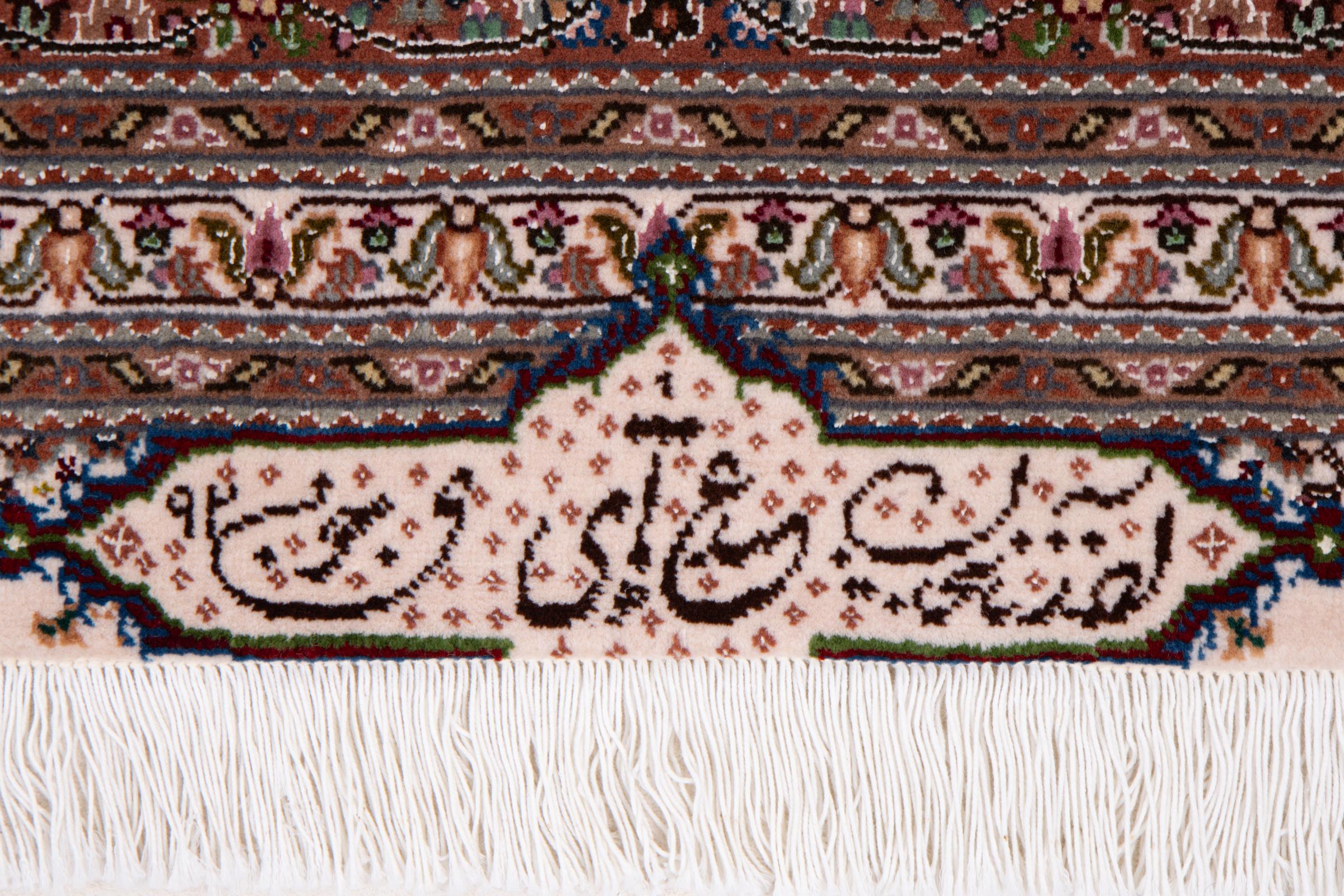 Este Tabriz se anudó a mano en el noroeste de Irán, en la ciudad artesanal y epónima de Tabriz. Sólo se utilizaron lana de alta calidad y seda natural. Con sus motivos y elementos decorativos, refleja Oriente en su forma más bella. Deje que una obra de arte se abra camino en su hogar: Una verdadera atracción para usted y sus invitados. El número Raj indica el número de nudos en una longitud de 7 cm. Una Tabriz 50Raj, por ejemplo, tiene aproximadamente 500.000 nudos por m2, una 70Raj incluso aprox. 1.000.000 de nudos por m2.