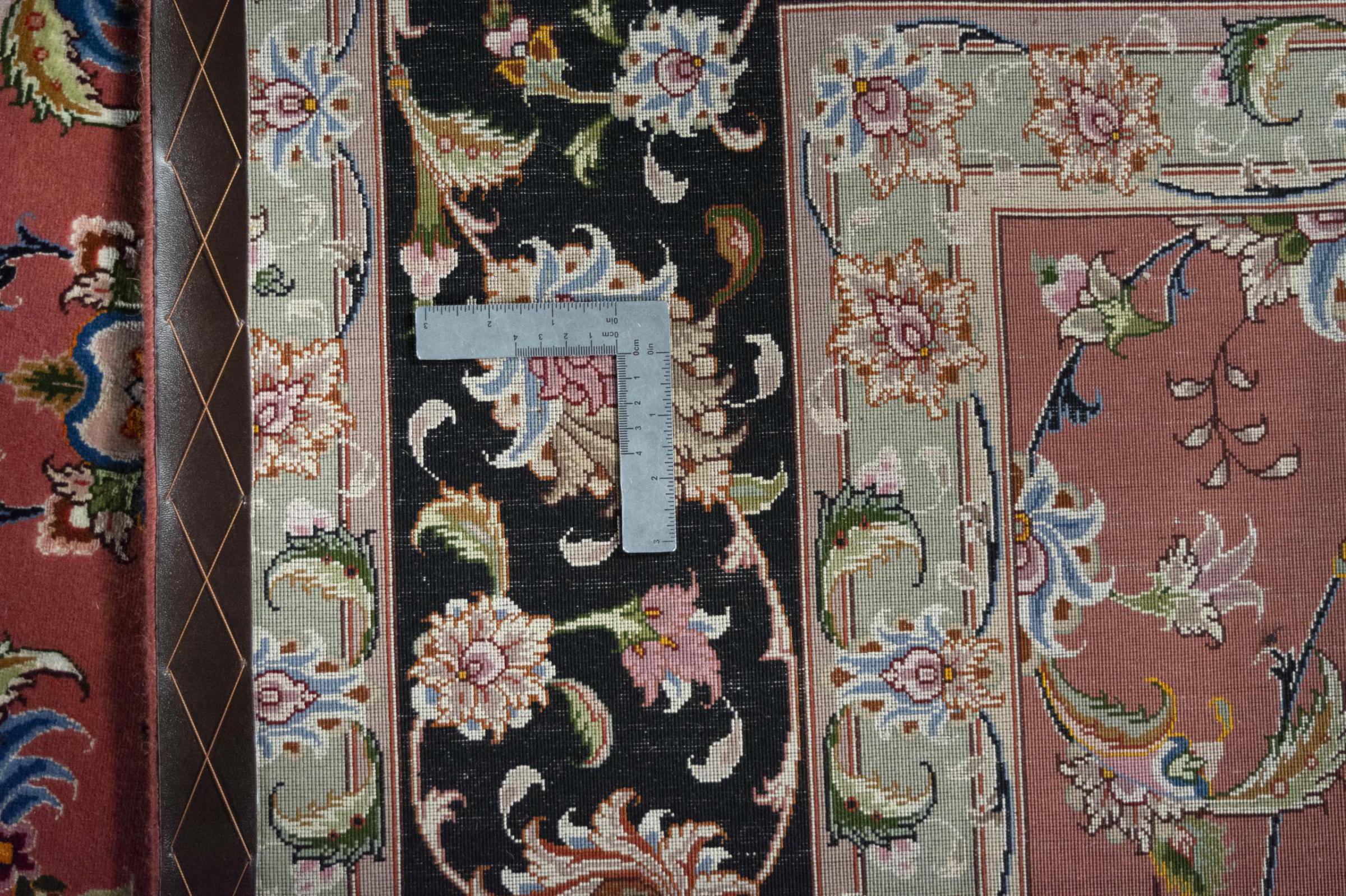 Alfombra número: 233418001736965 Tamaño: 309x204 cm Espesor: alrededor de 8 mm Nudos: 450 000 - 500 000 / m² Elaboración: Anudado a mano Crespón: Lana con seda Urdimbre: Algodón Origen: Persia / Iran Edad: Nuevo Peso: alrededor de 19 kg También conocido como Tabriz, Tabris, Täbris, Tebriz, Tebris, 40Raj, 50Raj Cantidad en stock: Única - Solo 1 en stock