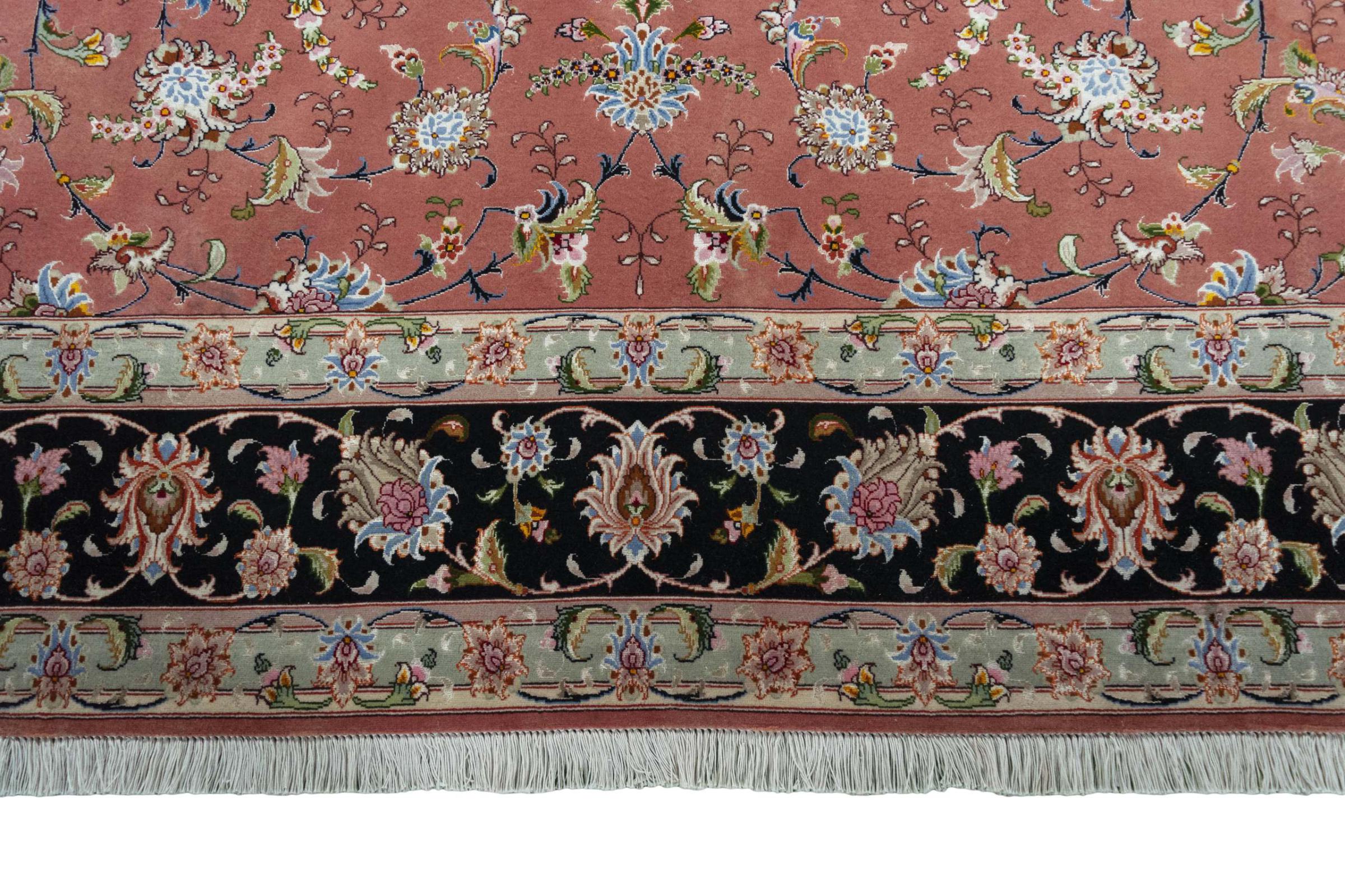 Este Tabriz se anudó a mano en el noroeste de Irán, en la ciudad artesanal y epónima de Tabriz. Sólo se utilizaron lana de alta calidad y seda natural. Con sus motivos y elementos decorativos, refleja Oriente en su forma más bella. Deje que una obra de arte se abra camino en su hogar: Una verdadera atracción para usted y sus invitados. El número Raj indica el número de nudos en una longitud de 7 cm. Una Tabriz 50Raj, por ejemplo, tiene aproximadamente 500.000 nudos por m2, una 70Raj incluso aprox. 1.000.000 de nudos por m2.