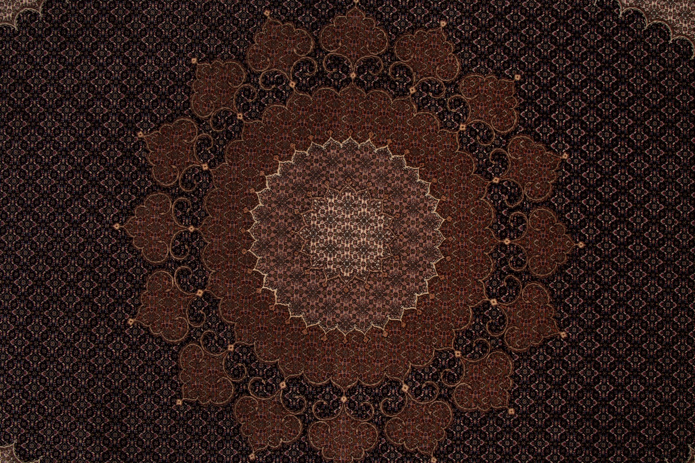 Este Tabriz se anudó a mano en el noroeste de Irán, en la ciudad artesanal y epónima de Tabriz. Sólo se utilizaron lana de alta calidad y seda natural. Con sus motivos y elementos decorativos, refleja Oriente en su forma más bella. Deje que una obra de arte se abra camino en su hogar: Una verdadera atracción para usted y sus invitados. El número Raj indica el número de nudos en una longitud de 7 cm. Una Tabriz 50Raj, por ejemplo, tiene aproximadamente 500.000 nudos por m2, una 70Raj incluso aprox. 1.000.000 de nudos por m2.