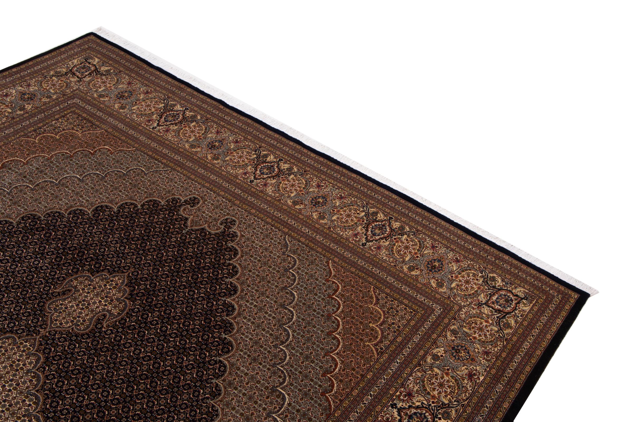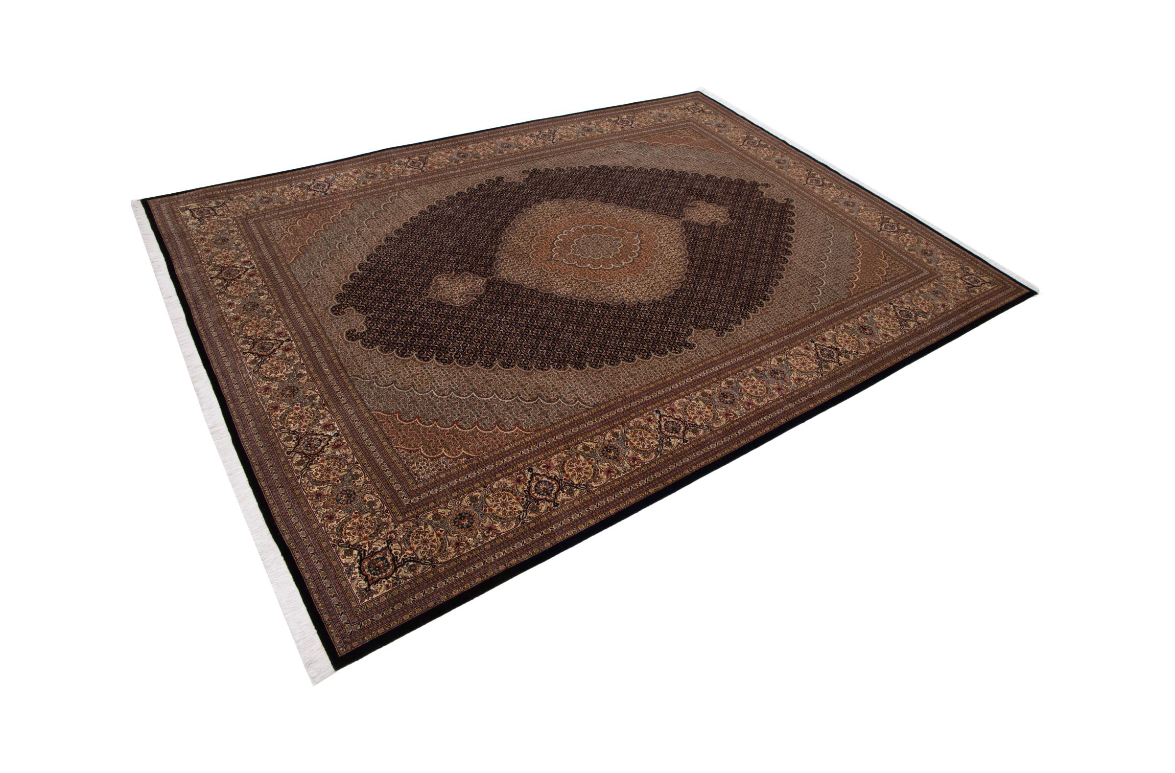 Este Tabriz se anudó a mano en el noroeste de Irán, en la ciudad artesanal y epónima de Tabriz. Sólo se utilizaron lana de alta calidad y seda natural. Con sus motivos y elementos decorativos, refleja Oriente en su forma más bella. Deje que una obra de arte se abra camino en su hogar: Una verdadera atracción para usted y sus invitados. El número Raj indica el número de nudos en una longitud de 7 cm. Una Tabriz 50Raj, por ejemplo, tiene aproximadamente 500.000 nudos por m2, una 70Raj incluso aprox. 1.000.000 de nudos por m2.