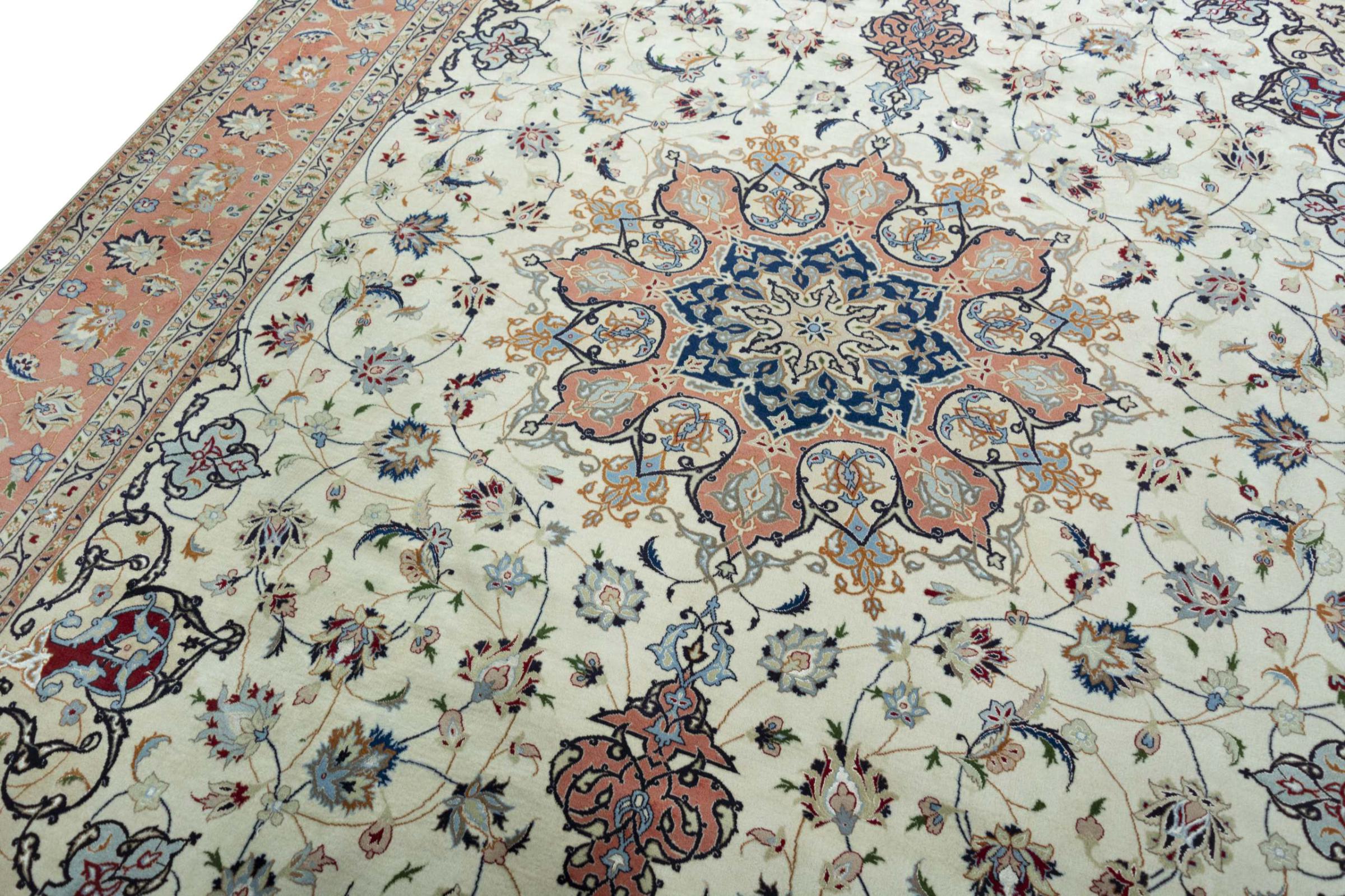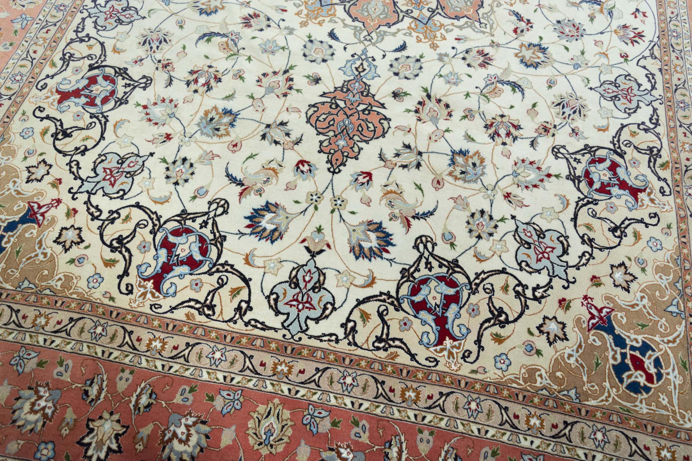 Alfombra número: 250987009768191 Tamaño: 360x249 cm Espesor: alrededor de 7 mm Nudos: 450 000 - 500 000 / m² Elaboración: Anudado a mano Crespón: Lana con seda Urdimbre: Algodón Origen: Persia / Iran Edad: Nuevo Peso: alrededor de 27 kg También conocido como Tabriz, Tabris, Täbris, Tebriz, Tebris, 40Raj, 50Raj Cantidad en stock: Única - Solo 1 en stock