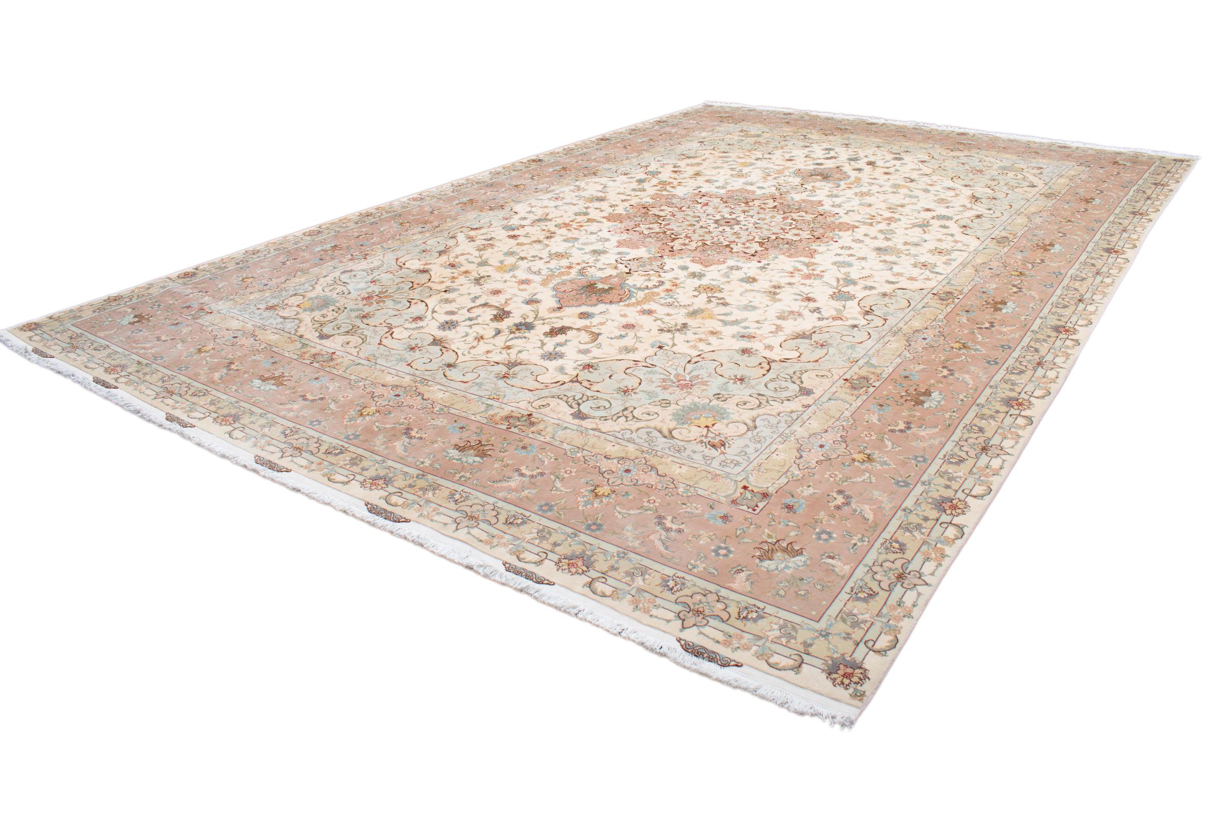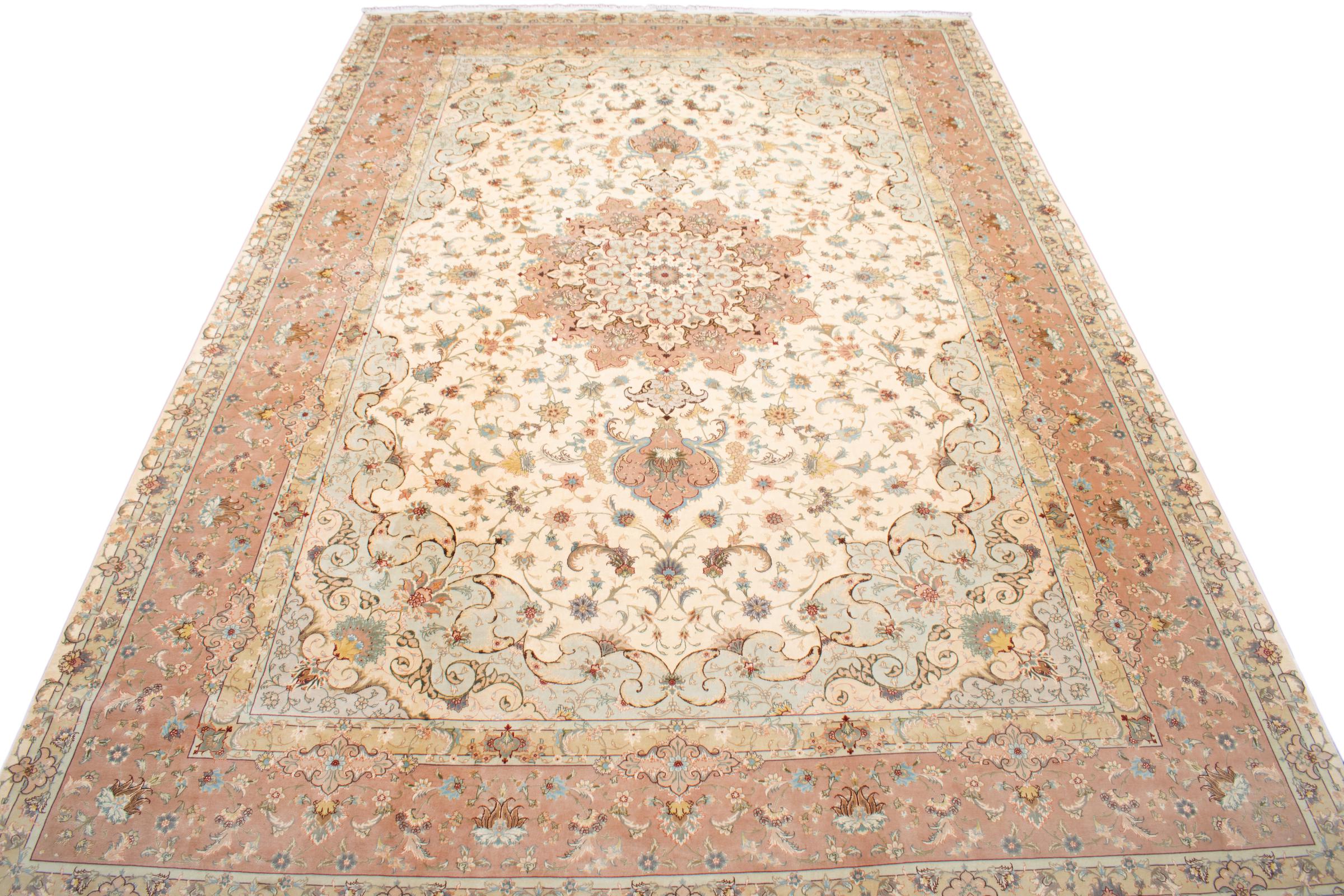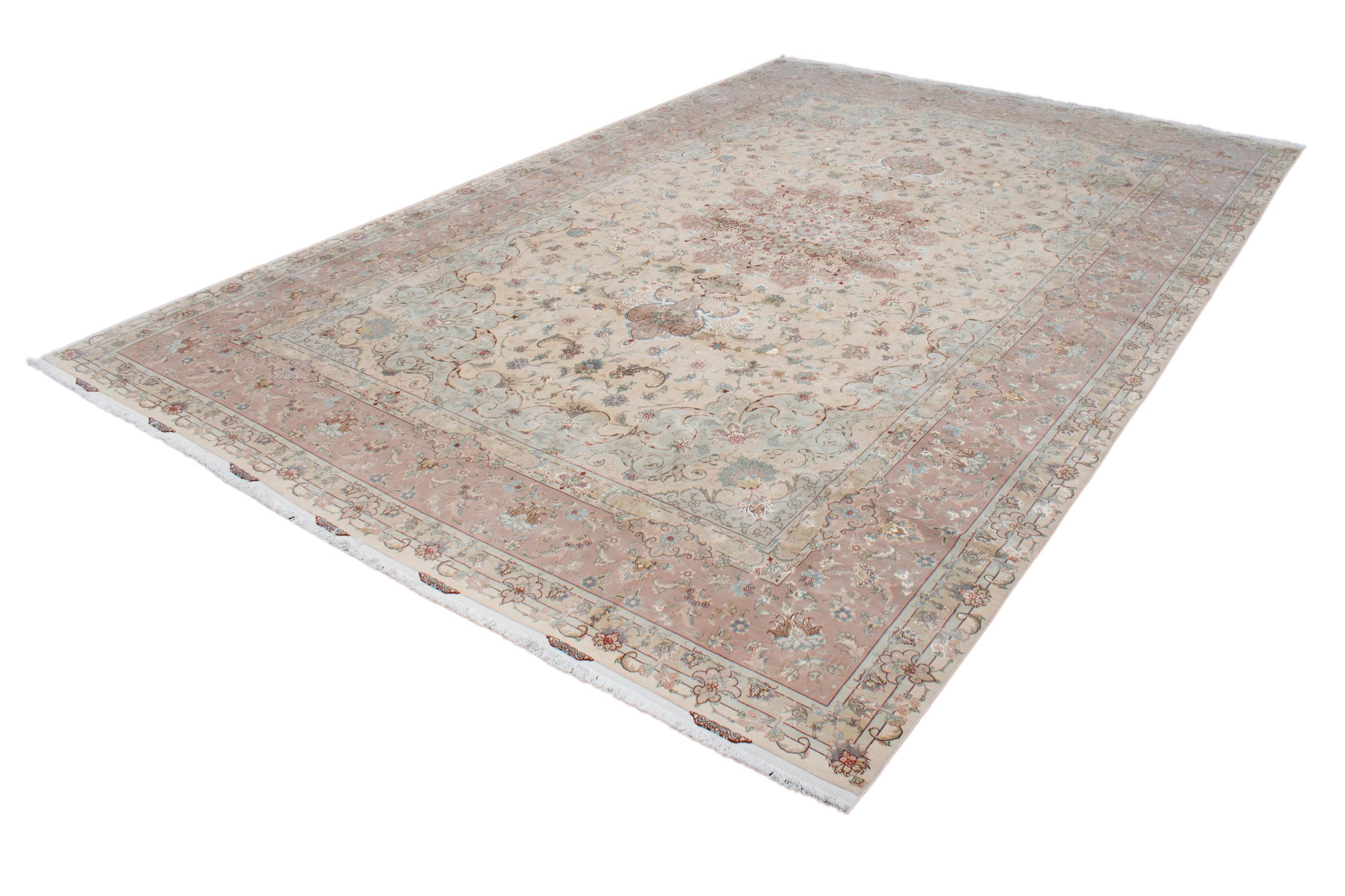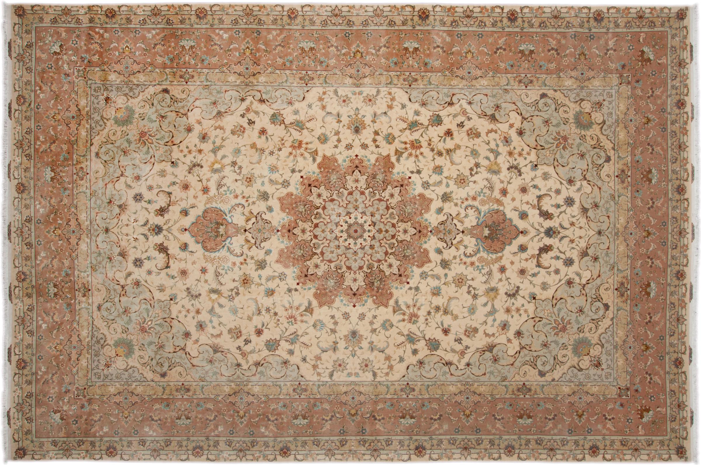 Alfombra número: 311698008100637 Tamaño: 599x395 cm Espesor: alrededor de 8 mm Nudos: 440 000 - 490 000 / m² Elaboración: Anudado a mano Crespón: Lana con seda Urdimbre: Algodón Origen: Persia / Iran Edad: Nuevo Peso: alrededor de 71 kg También conocido como Tabriz, Tabris, Täbris, Tebriz, Tebris, 40Raj, 50Raj Cantidad en stock: Única - Solo 1 en stock