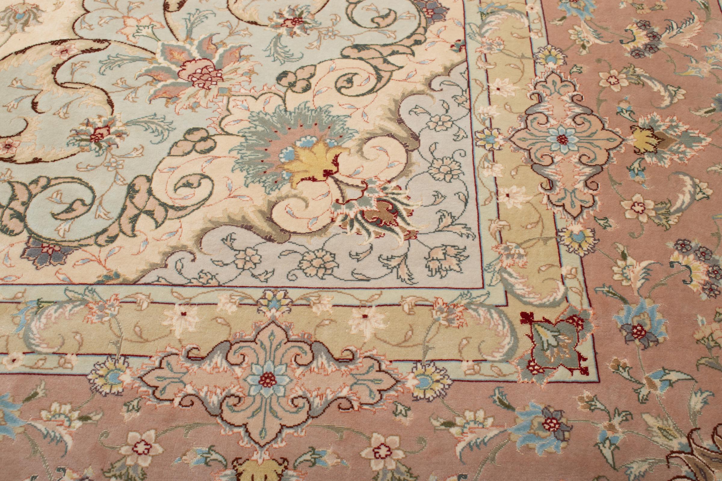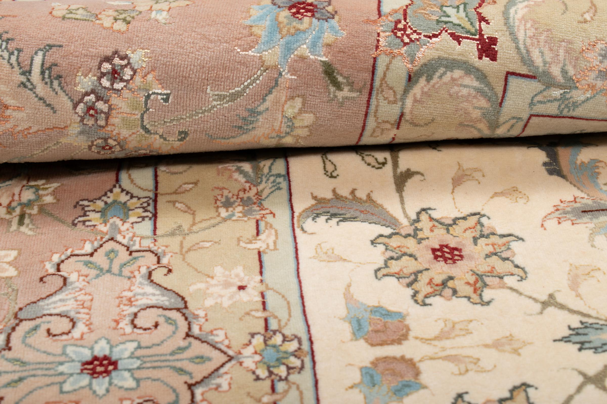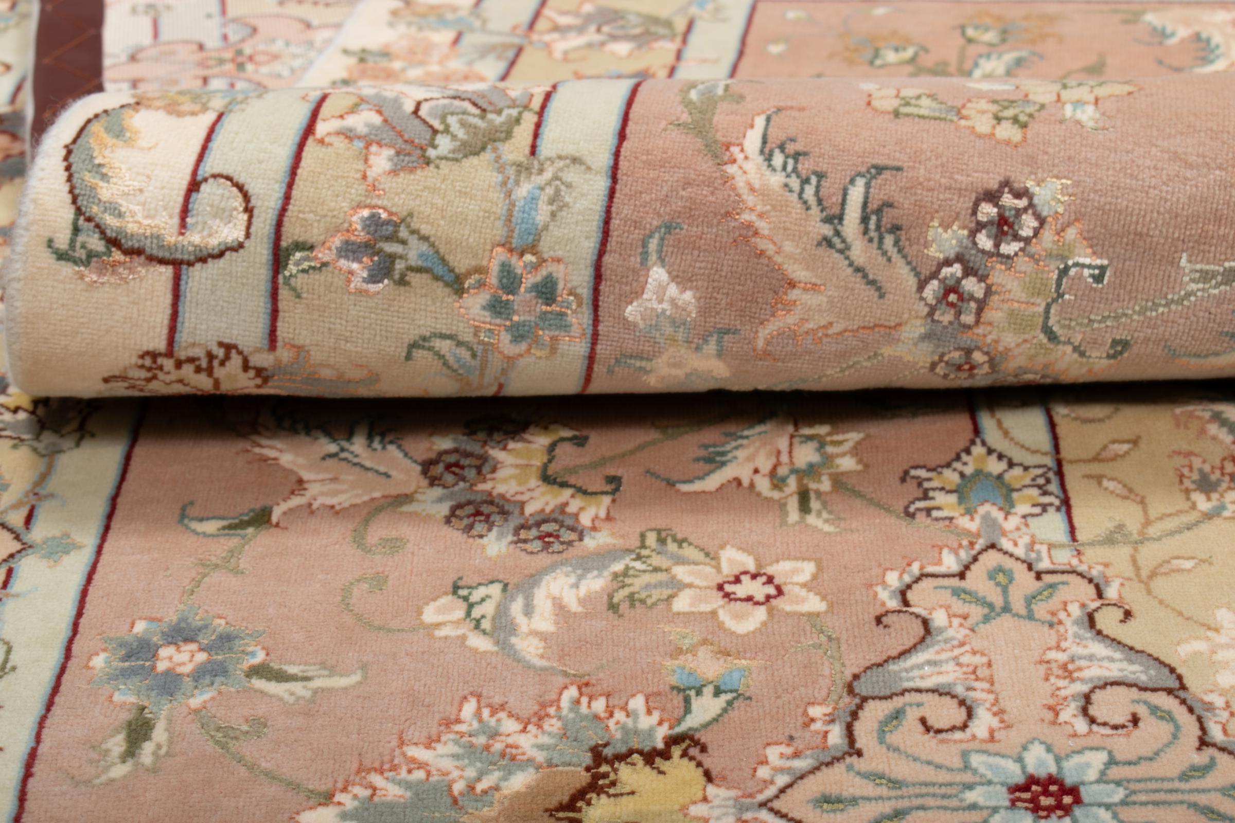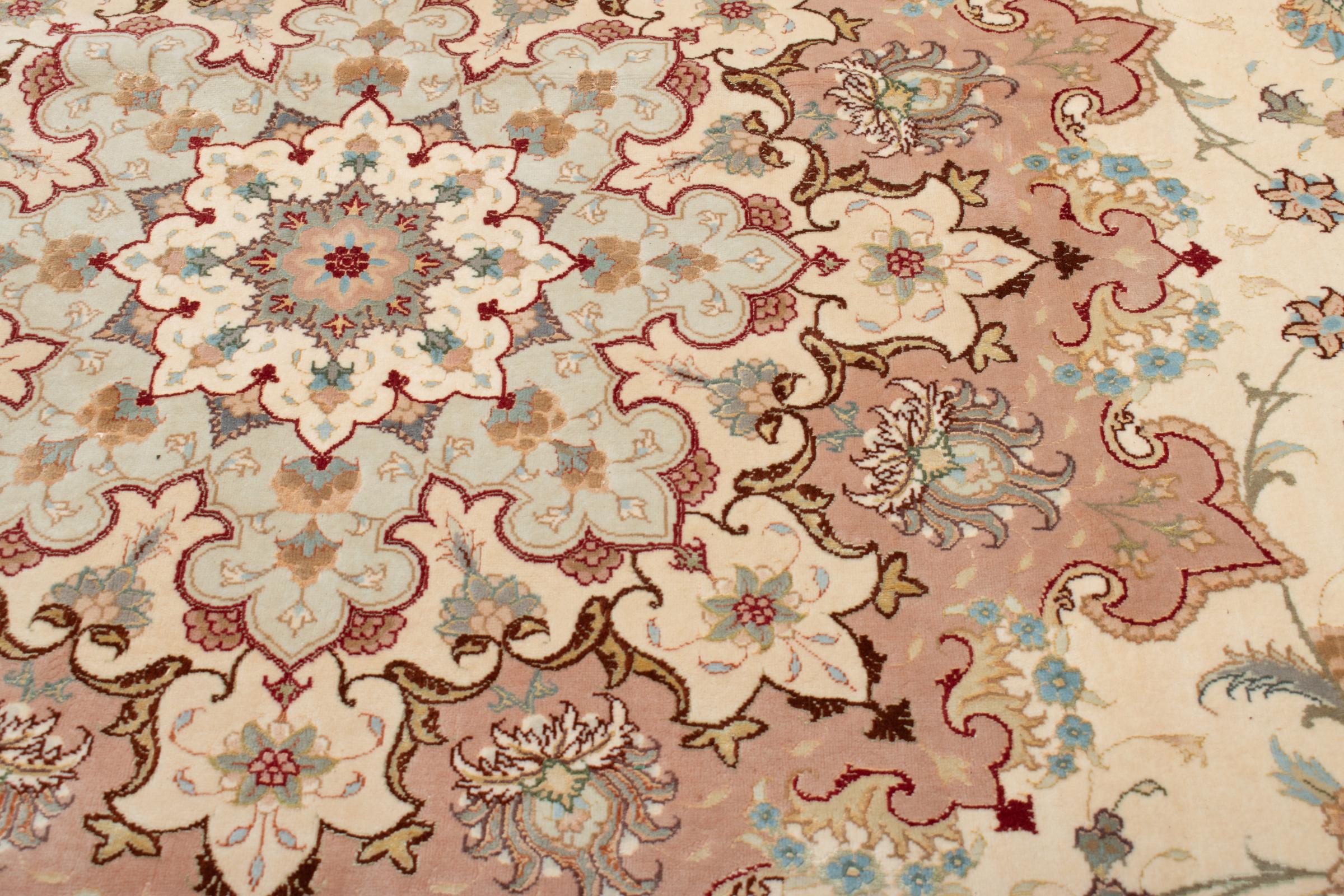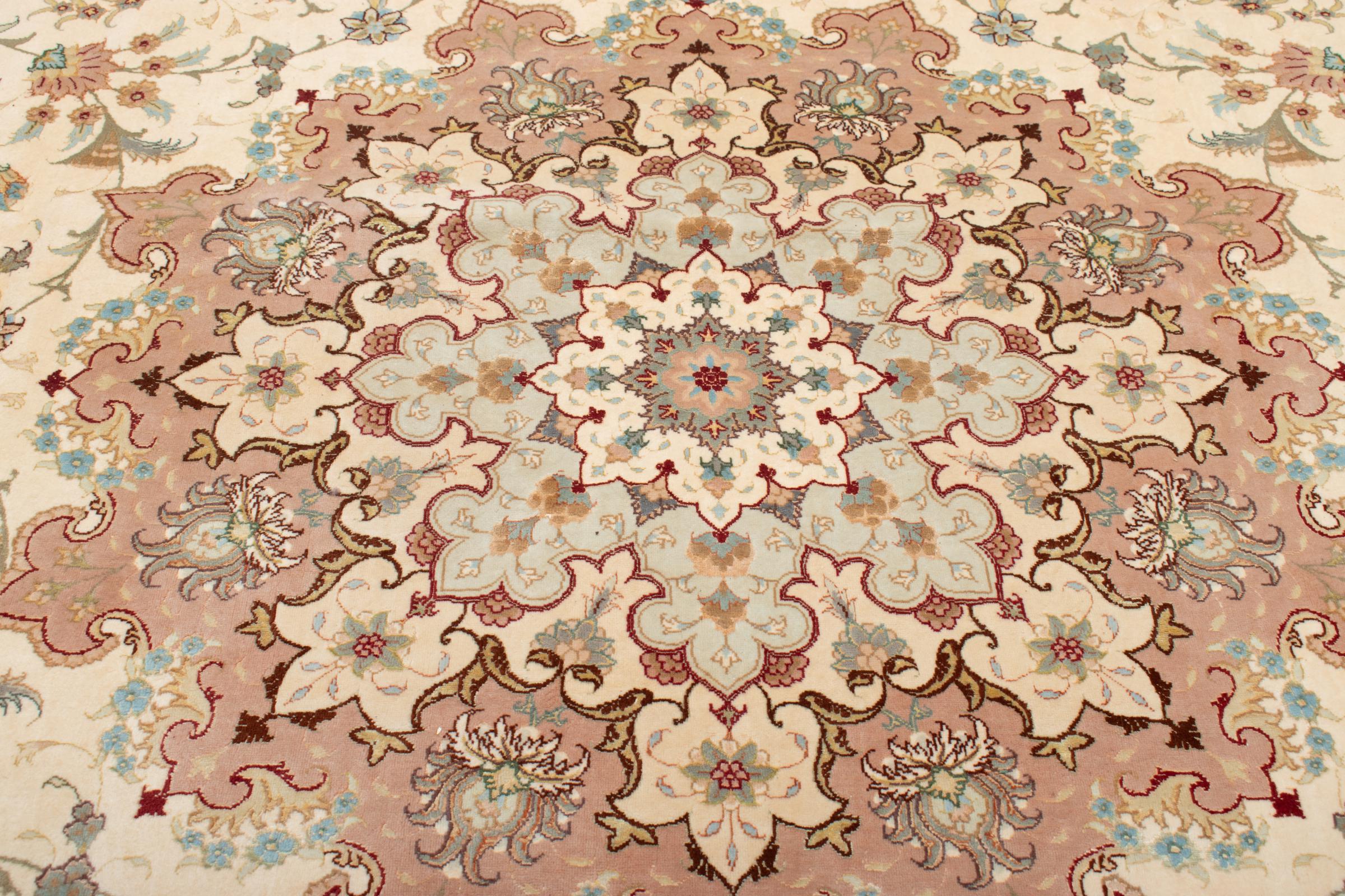 Este Tabriz se anudó a mano en el noroeste de Irán, en la ciudad artesanal y epónima de Tabriz. Sólo se utilizaron lana de alta calidad y seda natural. Con sus motivos y elementos decorativos, refleja Oriente en su forma más bella. Deje que una obra de arte se abra camino en su hogar: Una verdadera atracción para usted y sus invitados. El número Raj indica el número de nudos en una longitud de 7 cm. Una Tabriz 50Raj, por ejemplo, tiene aproximadamente 500.000 nudos por m2, una 70Raj incluso aprox. 1.000.000 de nudos por m2.