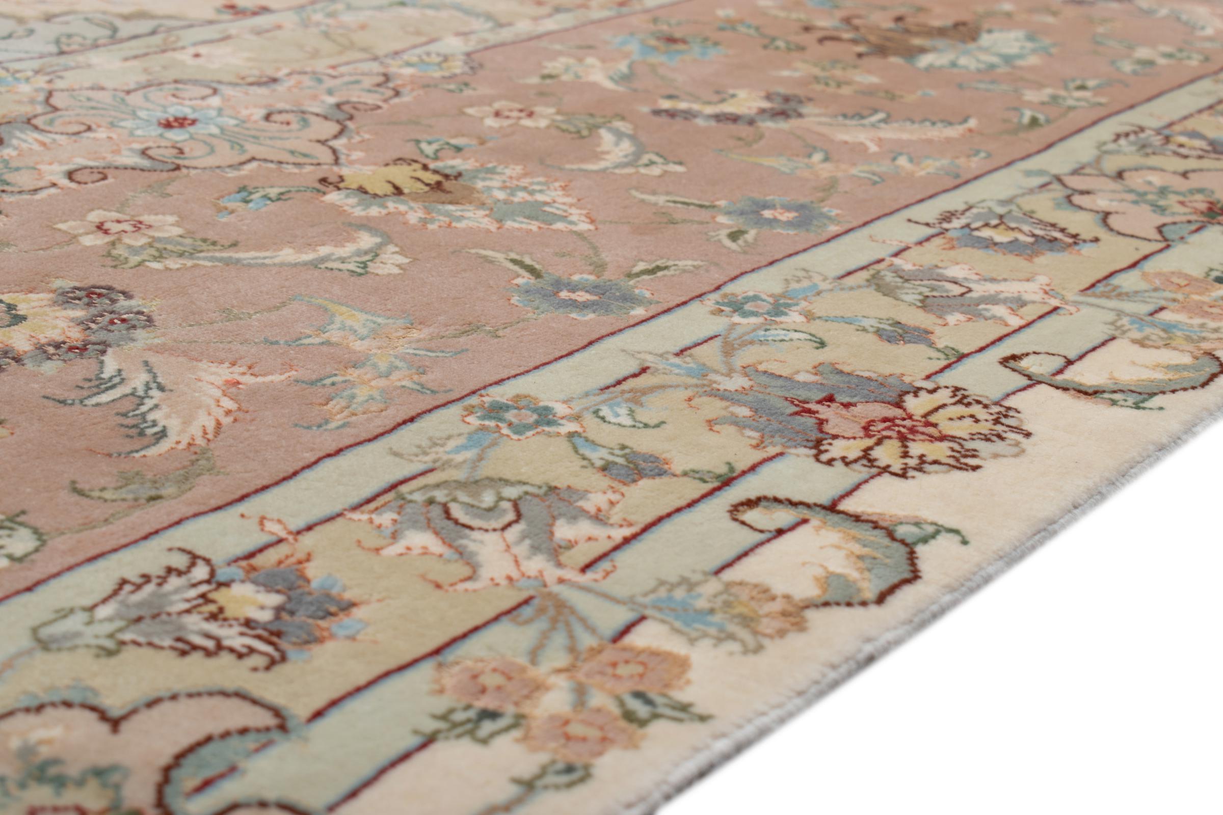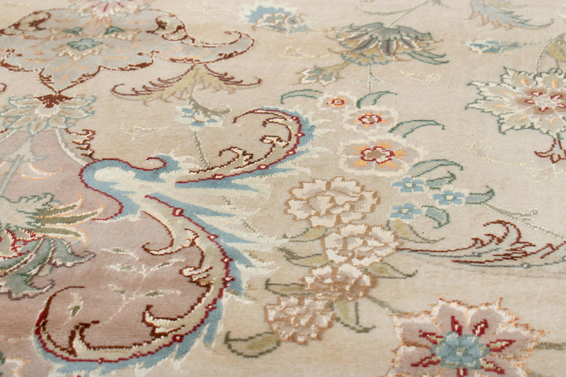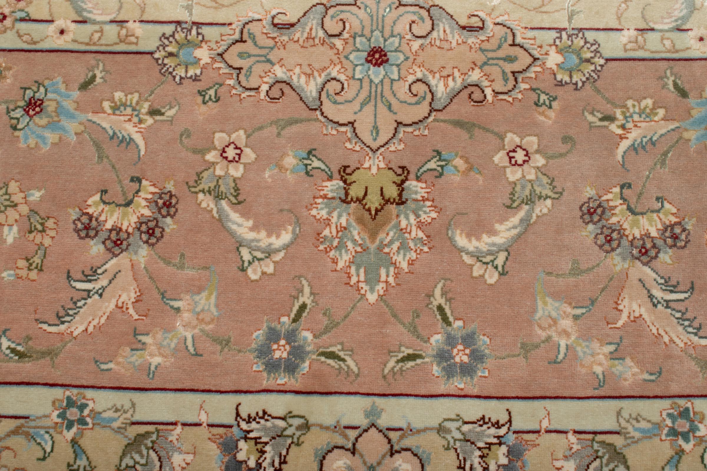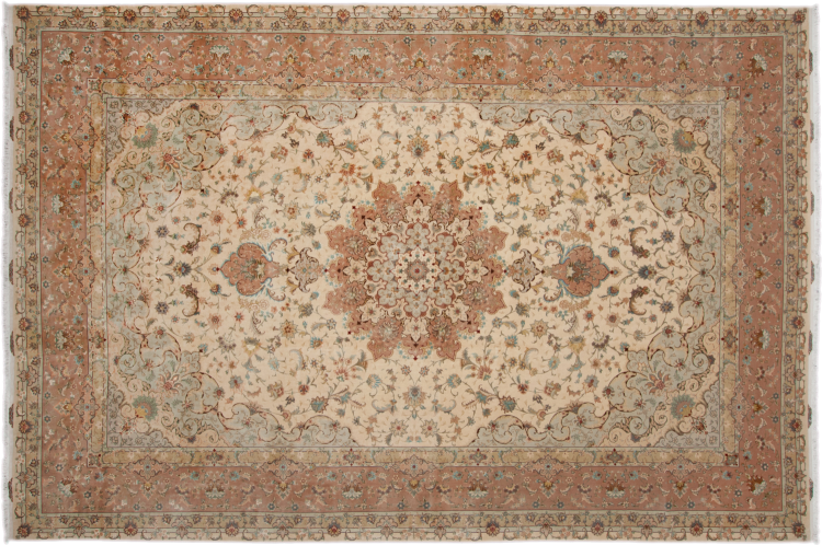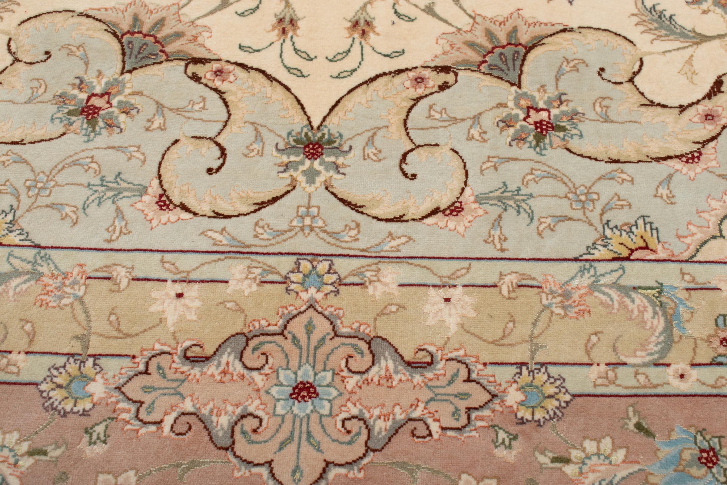 Este Tabriz se anudó a mano en el noroeste de Irán, en la ciudad artesanal y epónima de Tabriz. Sólo se utilizaron lana de alta calidad y seda natural. Con sus motivos y elementos decorativos, refleja Oriente en su forma más bella. Deje que una obra de arte se abra camino en su hogar: Una verdadera atracción para usted y sus invitados. El número Raj indica el número de nudos en una longitud de 7 cm. Una Tabriz 50Raj, por ejemplo, tiene aproximadamente 500.000 nudos por m2, una 70Raj incluso aprox. 1.000.000 de nudos por m2.