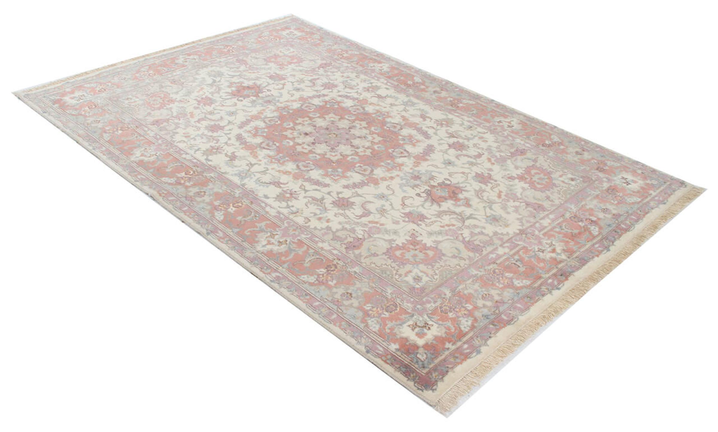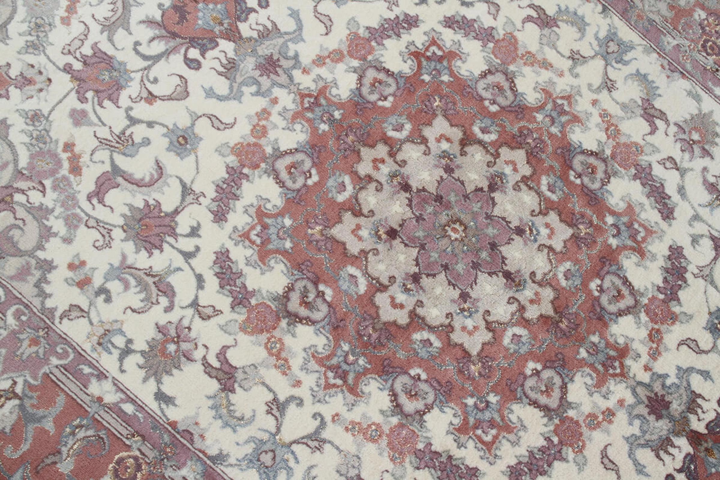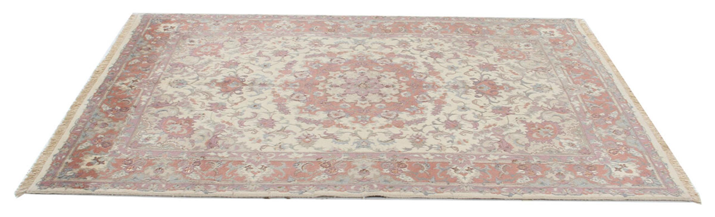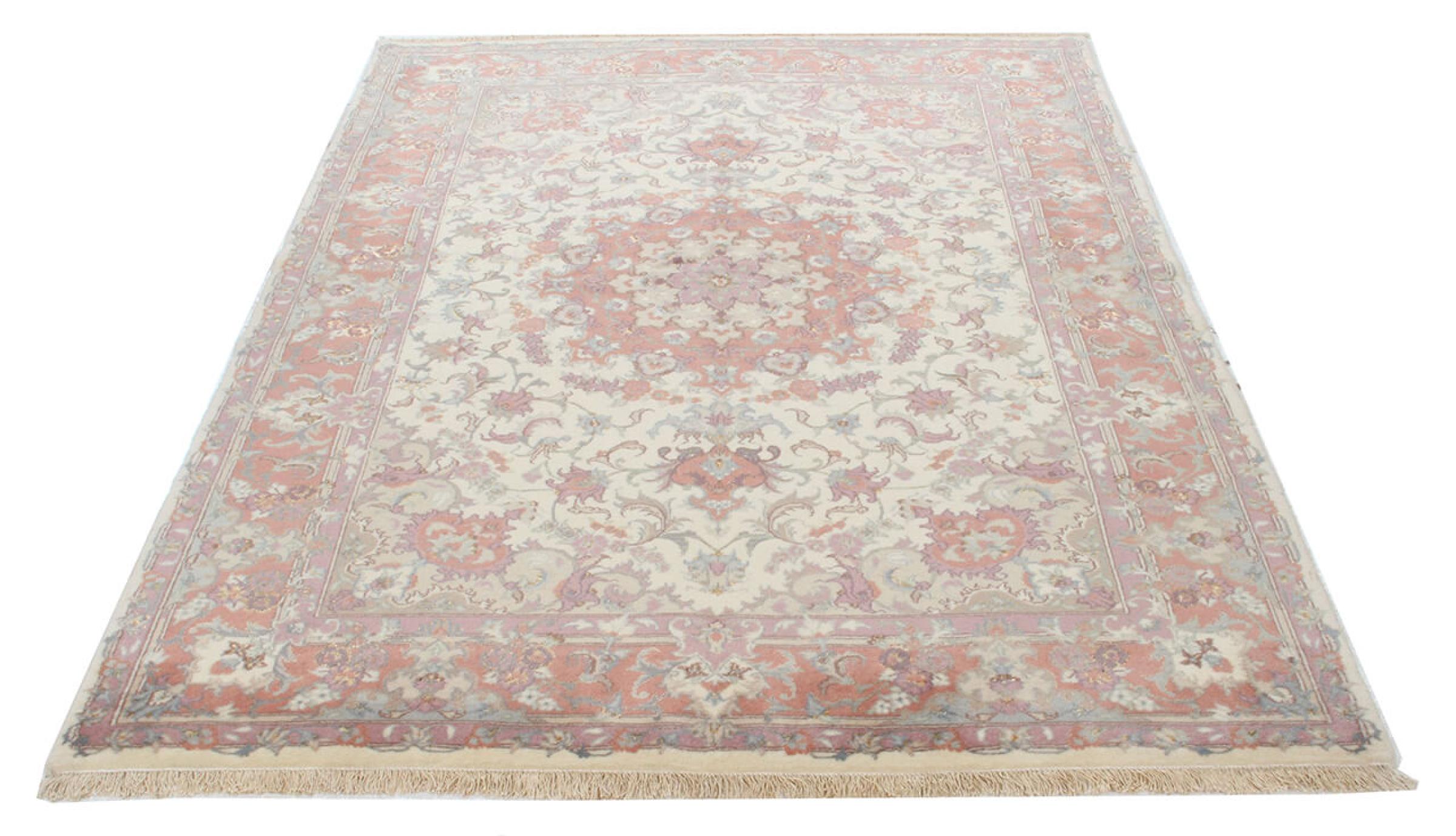 Este Tabriz se anudó a mano en el noroeste de Irán, en la ciudad artesanal y epónima de Tabriz. Sólo se utilizaron lana de alta calidad y seda natural. Con sus motivos y elementos decorativos, refleja Oriente en su forma más bella. Las alfombras de Tabriz son muy conocidas y populares. El número de raj indica el número de nudos en una longitud de 7 cm. Por ejemplo, una Tabriz 60Raj tiene unos 700.000 nudos por metro cuadrado.
