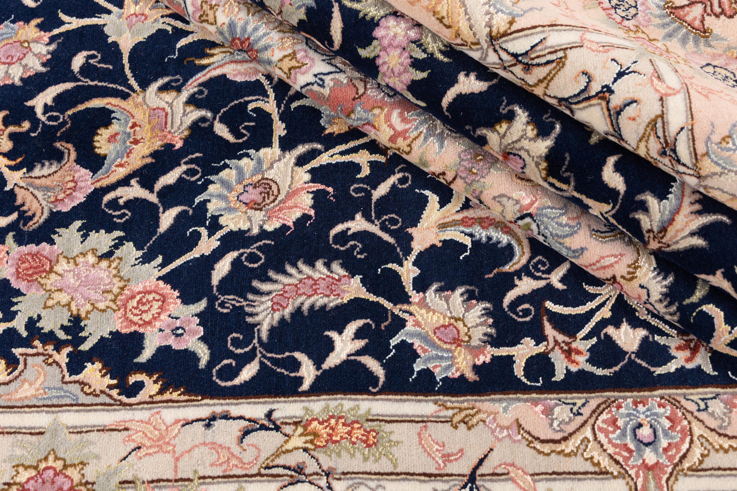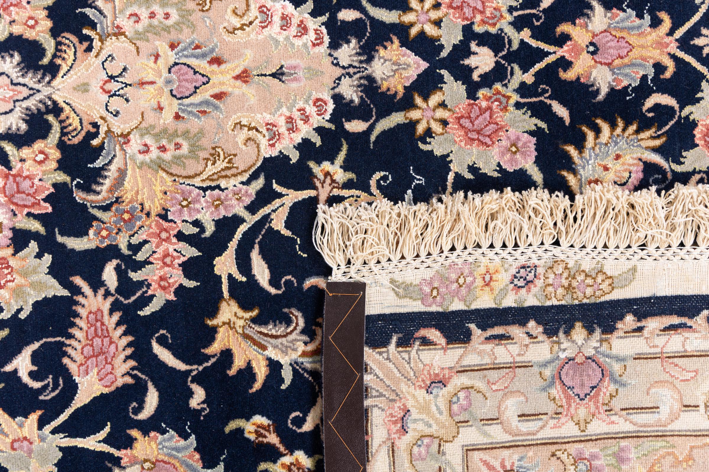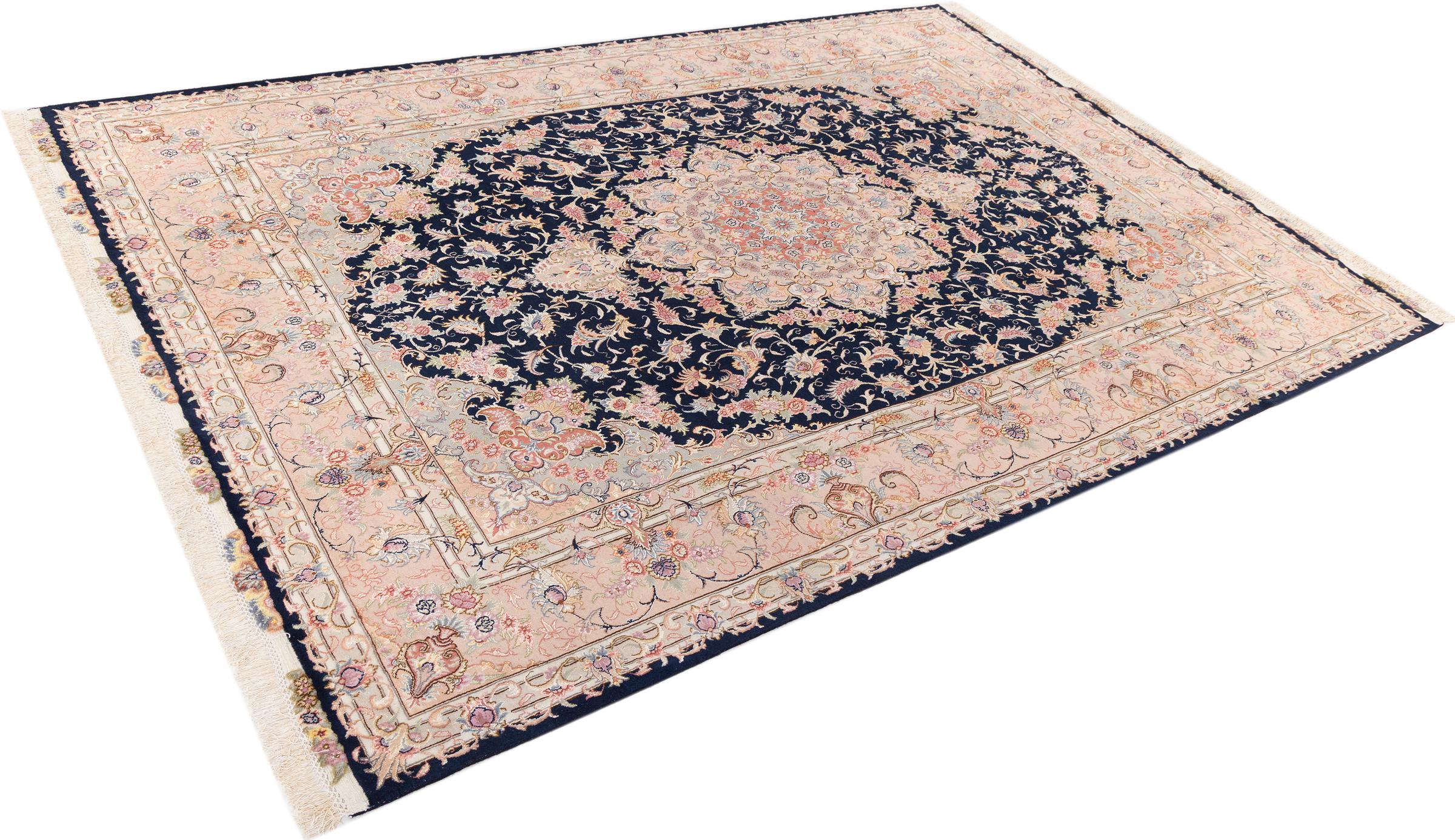 Este Tabriz se anudó a mano en el noroeste de Irán, en la ciudad artesanal y epónima de Tabriz. Sólo se utilizaron lana de alta calidad y seda natural. Con sus motivos y elementos decorativos, refleja Oriente en su forma más bella. Las alfombras de Tabriz son muy conocidas y populares. El número de raj indica el número de nudos en una longitud de 7 cm. Por ejemplo, una Tabriz 60Raj tiene unos 700.000 nudos por metro cuadrado.