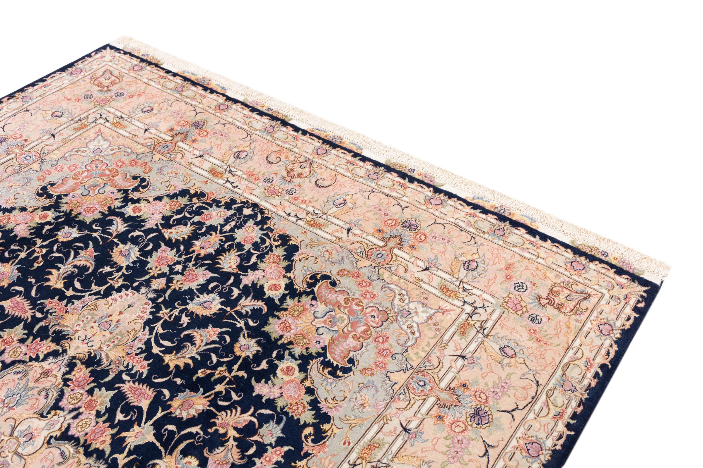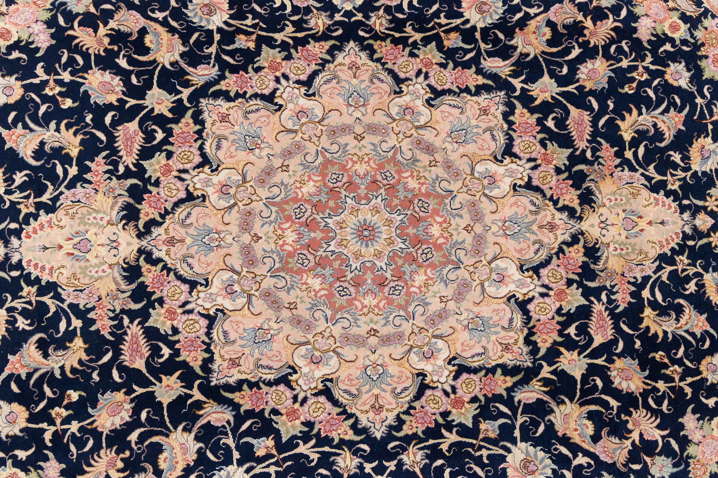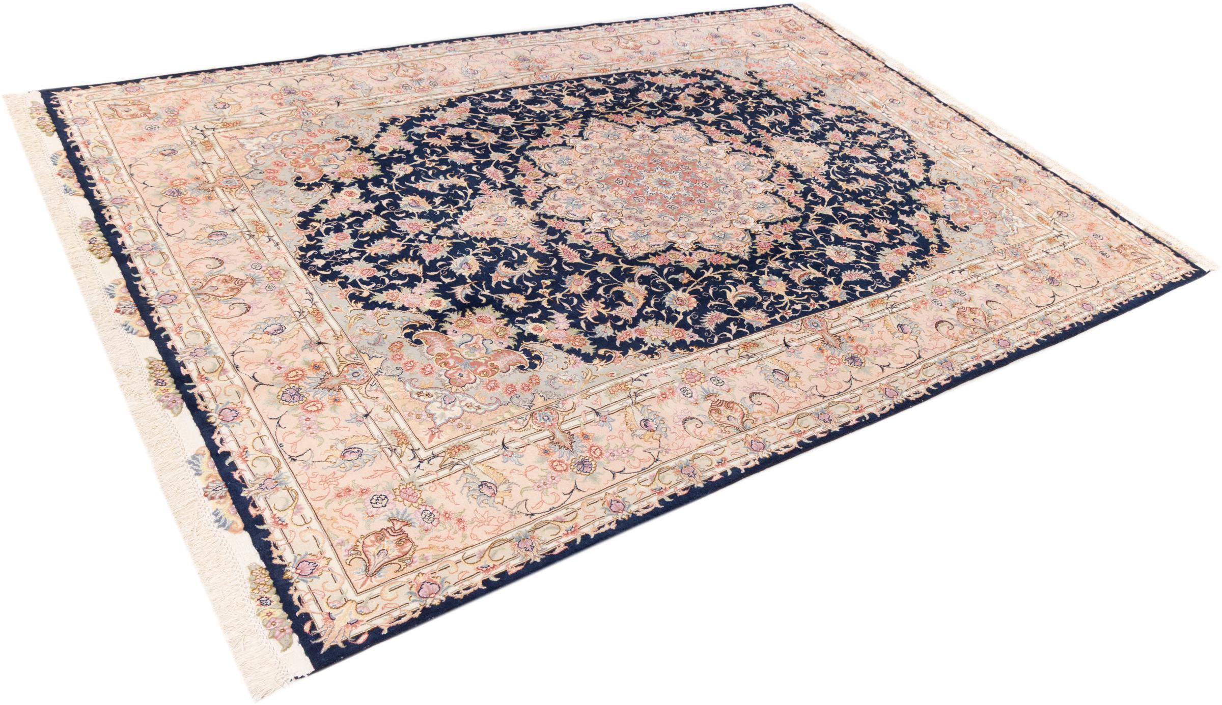 Este Tabriz se anudó a mano en el noroeste de Irán, en la ciudad artesanal y epónima de Tabriz. Sólo se utilizaron lana de alta calidad y seda natural. Con sus motivos y elementos decorativos, refleja Oriente en su forma más bella. Las alfombras de Tabriz son muy conocidas y populares. El número de raj indica el número de nudos en una longitud de 7 cm. Por ejemplo, una Tabriz 60Raj tiene unos 700.000 nudos por metro cuadrado.