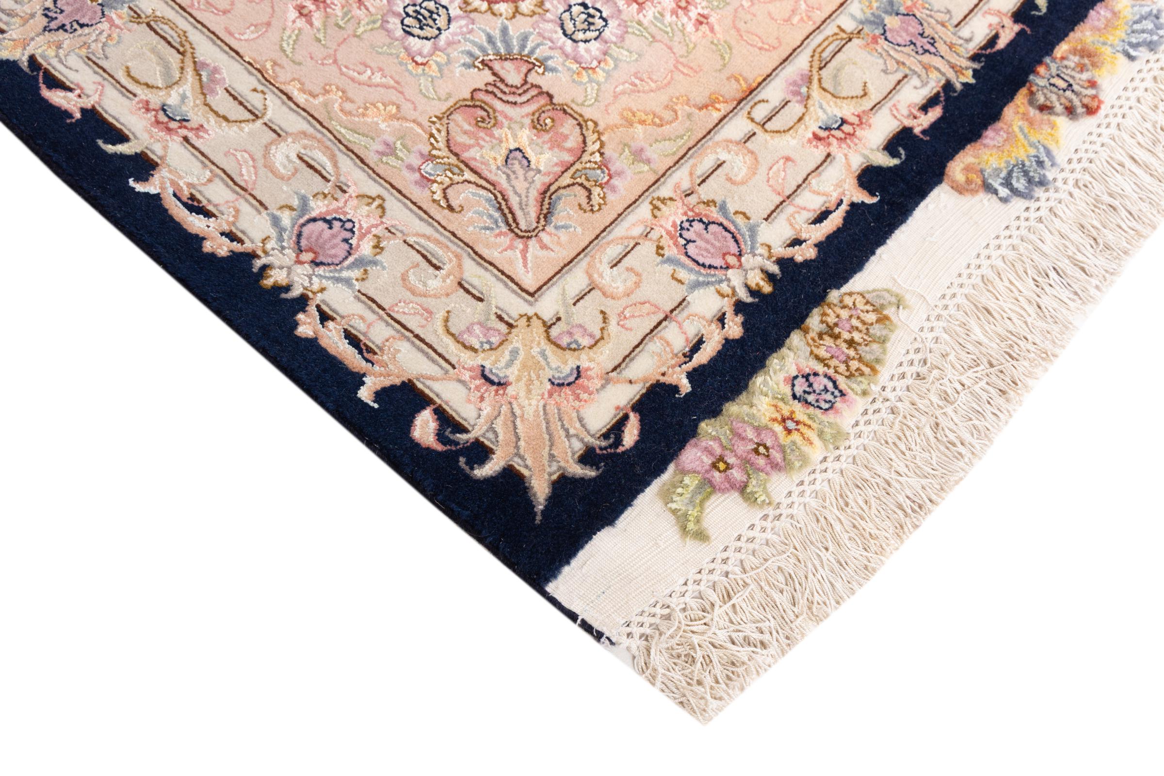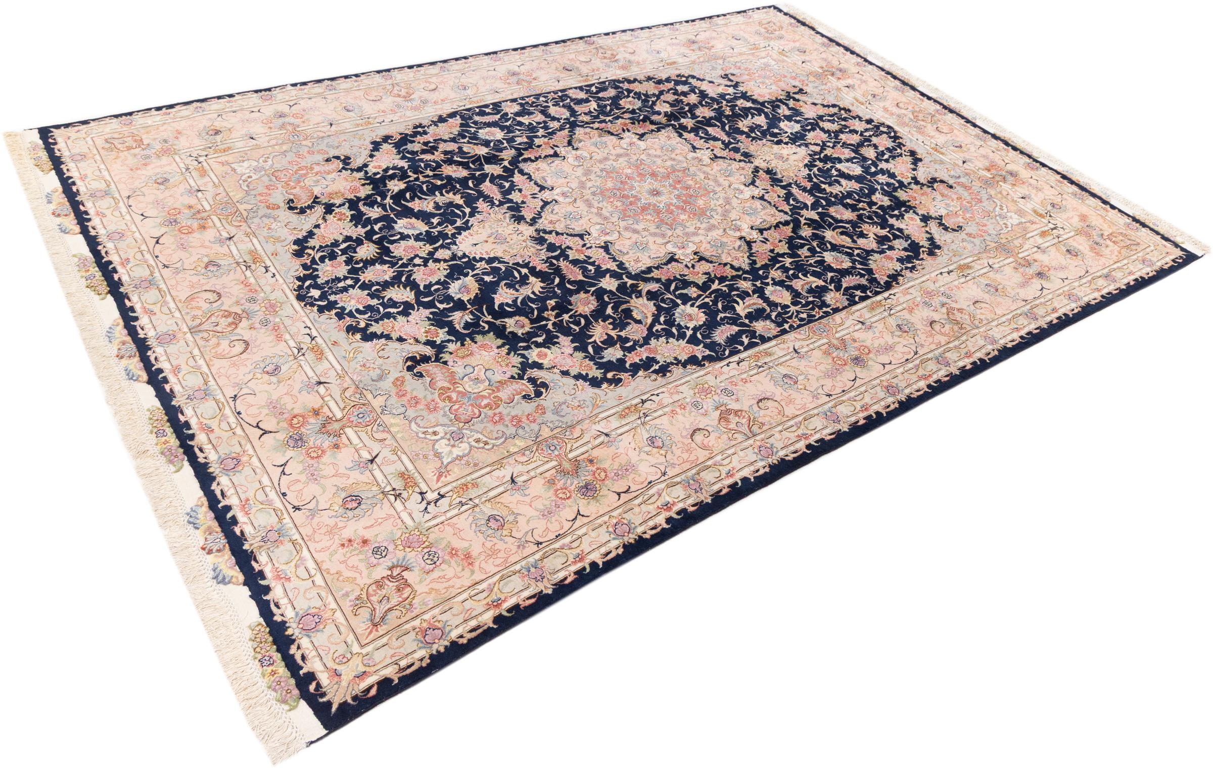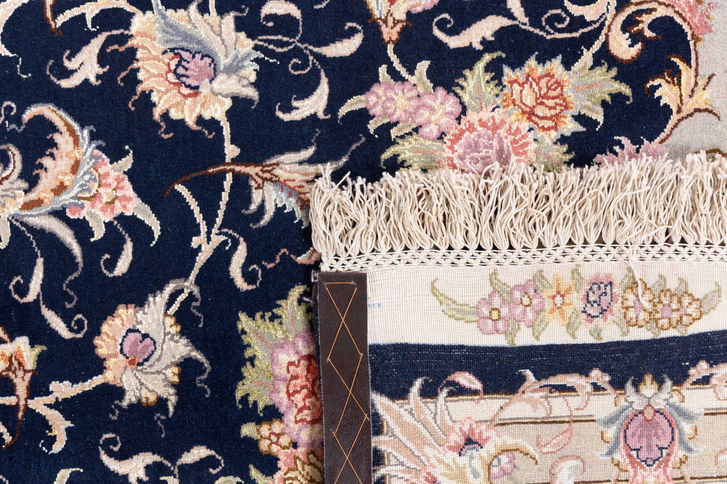 Este Tabriz se anudó a mano en el noroeste de Irán, en la ciudad artesanal y epónima de Tabriz. Sólo se utilizaron lana de alta calidad y seda natural. Con sus motivos y elementos decorativos, refleja Oriente en su forma más bella. Las alfombras de Tabriz son muy conocidas y populares. El número de raj indica el número de nudos en una longitud de 7 cm. Por ejemplo, una Tabriz 60Raj tiene unos 700.000 nudos por metro cuadrado.