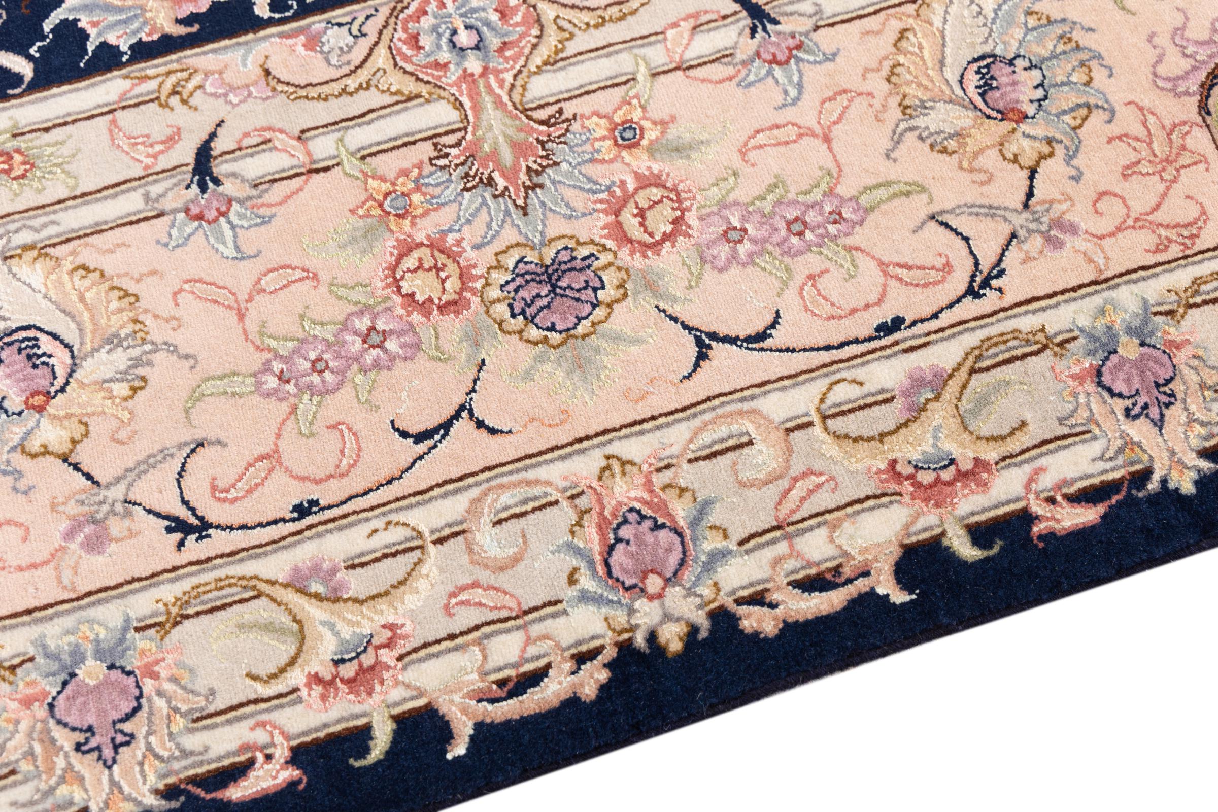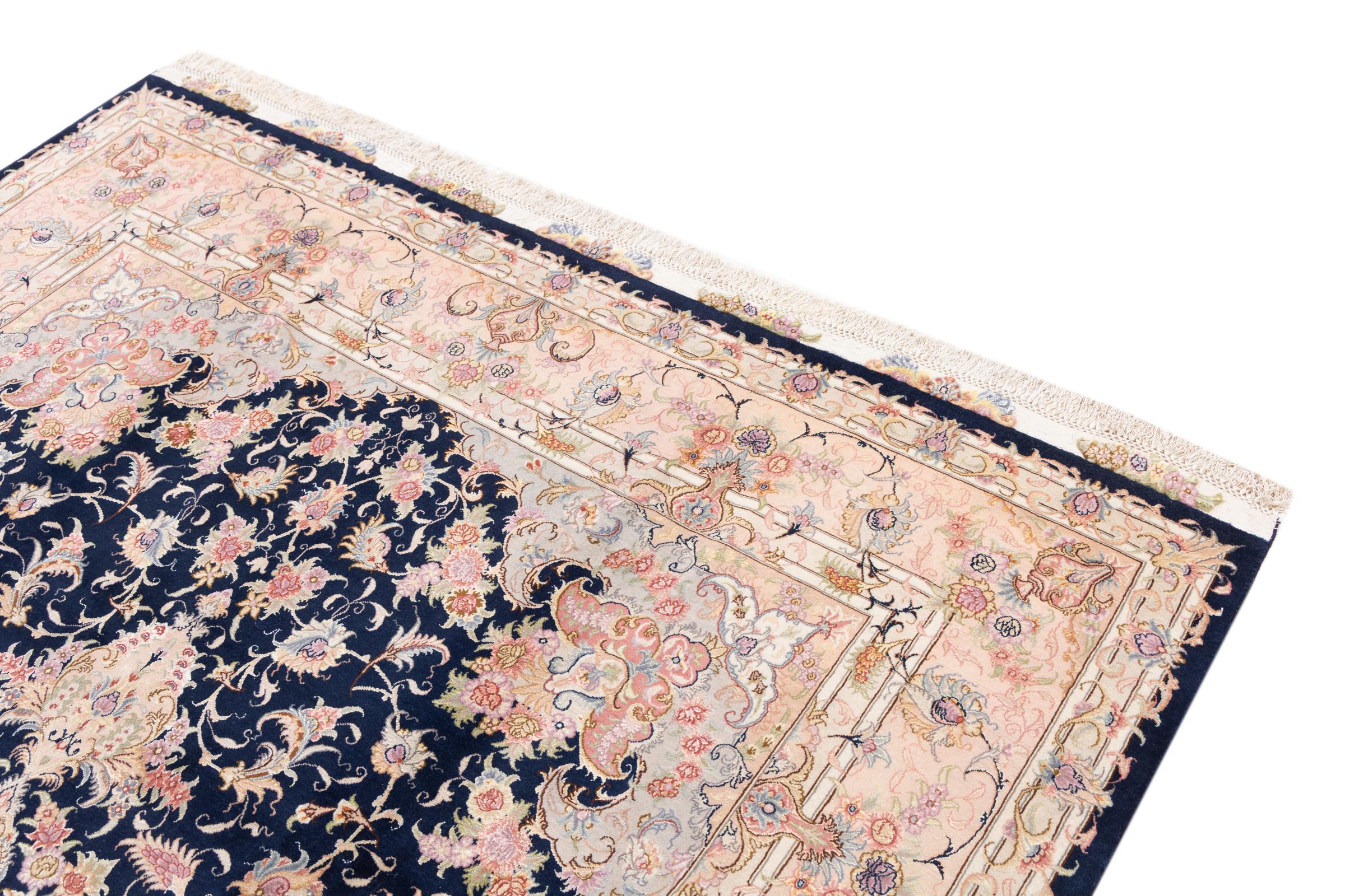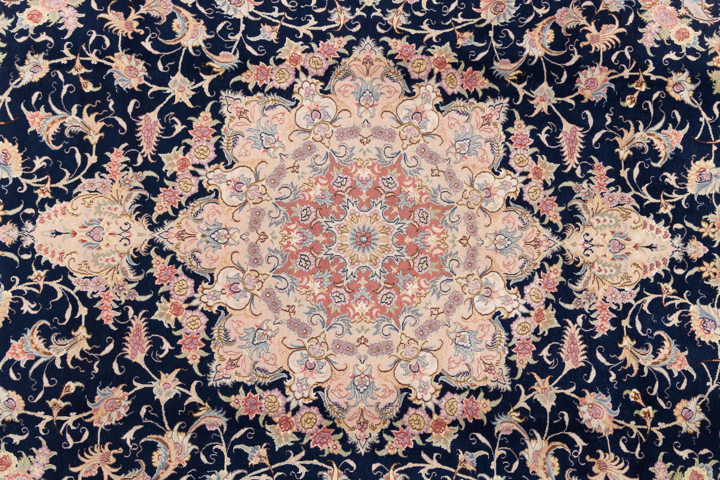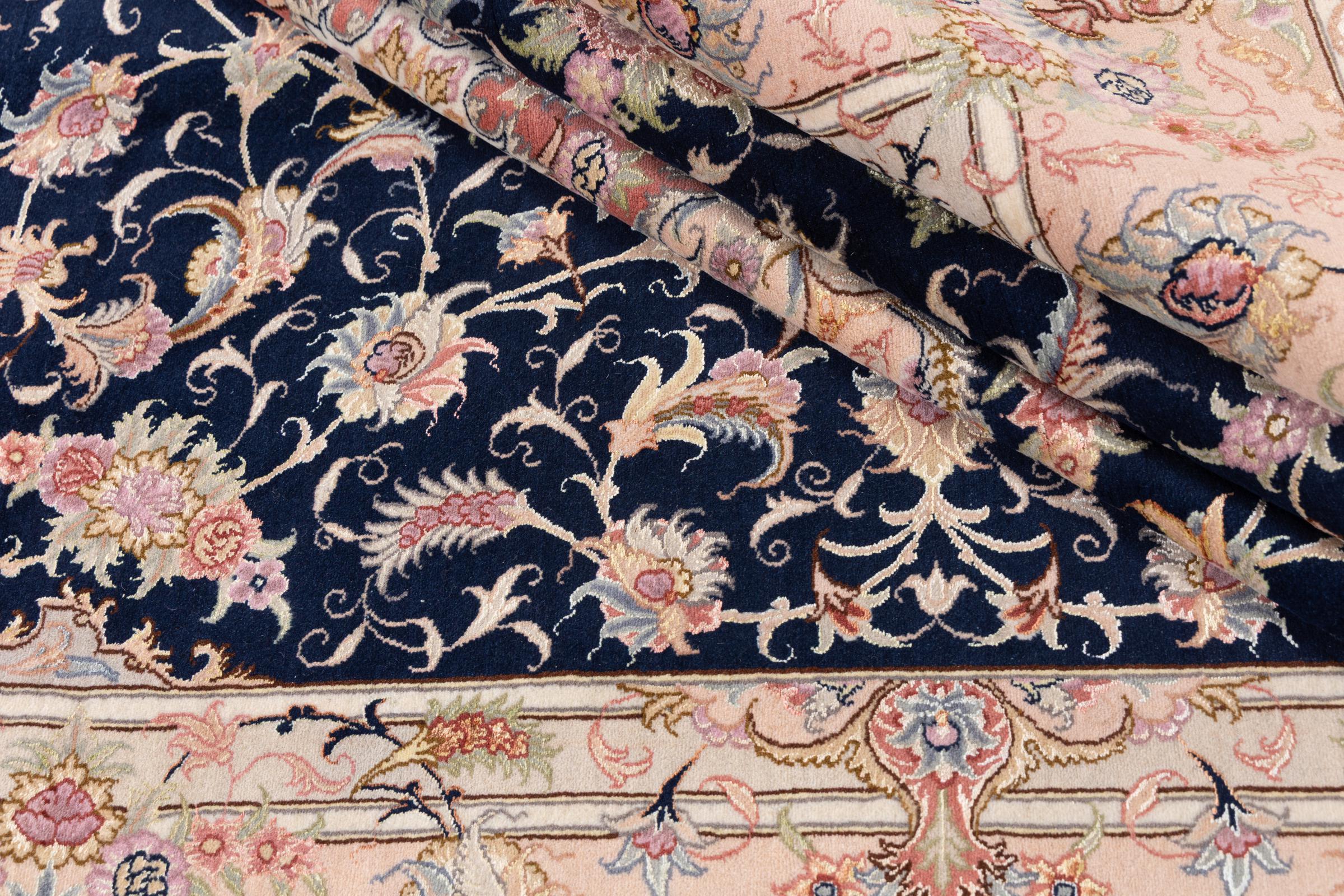 Este Tabriz se anudó a mano en el noroeste de Irán, en la ciudad artesanal y epónima de Tabriz. Sólo se utilizaron lana de alta calidad y seda natural. Con sus motivos y elementos decorativos, refleja Oriente en su forma más bella. Las alfombras de Tabriz son muy conocidas y populares. El número de raj indica el número de nudos en una longitud de 7 cm. Por ejemplo, una Tabriz 60Raj tiene unos 700.000 nudos por metro cuadrado.