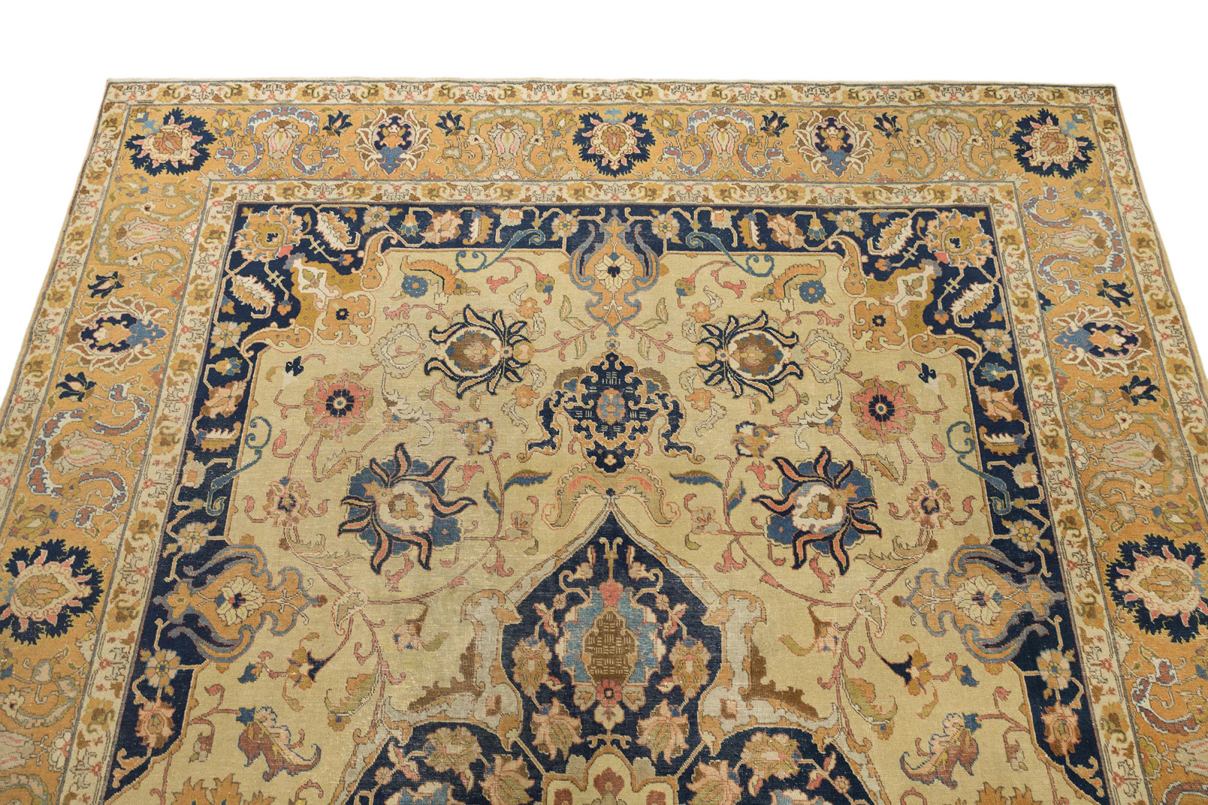 Alfombra número: 316800007008237 Tamaño: 345x254 cm Espesor: alrededor de 12 mm Nudos: 128 000 - 160 000 / m² Elaboración: Anudado a mano Crespón: Lana hilada a mano Urdimbre: Algodón Estado / Conservación Perfecta Origen: Persia / Iran Edad: Antigua, mayor de 80 años Peso: alrededor de 35 kg También conocido como Tabris, Tabriz, Tebris, Tebriz, Täbris, Village Cantidad en stock: Única - Solo 1 en stock