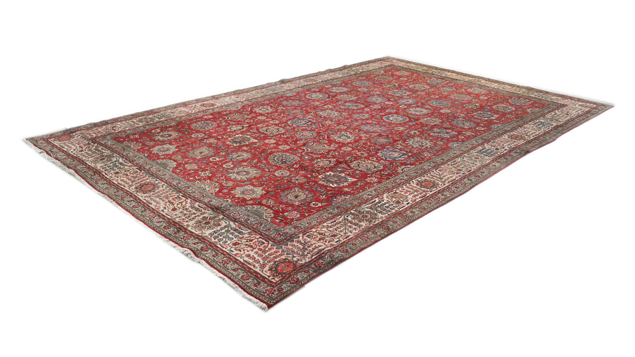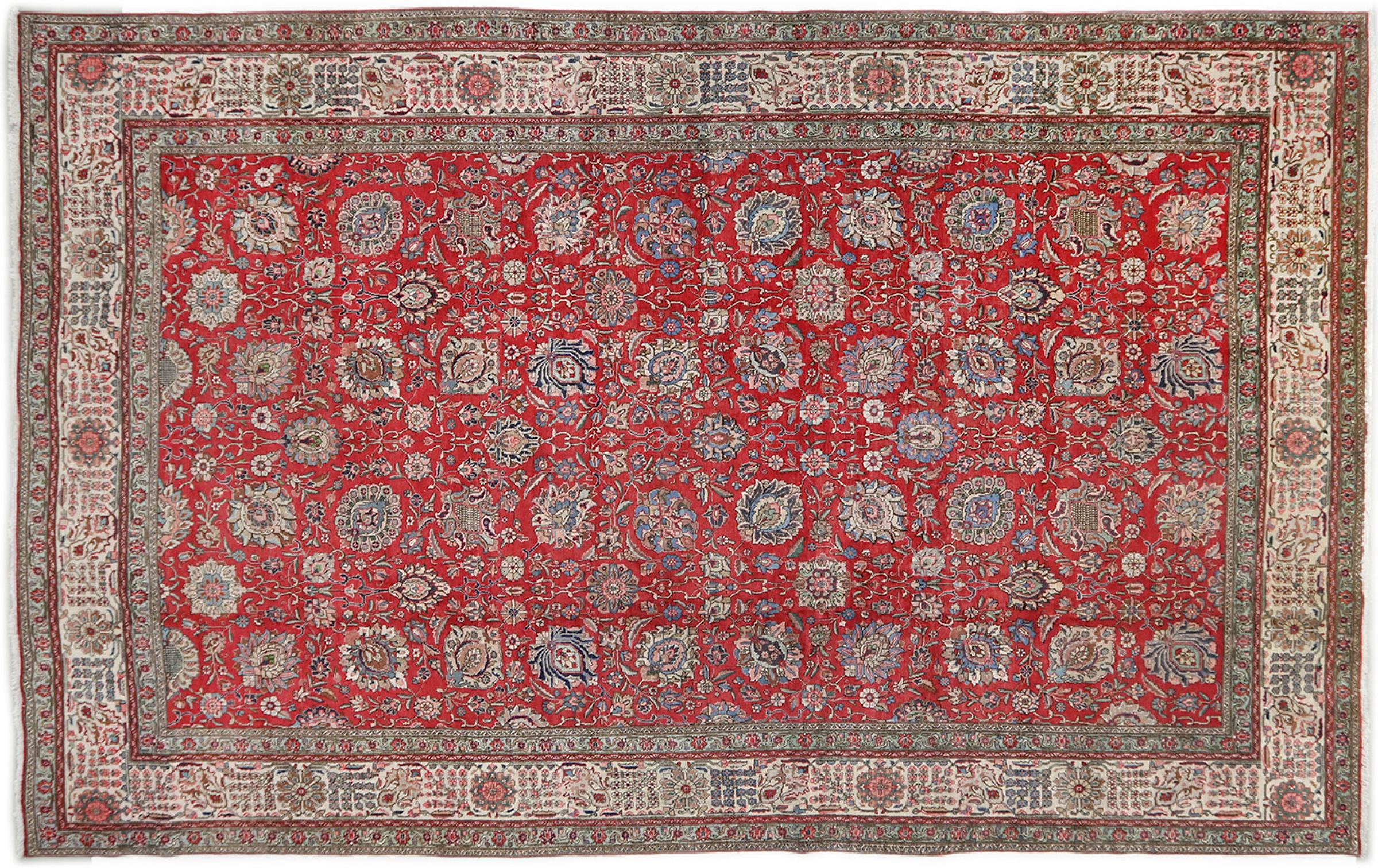 Alfombra número: 316408008090364 Tamaño: 555x351 cm Espesor: alrededor de 12 mm Nudos: 128 000 - 160 000 / m² Elaboración: Anudado a mano Crespón: Lana hilada a mano Urdimbre: Algodón Estado / Conservación Perfecta Origen: Persia / Iran Edad: Antigua, mayor de 80 años Peso: alrededor de 78 kg También conocido como Tabris, Tabriz, Tebris, Tebriz, Täbris, Village Cantidad en stock: Única - Solo 1 en stock