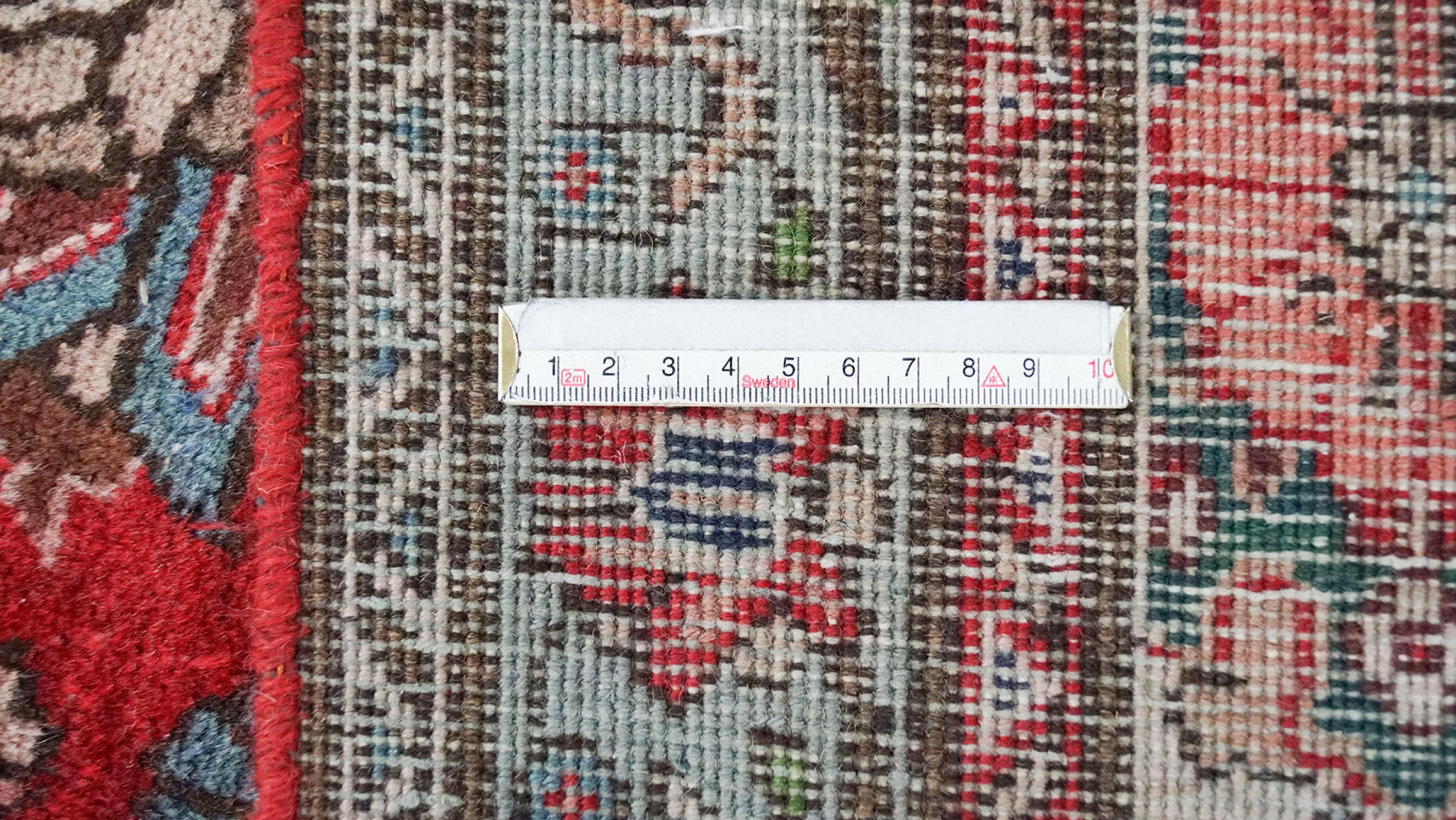Esta Tabriz se anudó a mano en un pequeño pueblo de los alrededores de la ciudad de Tabriz. Posee la extraordinaria calidad que se conoce de las buenas alfombras persas Tabriz. Al mismo tiempo, tiene un carácter único de origen.