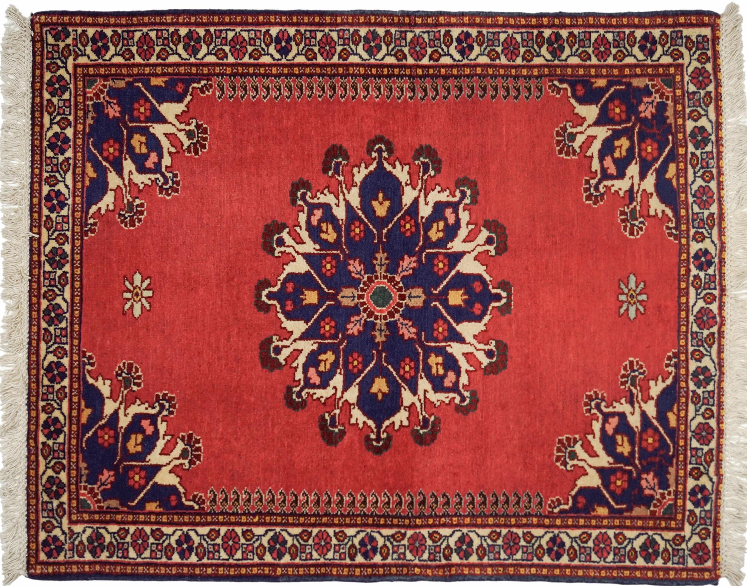 Esta alfombra pertenece a alfombras de pueblos y nómadas de Irán, antiguamente Persia. Este tipo de alfombra se anuda a mano en ciudades y pueblos más pequeños según la antigua tradición. Incluso los nómadas siguen anudando alfombras persas al aire libre. Las alfombras están anudadas sin un patrón y completamente desde la cabeza. Se caracterizan por los ornamentos clásicos, que están dispuestos en patrones rectos y geométricos. Gracias a su origen cultural-tradicional, estas alfombras tienen un carácter único que encarna la antigua Persia.