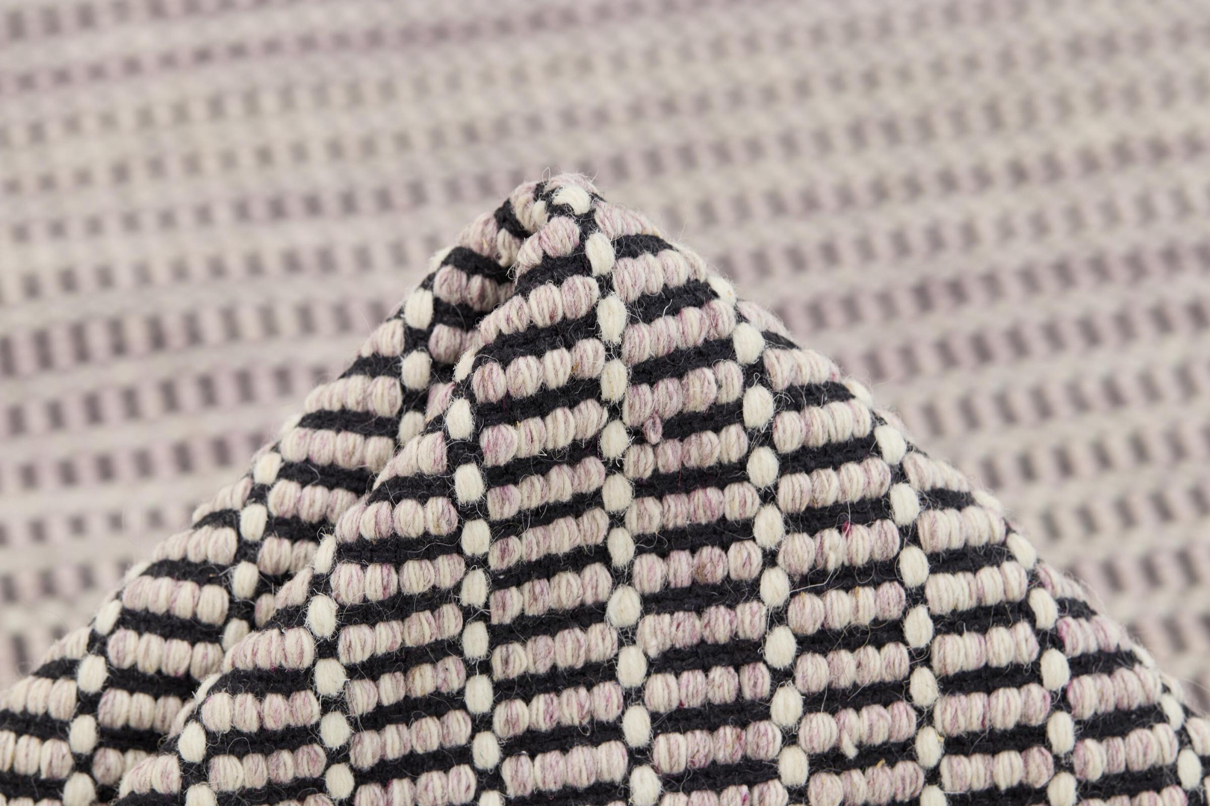 Este kilim de diseño moderno, elegante y atemporal, está confeccionado con lana natural de alta calidad y tejido a mano con el mayor cuidado utilizando la artesanía tradicional. Su patrón le confiere una estructura distintiva y lo convierte en un atractivo extremadamente clásico, moderno y elegante en su hogar.