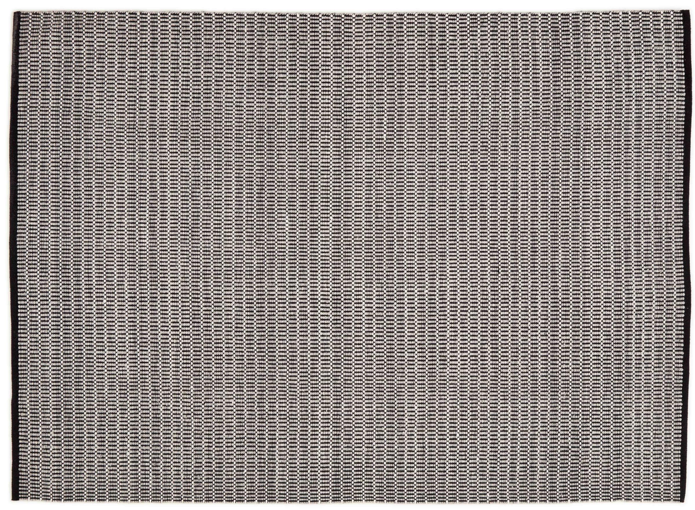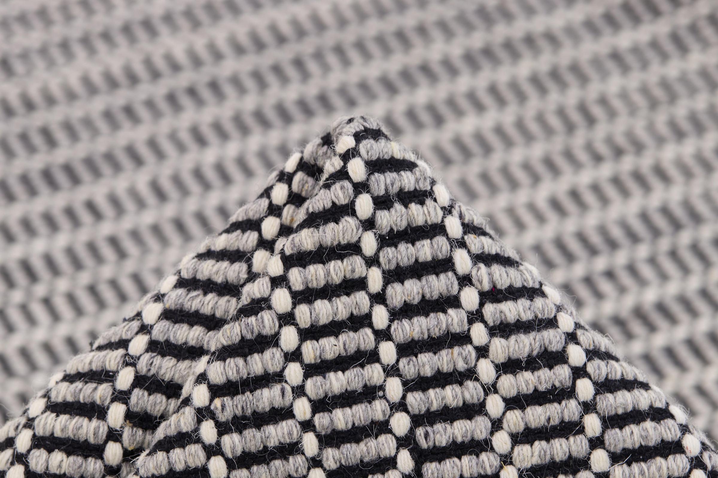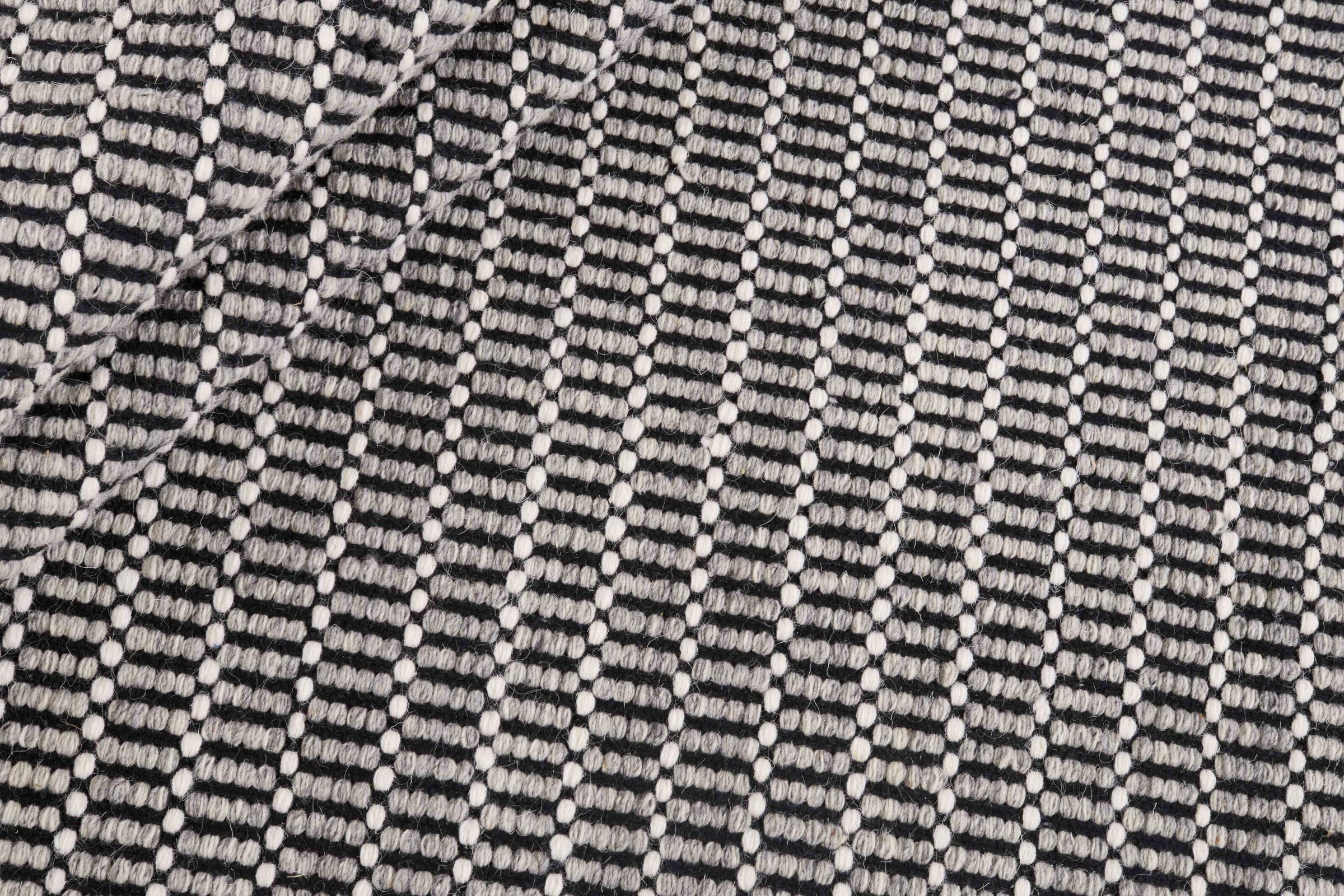 Este kilim de diseño moderno, elegante y atemporal, está confeccionado con lana natural de alta calidad y tejido a mano con el mayor cuidado utilizando la artesanía tradicional. Su patrón le confiere una estructura distintiva y lo convierte en un atractivo extremadamente clásico, moderno y elegante en su hogar.