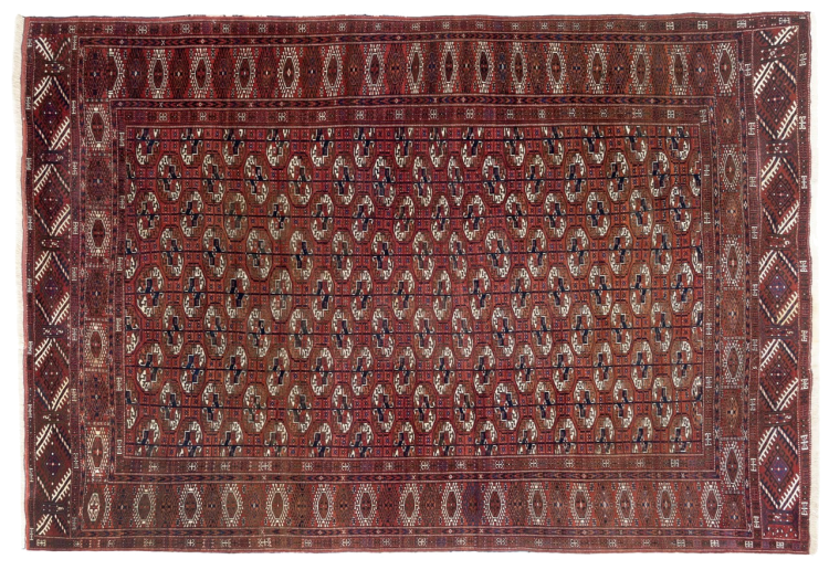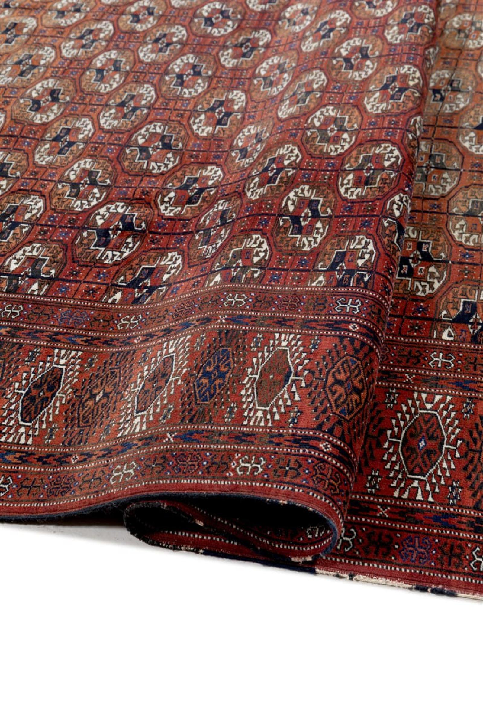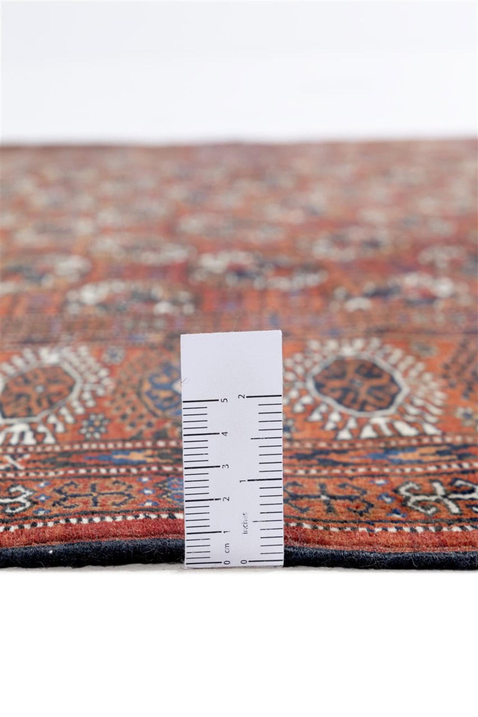 Esta alfombra turcomana se anudó a mano de forma tradicional e impresiona por su alto nivel de fabricación y su lana de oveja de alta calidad con un alto contenido en grasa. Sus colores cálidos y oscuros reflejan la cultura turcomana y aportan un toque oriental y acogedor a su hogar. Las alfombras paquistaníes suelen parecerse a este tipo de alfombra, pero a menudo no se acercan a su calidad.