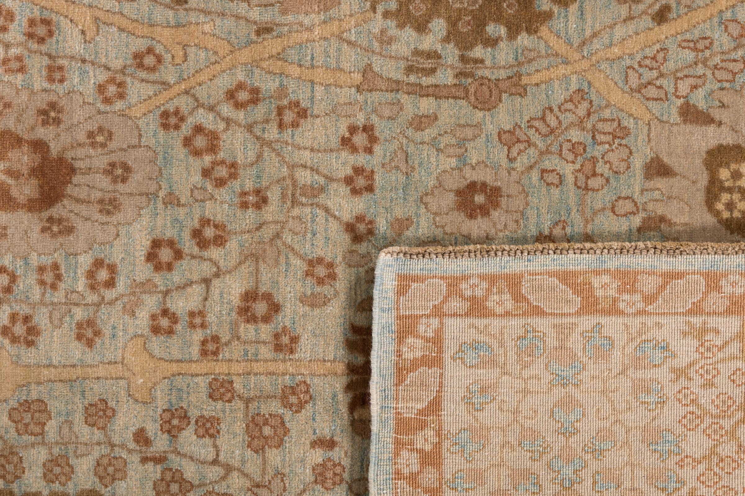 Esta alfombra está hecha de lana de oveja hilada a mano de la más alta calidad. Especialmente en Irán (antigua Persia), la lana de Afganistán y Pakistán sigue siendo hilada a mano antes de que comience el anudado de la alfombra. La lana ha demostrado ser un material natural y extremadamente resistente a lo largo de los siglos. Entre otras cosas, tiene propiedades repelentes de la suciedad y aislantes del calor. Al mismo tiempo, la lana es incomparablemente suave y tiene un brillo natural.