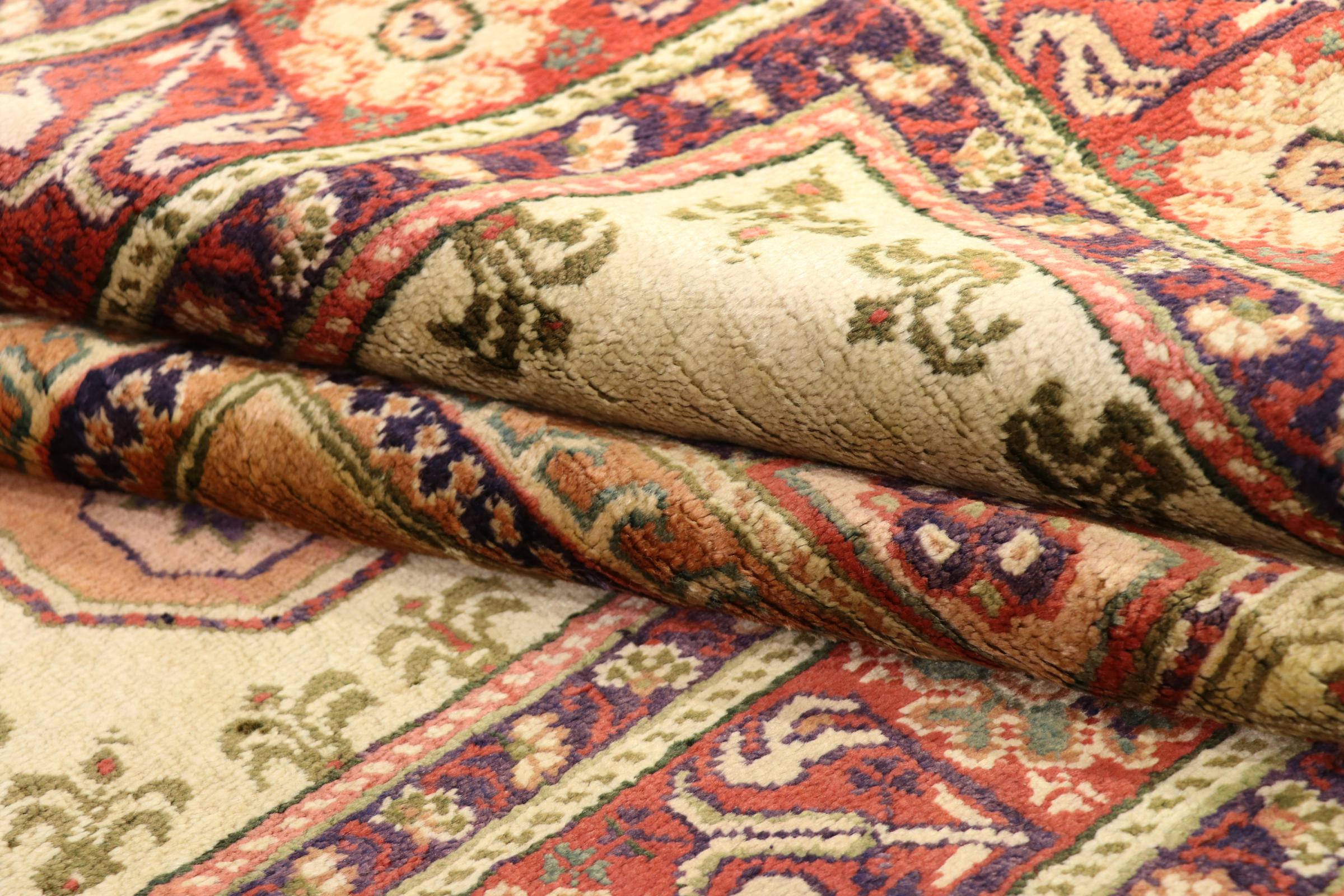 Esta alfombra Hereke anudada a mano es un magnífico complemento para su hogar. Esta detallada obra de arte, antaño destinada a los palacios imperiales, adorna ahora su hogar. Sólo se utilizan materiales naturales para crear esta pieza única, tejida por talentosas manos maestras en un diseño tradicional con un fino brillo.