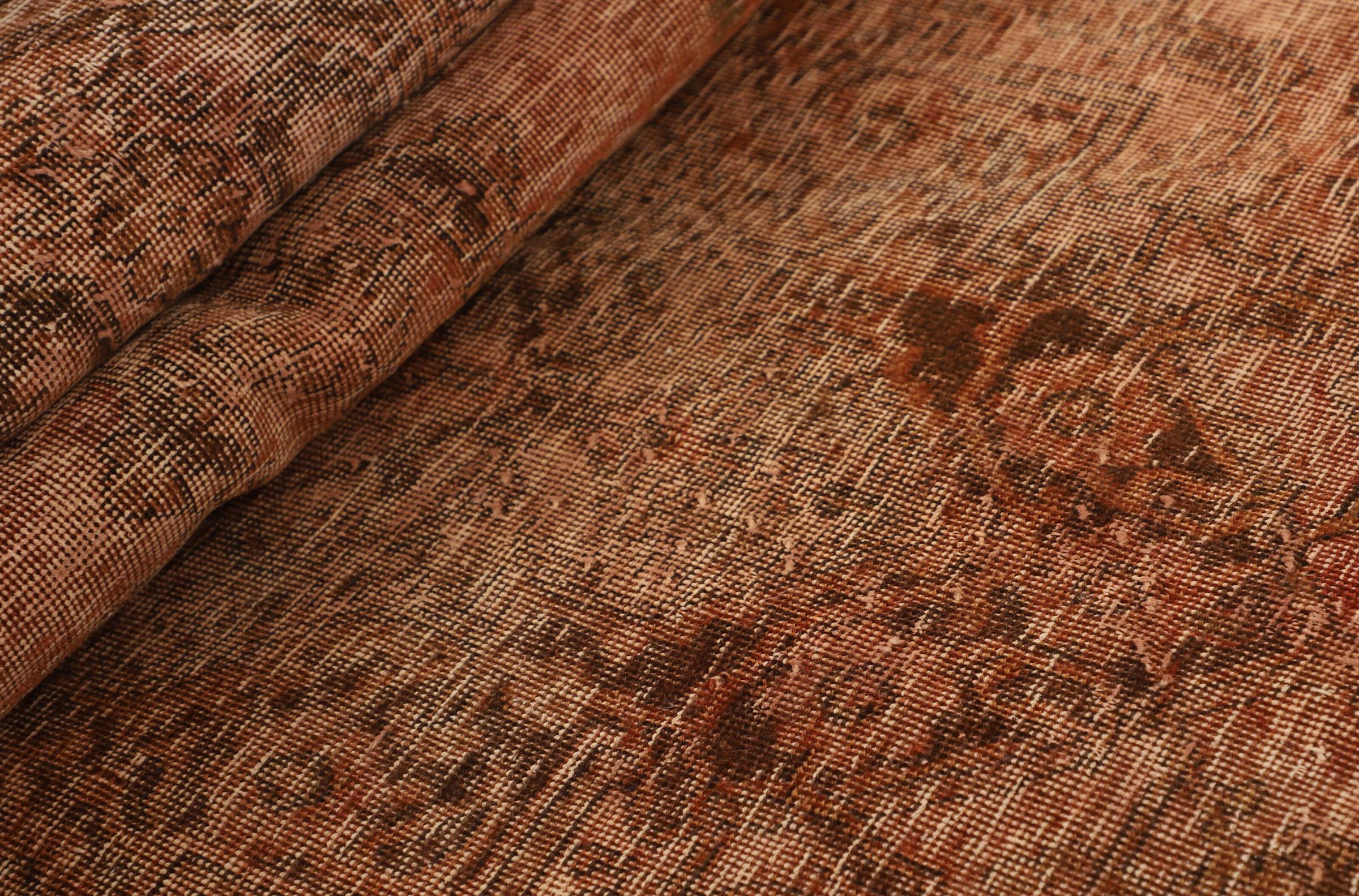 Esta alfombra persa anudada a mano tiene al menos 20 años. Una alfombra así puede durar generaciones con los cuidados adecuados. La alfombra ha sido completamente teñida de nuevo sin sobreteñir completamente los ornamentos anudados originalmente. Esto da a la alfombra persa de muy alta calidad un carácter vintage moderno único.