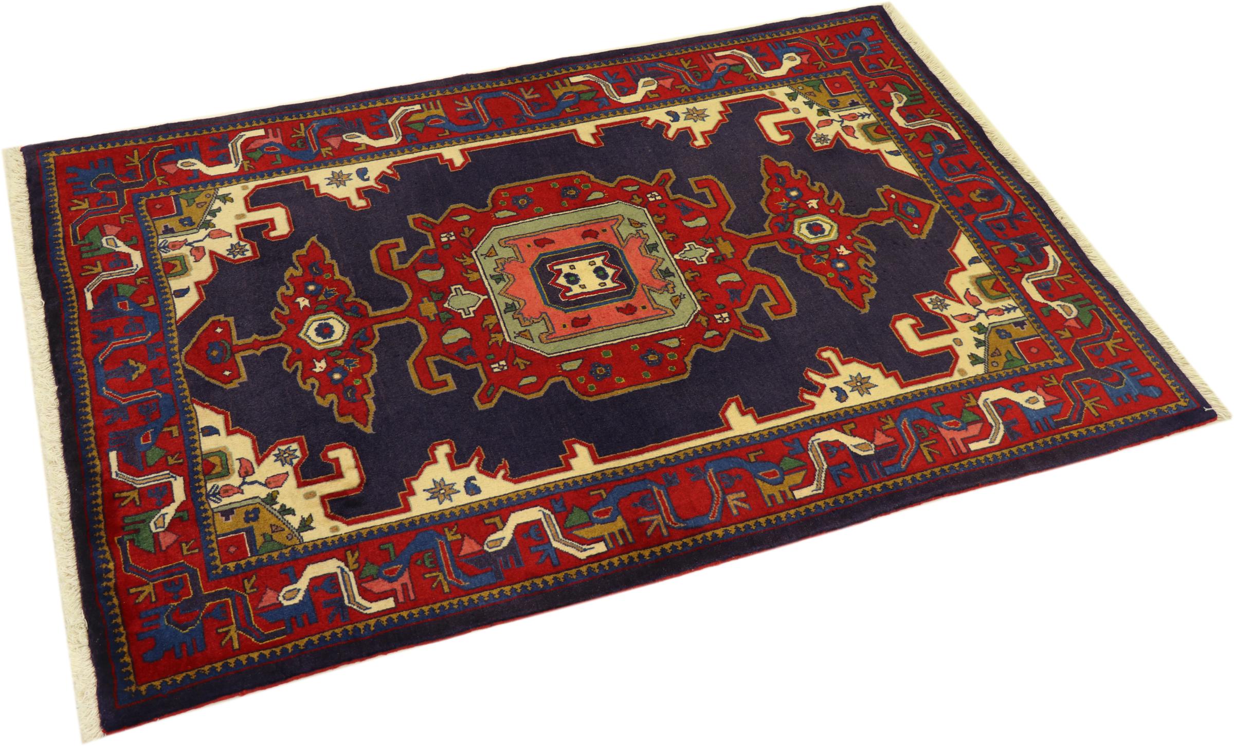 Esta alfombra pertenece a alfombras de pueblos y nómadas de Irán, antiguamente Persia. Este tipo de alfombra se anuda a mano en ciudades y pueblos más pequeños según la antigua tradición. Incluso los nómadas siguen anudando alfombras persas al aire libre. Las alfombras están anudadas sin un patrón y completamente desde la cabeza. Se caracterizan por los ornamentos clásicos, que están dispuestos en patrones rectos y geométricos. Gracias a su origen cultural-tradicional, estas alfombras tienen un carácter único que encarna la antigua Persia.