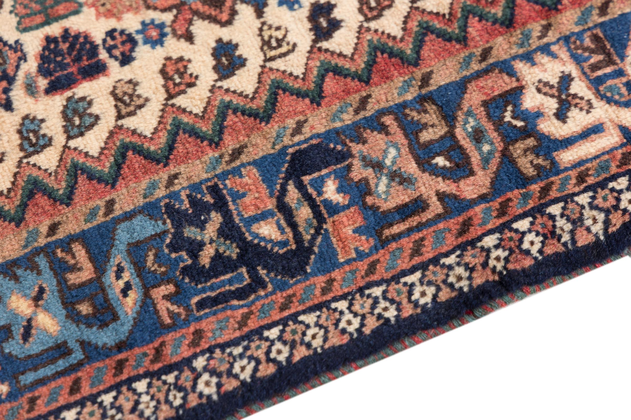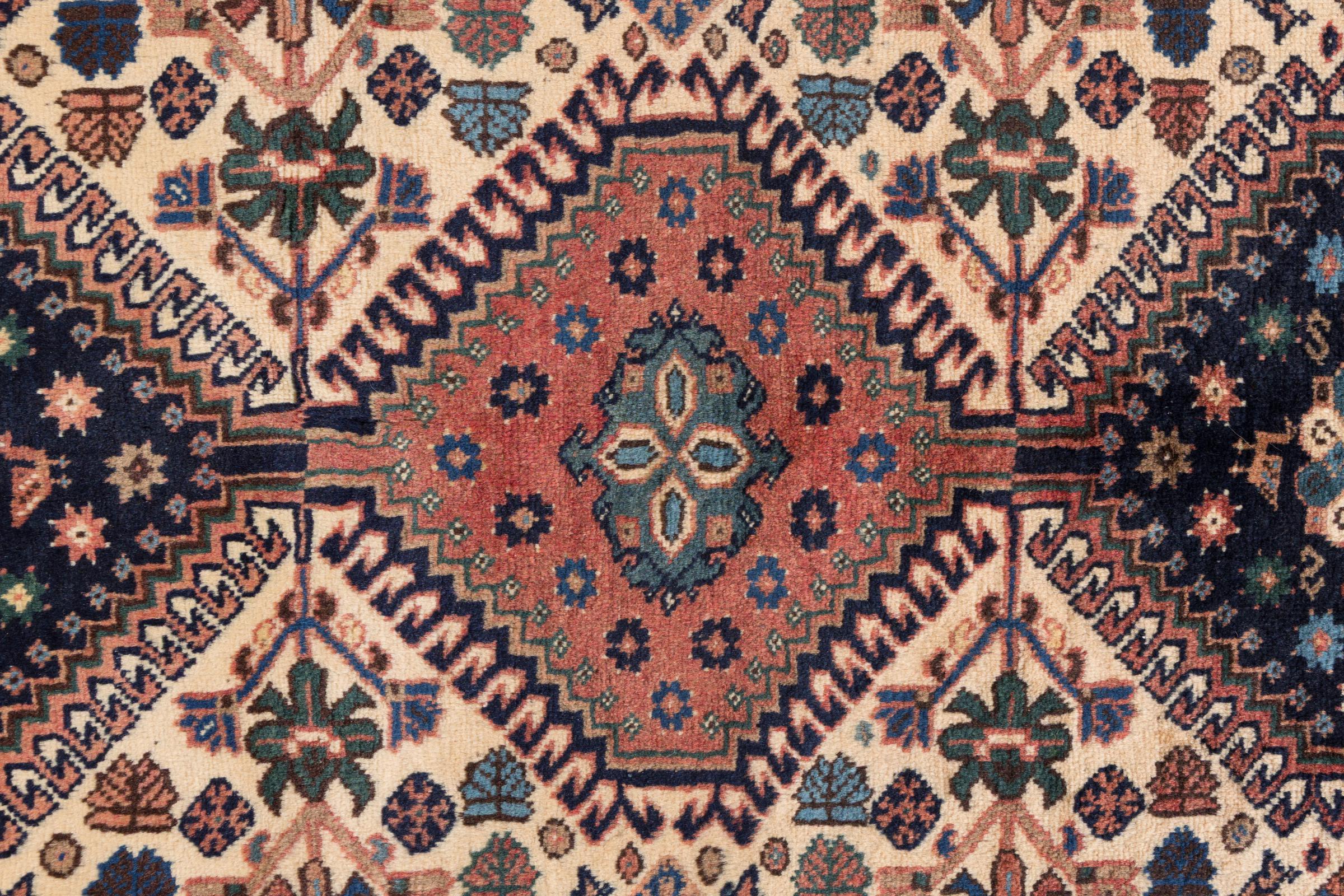 Tradicionalmente hecha a mano en Yalameh, esta alfombra persa es una bella representante de su gremio. Las formas geométricas son intemporales y seguirán siendo un diseño muy popular durante muchos años. Particularmente especiales en Yalameh son los diamantes, como en esta alfombra.