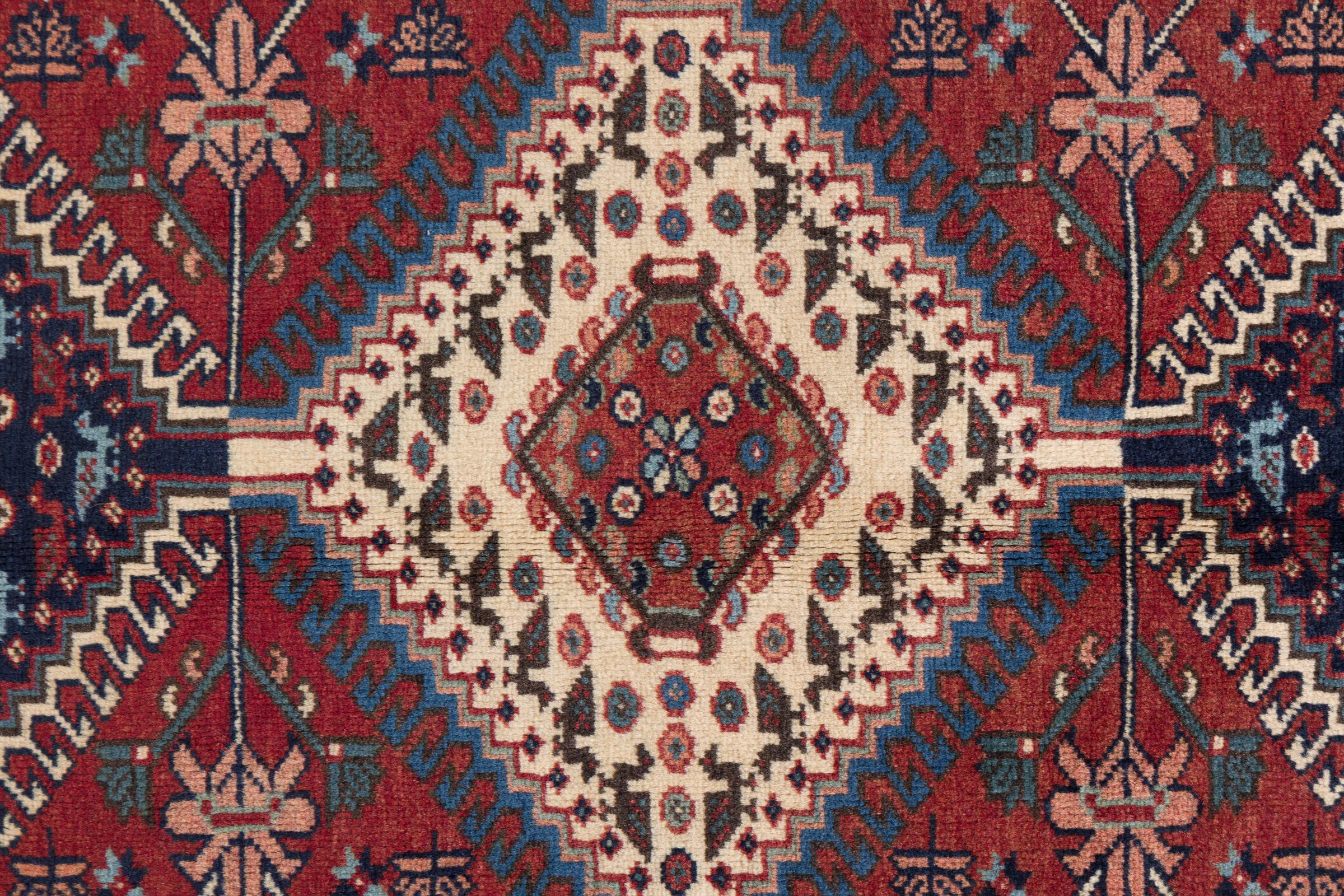 Tradicionalmente hecha a mano en Yalameh, esta alfombra persa es una bella representante de su gremio. Las formas geométricas son intemporales y seguirán siendo un diseño muy popular durante muchos años. Particularmente especiales en Yalameh son los diamantes, como en esta alfombra.